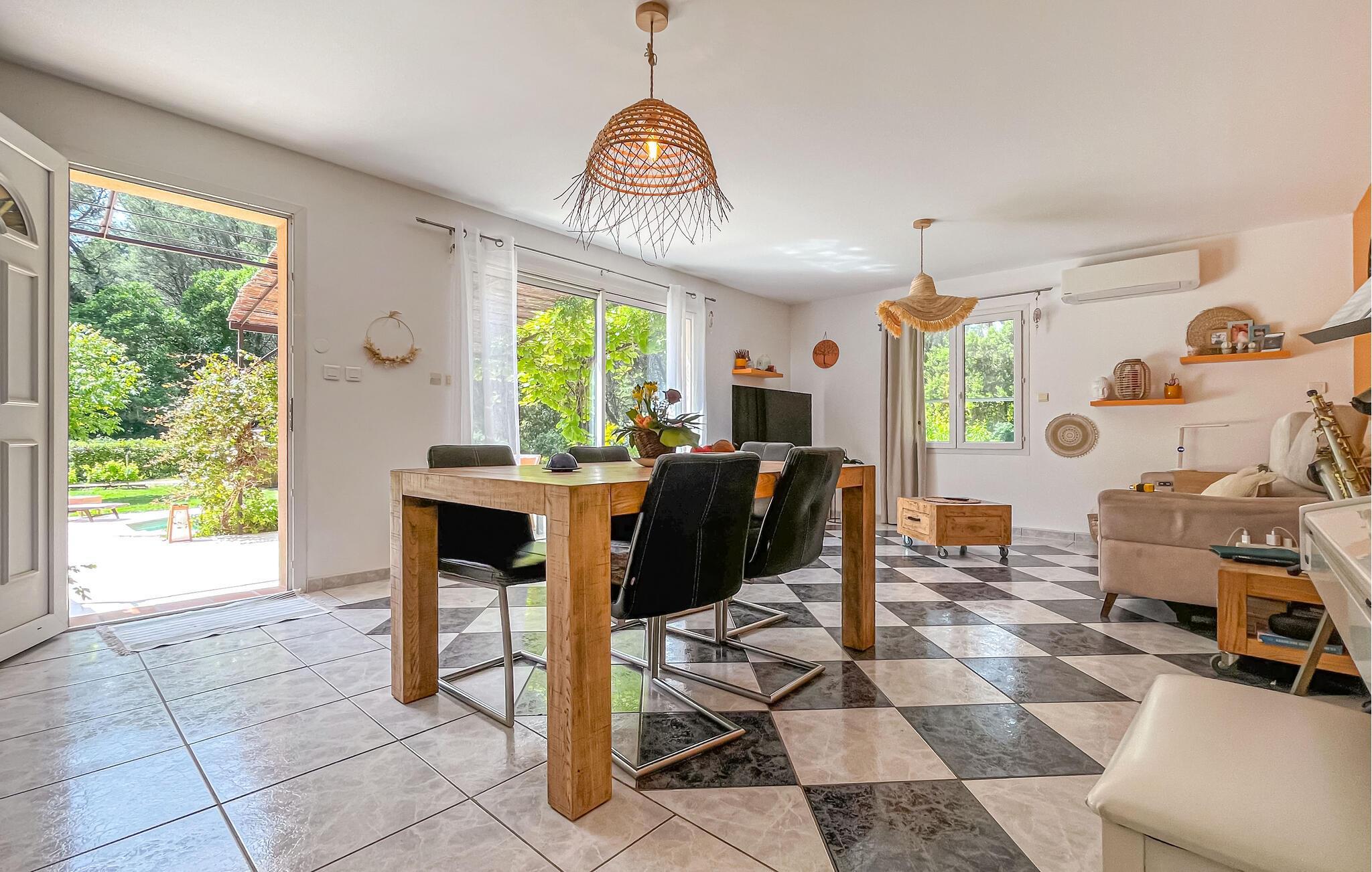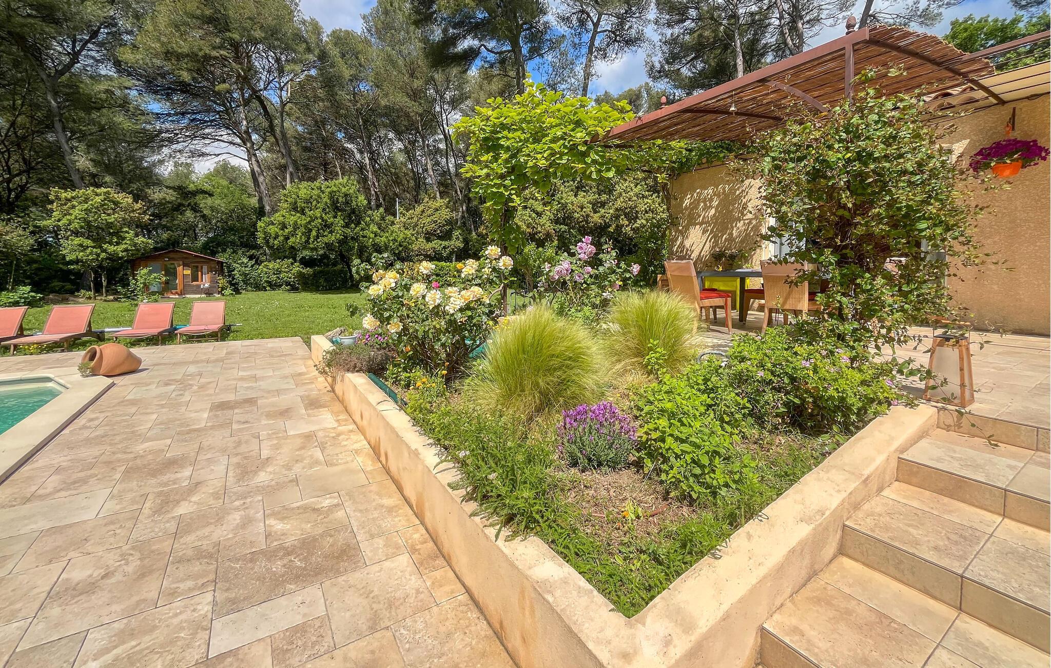 Nyd en afslappende ferie i dette komfortable hus med pool, terrasse og middelhavshave. Jeres velholdte feriehus inviterer jer til en rolig ferie i rolige omgivelser med masser af udendørs plads og ideelle faciliteter. Tilbring ubekymrede dage omgivet af natur, pool og komfort. Den smukke opholdsstue har et hyggeligt siddeområde, et stort vindue og et moderne tv. Møblerne er smagfulde, farverige og funktionelle. Lav mad sammen i det veludstyrede køkken, og brug den åbne spiseplads til fælles måltider. Tilbring tid udenfor på den smukke, skyggefulde terrasse omgivet af planter. Tag en dukkert i den private pool for at køle af, slap af på en af liggestolene, eller slentre barfodet gennem den velholdte have. Nyd solen i absolut fred og ro. Der er også en grill. Husets beliggenhed er ideel til udflugter i regionen. Den gamle bydel i Salon-de-Provence ligger i kort afstand, eller I kan starte vandreture gennem den omkringliggende natur direkte fra haven. I kan også besøge Aix-en-Provence, Luberon eller Alpilles. Alle destinationer er let tilgængelige i bil og vil tilføje variation til jeres ophold.