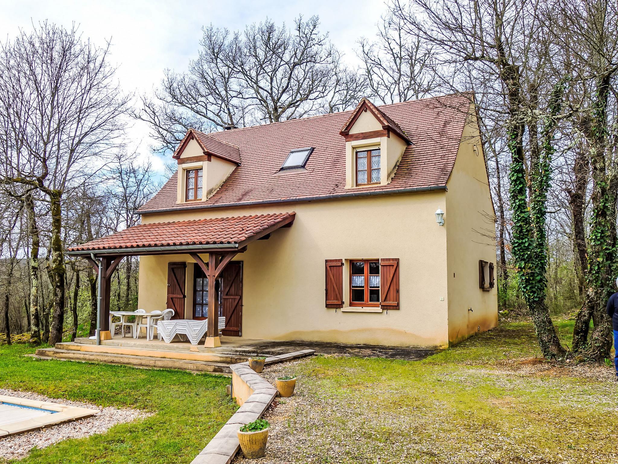 4 km from Salviac: Comfortable single-family house "Les Chenes", surrounded by trees. In the hamlet Le Champ du Lac with 8 houses 4 km from the centre of Salviac, 17 km from the centre of Gourdon, 34 km from the centre of Cahors, in a quiet position, in the countryside. Private: large, well-kept garden 2'000 m2 (not fenced) with lawn and trees, swimming pool (10 x 5 m, depth 140 cm, seasonal availability: 15.May. - 31.Oct.) with shutter cover. Parking at the house on the premises. Shop 4 km, supermarket 4 km, bus stop "Dégagnac" 9 km. Tennis 4 km. Please note: car recommended.