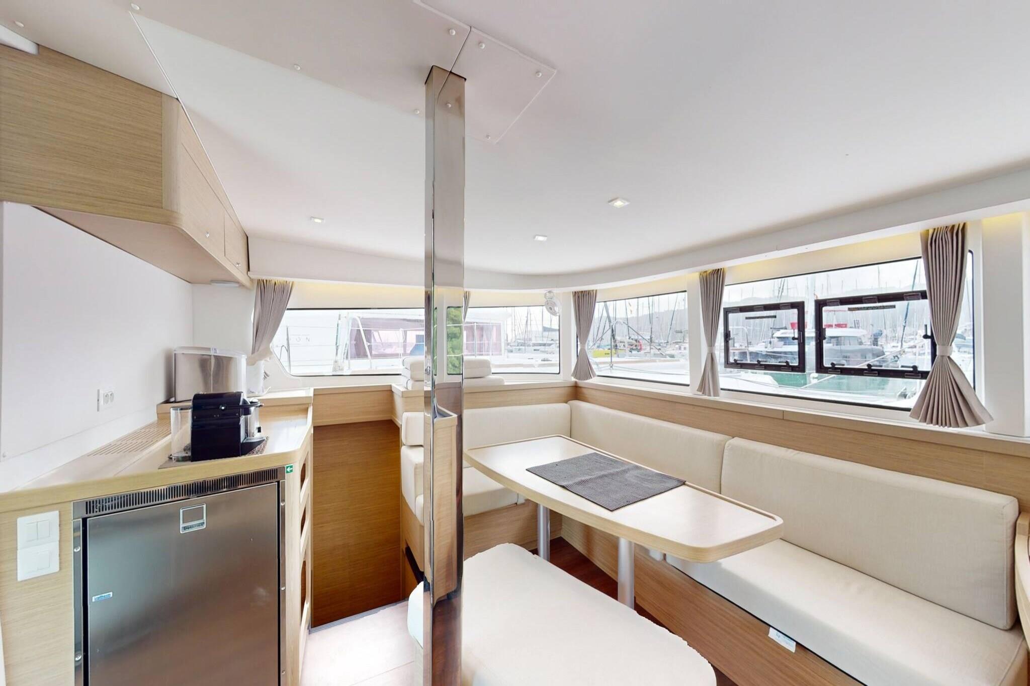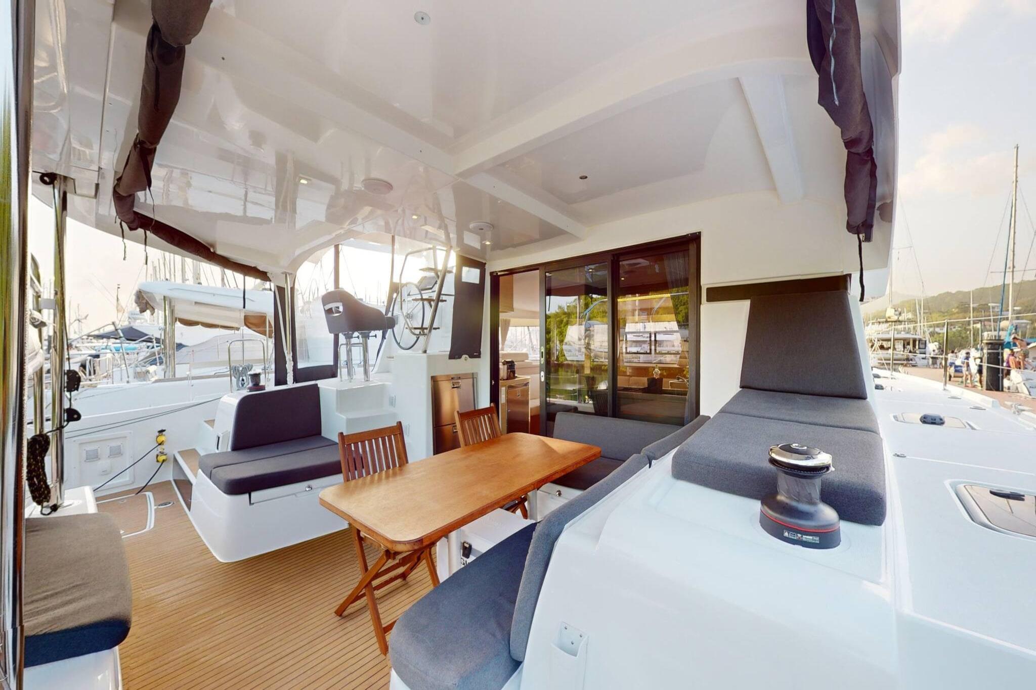 Stig ombord på din private, all-inclusive katamaran, og begiv dig ud på en luksuriøs sejloplevelse uovertruffen. Guidet af en erfaren skipper og forkælet af en dedikeret værtinde-kok, er dine dage til søs fyldt med gourmetmåltider, forfriskende drinks og betagende panoramaer. Dette er ikke bare en getaway - det er et flydende paradis, der tilbyder 5-stjernet komfort og total afkobling fra hverdagen. Denne nyeste Lagoon-model er der, hvor elegance møder innovation. Med ophængte trin, en bred agterplatform og en solbeskinnet salon er katamaranen skabt til både skønhed og funktion. Den hævede styreplads sikrer udsyn og direkte adgang til sejlene, mens den komposit-bimini og den smarte dækplan forbedrer sikkerheden og nem navigation. Indvendigt tilbyder fire dobbeltkahytter hotellignende komfort med ø-senge, store vinduer og eget badeværelse med separate brusere. Det "U"-formede køkken åbner op til cockpittet og blander indendørs og udendørs ophold med panoramaudsigt over havet. Hver detalje - fra organisk inspireret interiør til optimeret rigning - er omhyggeligt designet til ydeevne, ro og stil. Gæster har fuld adgang til alle områder undtagen kahytterne. Book nu for at sætte sejl på din drømmeferie – hvor frihed, elegance og eventyr venter.
