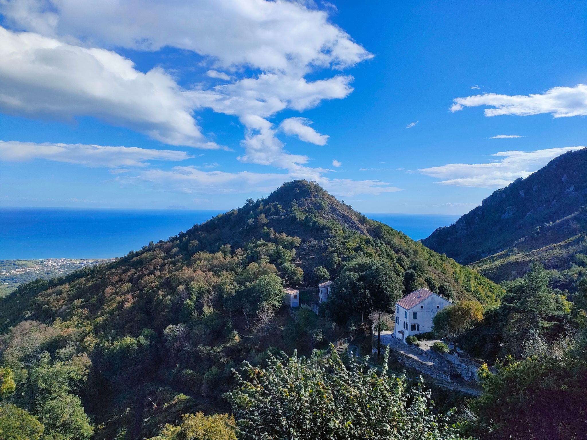 In a hamlet, a veritable balcony overlooking the sea at an altitude of 450 m, facing the Italian islands of Elba and Montechristo; large village house co-owned with another family, 20 minutes from the beach.