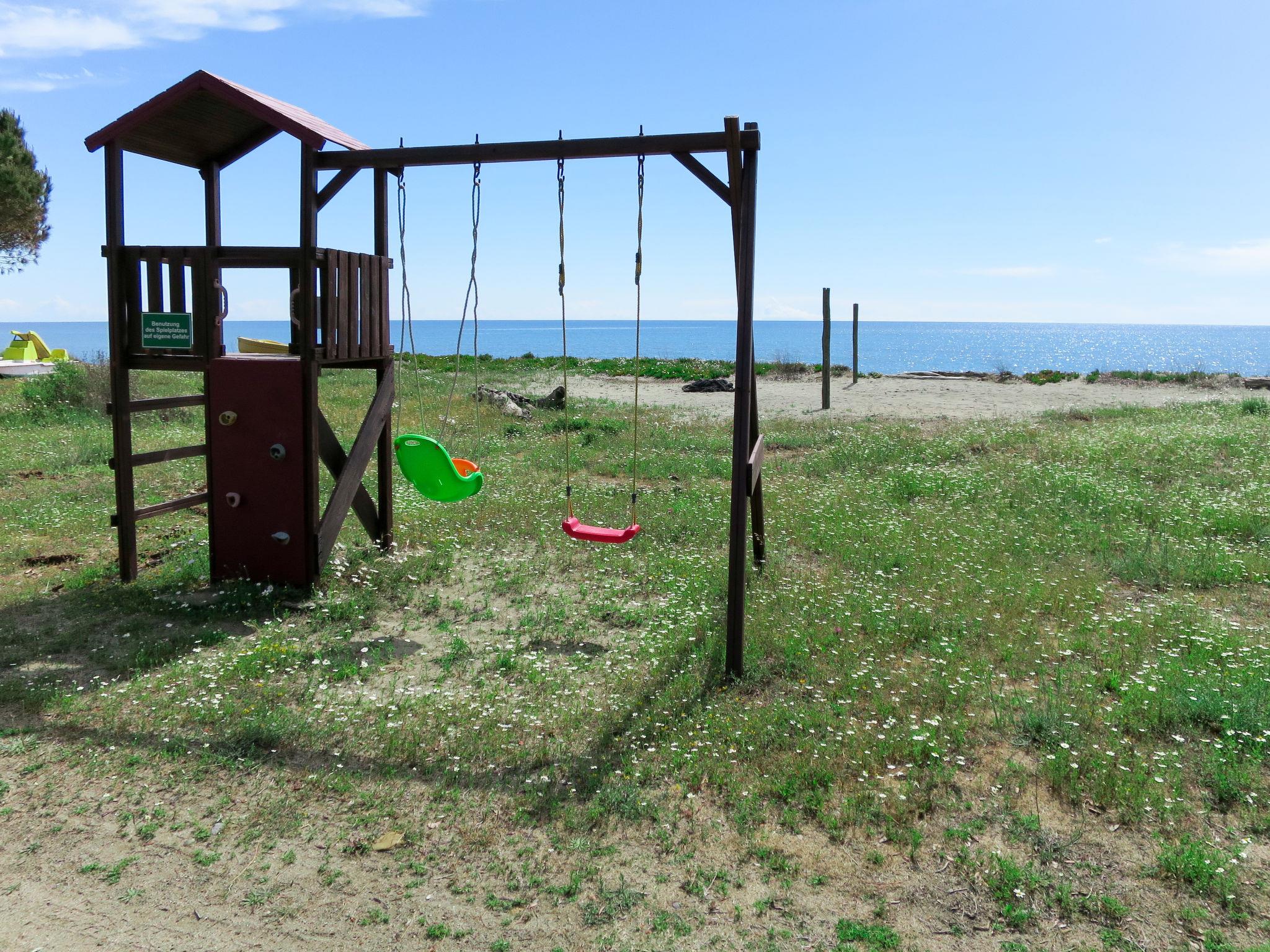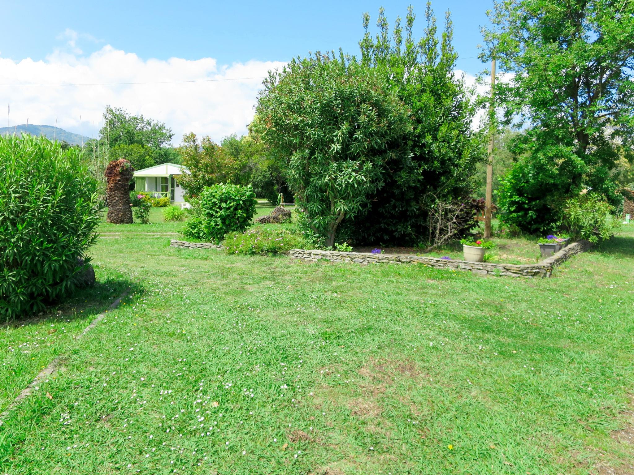 Child friendly, cosy, simple resort "Rico Plage", surrounded by fields. 60 houses in the residence. 6 km from the centre of Moriani Plage, 4 km from the centre of Folelli, 35 km from the centre of Bastia, in a quiet, sunny position, 50 m from the sea, 50 m from the beach, direct access to the beach, in the countryside. For shared use: large, beautiful garden with plants and trees, meadow. Tennis (2 x hard court), table tennis, boccia, volleyball court (swing). In the complex: reception with TV, internet access. Bread roll service. Parking on the premises. Supermarket 4 km, restaurant 50 m, bus stop 4 km, sandy beach 50 m. Please note: car recommended. The photograph shows a typical example. The complex has another 10 chalets for rent.