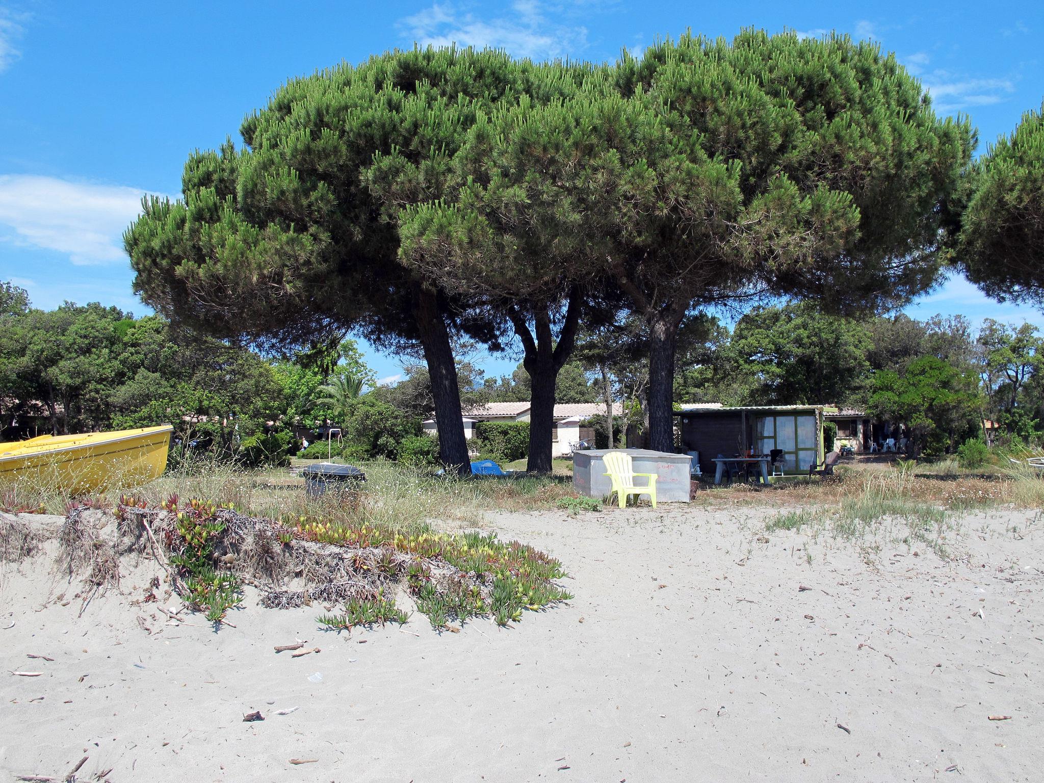 Child friendly, cosy, simple resort "Rico Plage", surrounded by fields. 60 houses in the residence. 6 km from the centre of Moriani Plage, 4 km from the centre of Folelli, 35 km from the centre of Bastia, in a quiet, sunny position, 50 m from the sea, 50 m from the beach, direct access to the beach, in the countryside. For shared use: large, beautiful garden with plants and trees, meadow. Tennis (2 x hard court), table tennis, boccia, volleyball court (swing). In the complex: reception with TV, internet access. Bread roll service. Parking on the premises. Supermarket 4 km, restaurant 50 m, bus stop 4 km, sandy beach 50 m. Please note: car recommended. The photograph shows a typical example. The complex has another 10 chalets for rent.