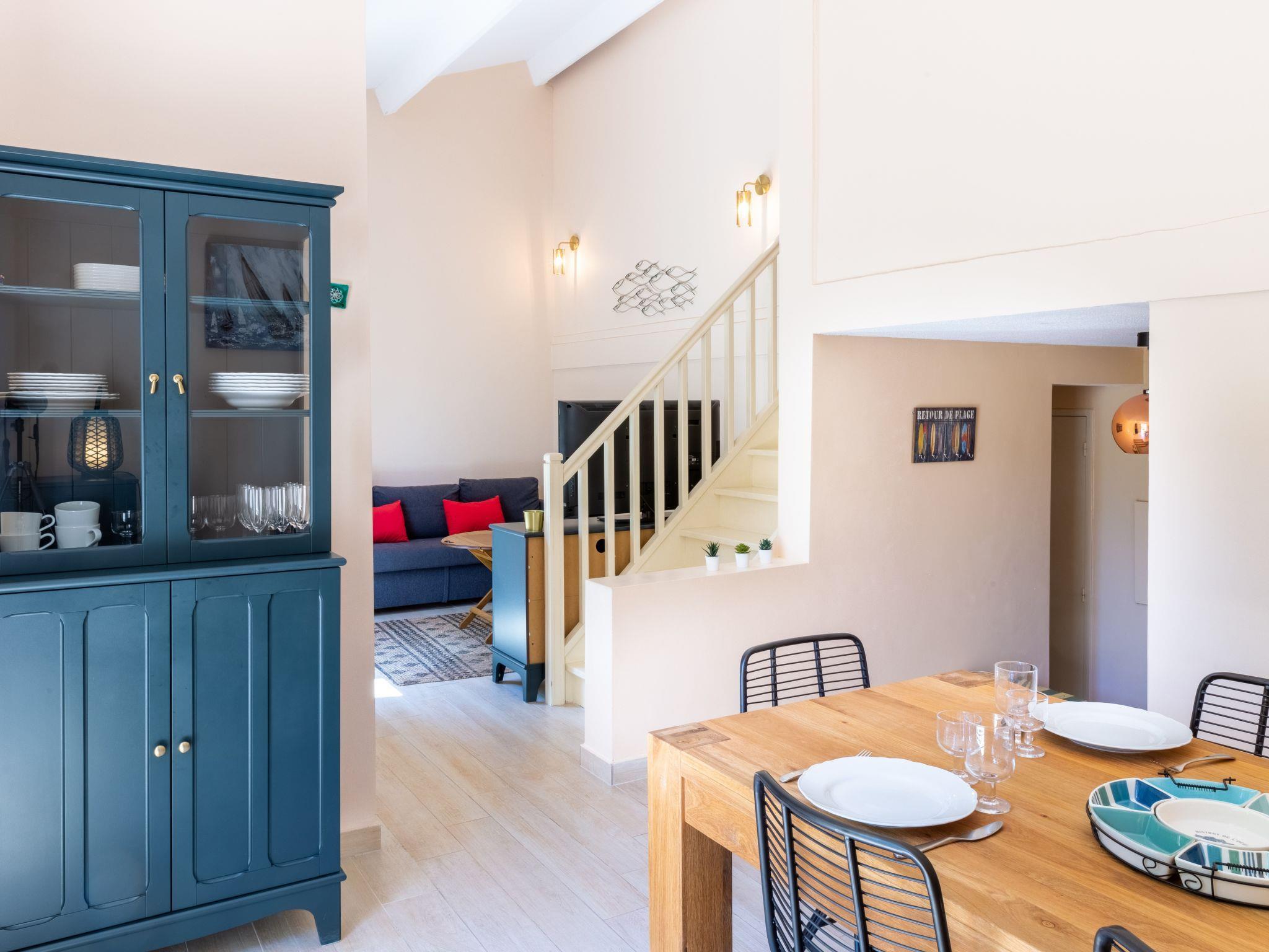 3-room terraced house 60 m2 on 2 levels. Renovated in 2015, comfortable and beautiful furnishings: living/dining room with TV (flat screen). Exit to the garden, to the terrace. 1 room with 1 french bed (140 cm, length 190 cm). Kitchen (dishwasher, 2 induction hot plates, kettle, microwave, freezer, electric coffee machine, Capsules for coffee machine (Nespresso) extra). Sep. WC. Upper floor: 1 room with 1 french bed (140 cm, length 190 cm). Bathroom. Heating. Terrace 30 m2. Terrace furniture, barbecue. Facilities: washing machine, iron. Internet (WiFi, free). Parking space n 40. Please note: non-smokers only. TV only FR. Smoke alarm. 83123001597IP
