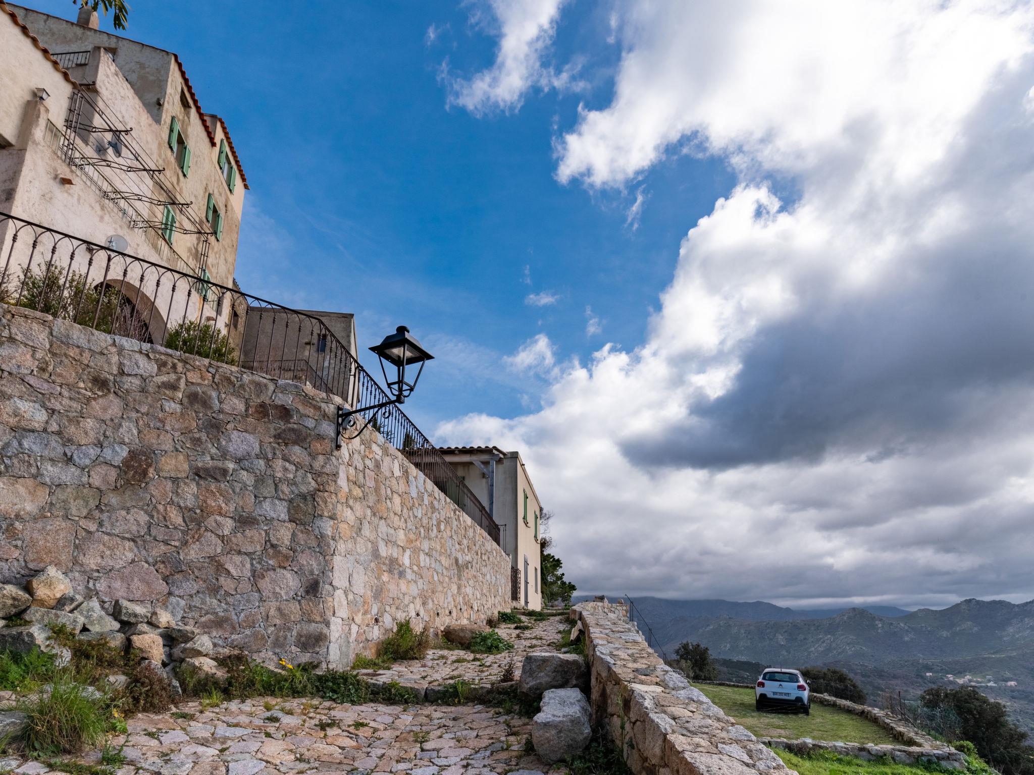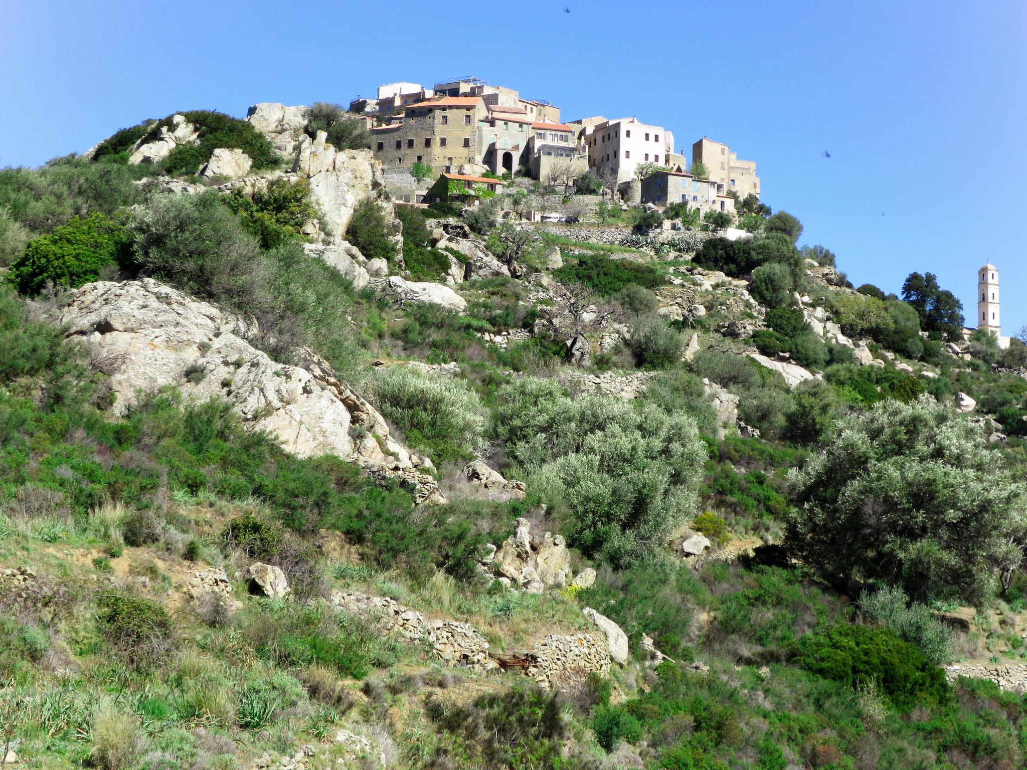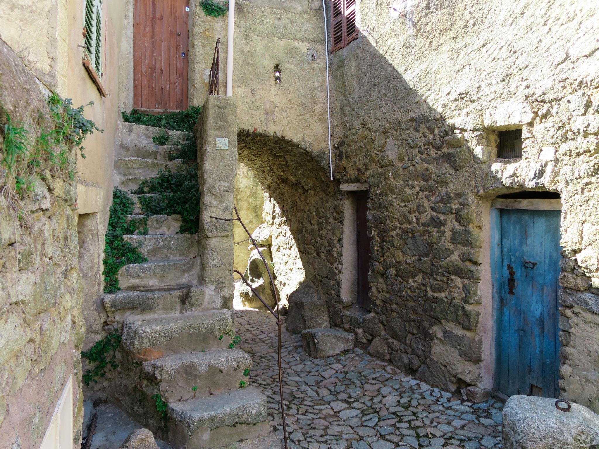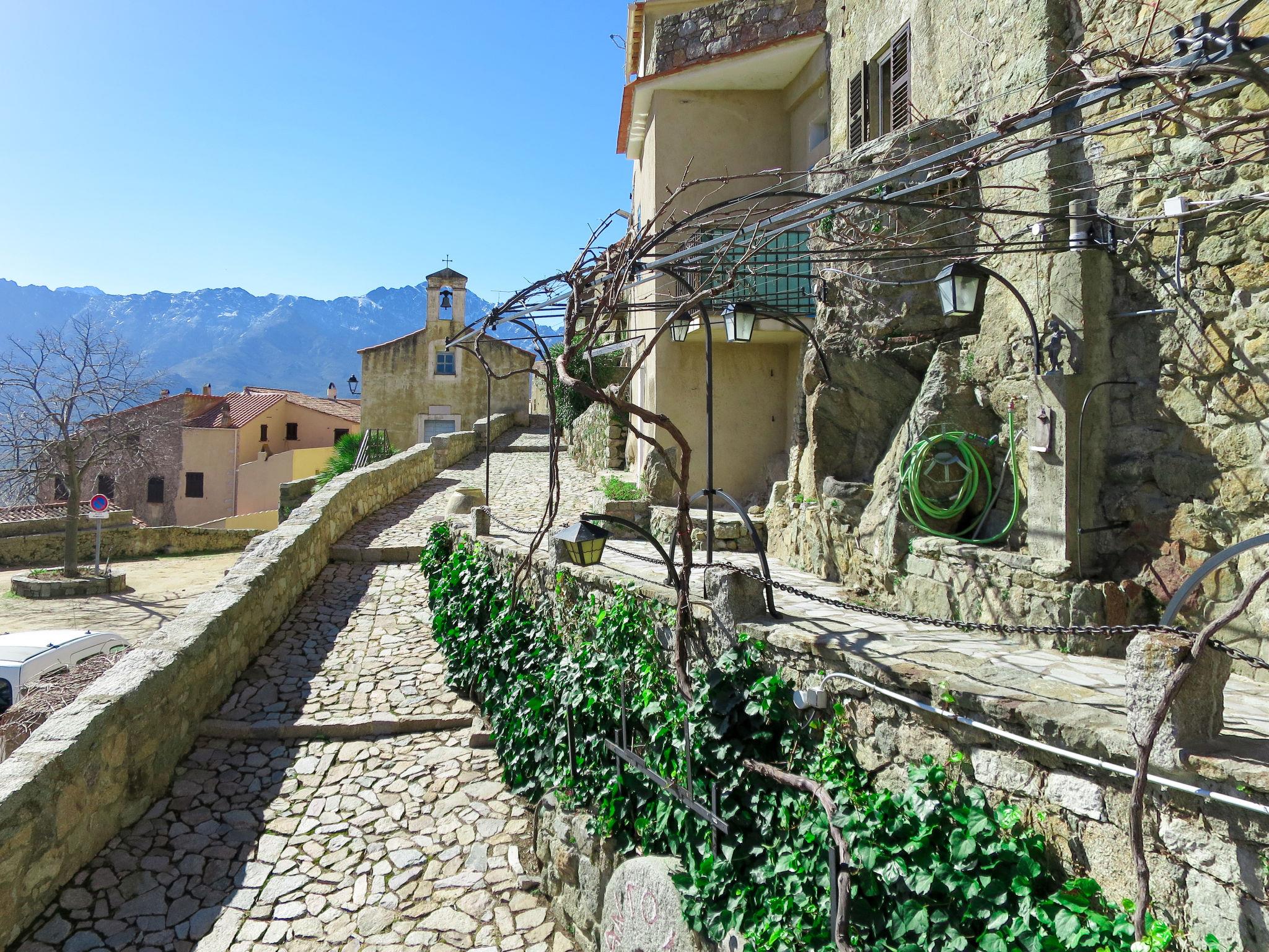 Rustic 3-family house "Marcelli", terraced. In the resort 100 m from the centre of Sant Antonino, 11 km from the centre of L´Ile Rousse, 78 km from the centre of Bastia, in an elevated position on top of a hill, in the residential district, 9 km from the sea. 100 m footpath to the house. Parking at 100 m. Grocery 11 km, supermarket 11 km, bus stop 650 m, sandy beach "Algajola" 9 km. Please note: car recommended. Loading and unloading of baggage is possible at the holiday house.