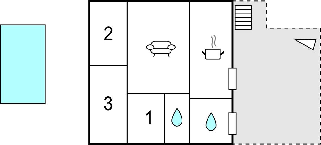Bemærk at den åbne hems kun har en loftshøjde på 158 cm og der er kun adgang via en stejl trappe.