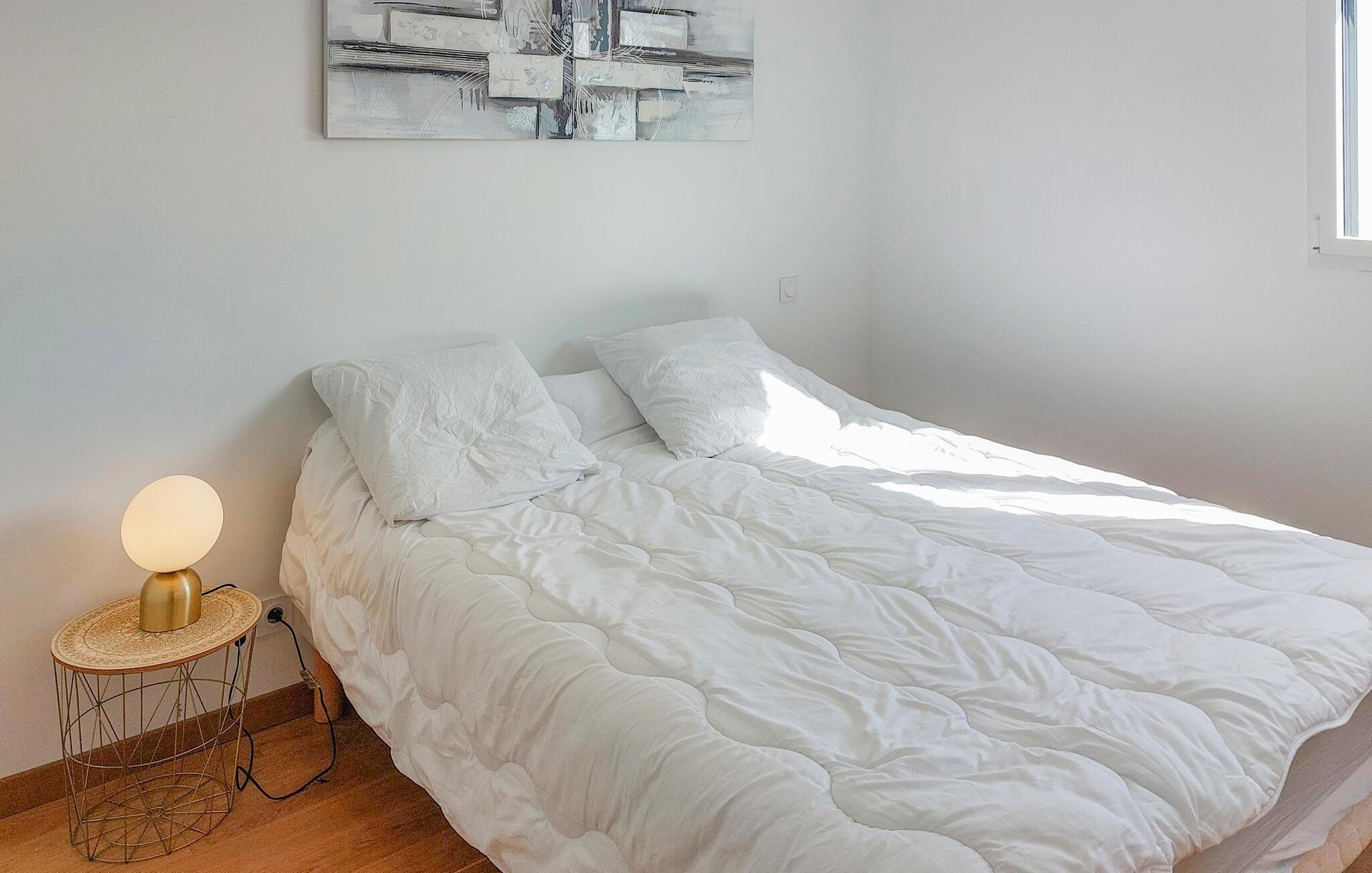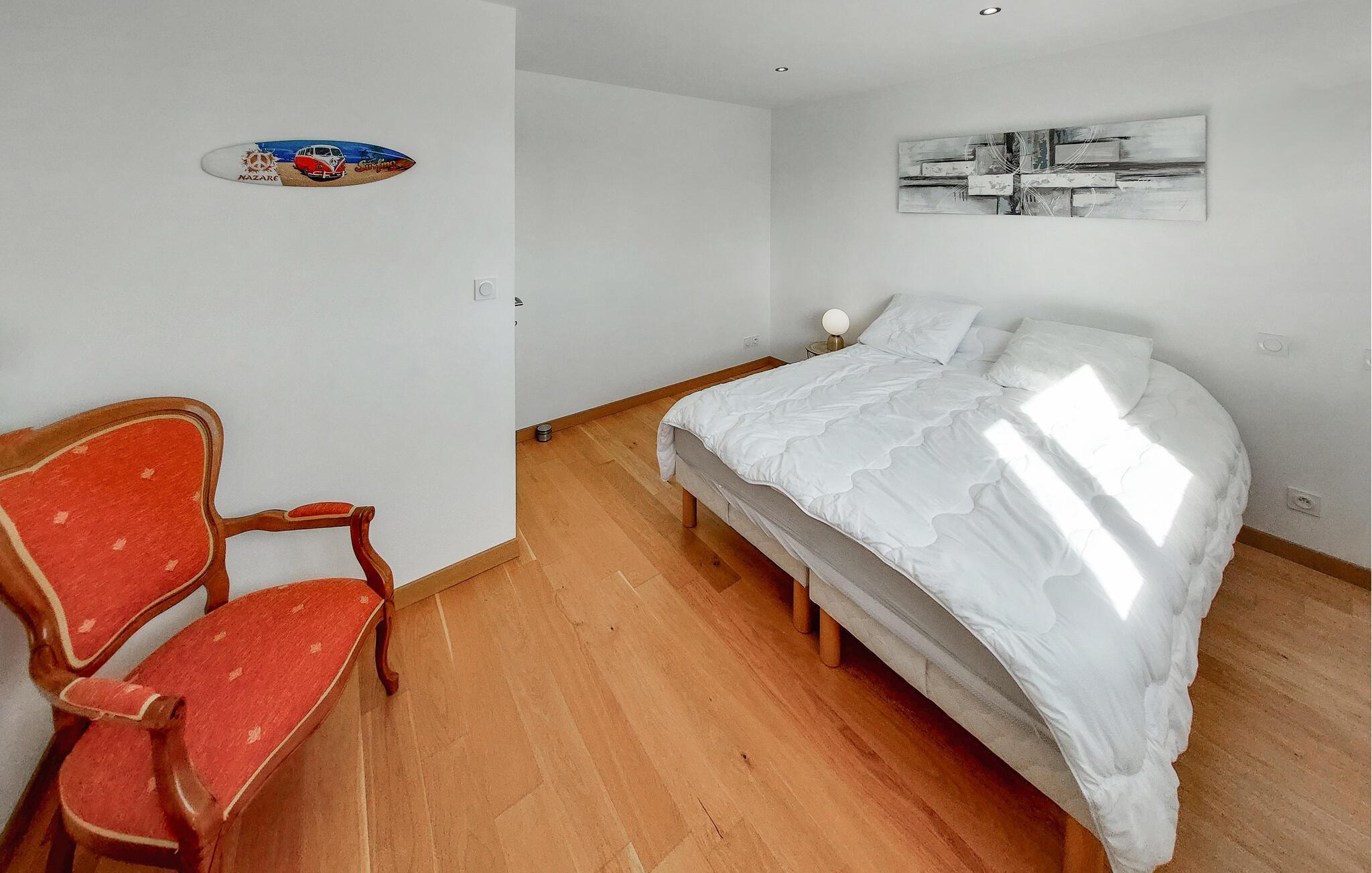 Jeres feriehus i Santec er det ideelle sted for afslapning og hvile. Nyd jeres frie ferietid fuldt ud ved at gøre det hyggeligt i den stilfuldt indrettede stue. Det elegante interiør skaber en behagelig atmosfære, hvor I kan slappe fuldstændigt af. Det veludstyrede køkken giver jer alt, hvad I har brug for til at tilberede friske, regionale delikatesser, måske endda med friskfanget fisk fra det nærliggende marked.