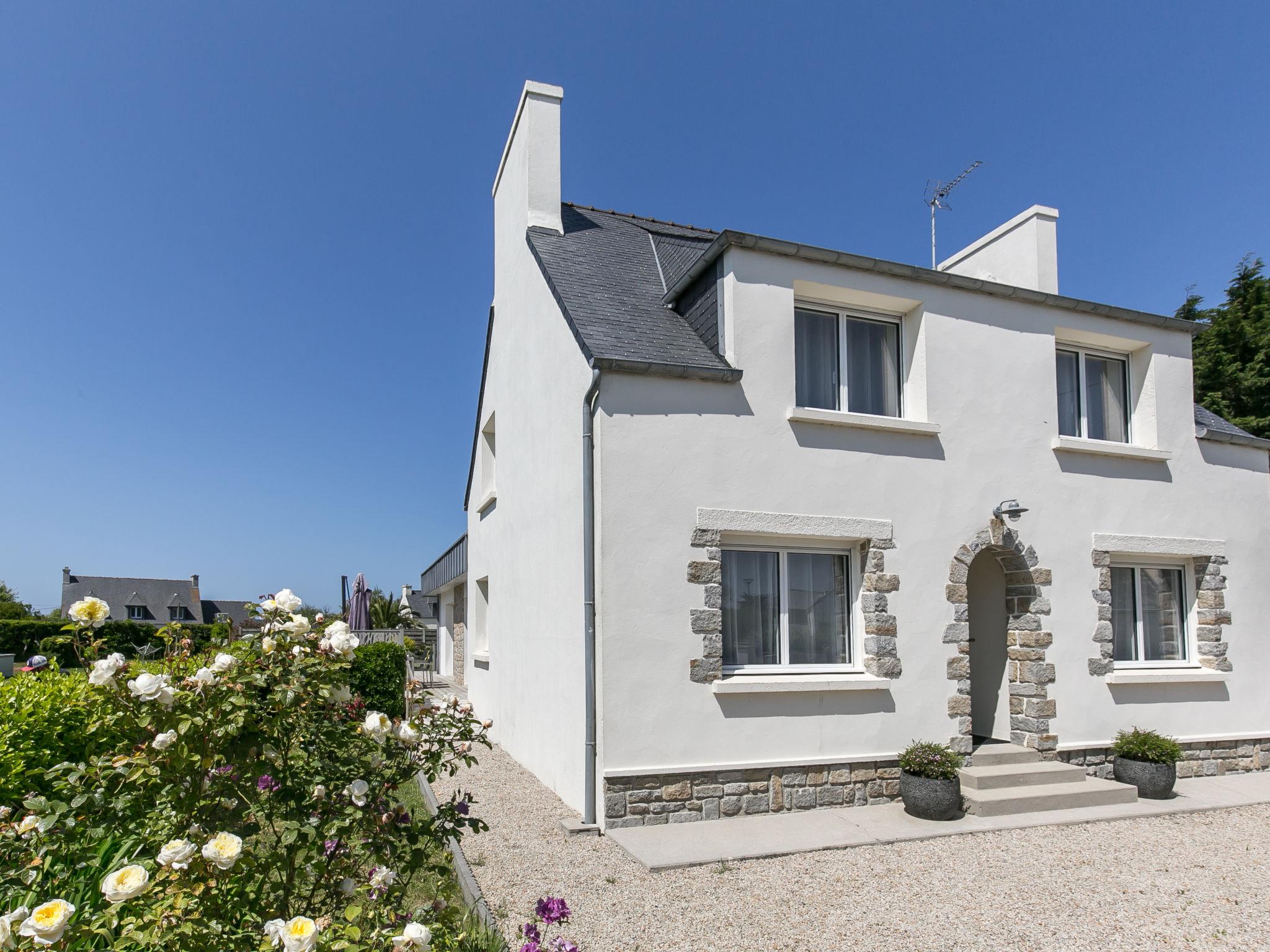 Modern, beautiful, comfortable single-family house "Maison du Venec". 550 m from the centre of Santec, 5 km from the centre of Roscoff, 5 km from the centre of Saint-Pol-de-Léon, in a quiet position in the residential district, 550 m from the sea, 550 m from the beach, in a cul-de-sac. Private: property 1'000 m2 (fenced), large, well-kept garden with lawn and wildlife garden, parking (for 3 cars) on the premises. Shop 5 km, grocery 600 m, supermarket 5 km, shopping centre 5.5 km, restaurant 3 km, bakery 450 m, bus stop "Mairie" 500 m, sandy beach "Plage du Pouldu" 550 m, thermal baths "Thalasso Roscoff" 5 km. Sports harbour 5.4 km, marina 6 km, golf course (9 hole) 19 km, surf school 2.8 km, sailing school 5 km, walking paths from the house 500 m. Nearby attractions: Plage du Dossen, Île de Siek 3 km, Jardin exotique Roscoff, Île de Batz 5.5 km, Carantec 15 km, Plage 14 km, Château de Kerjean 21 km, Morlaix 26 km. Hiking paths: GR34, sentier des douaniers 550 m.