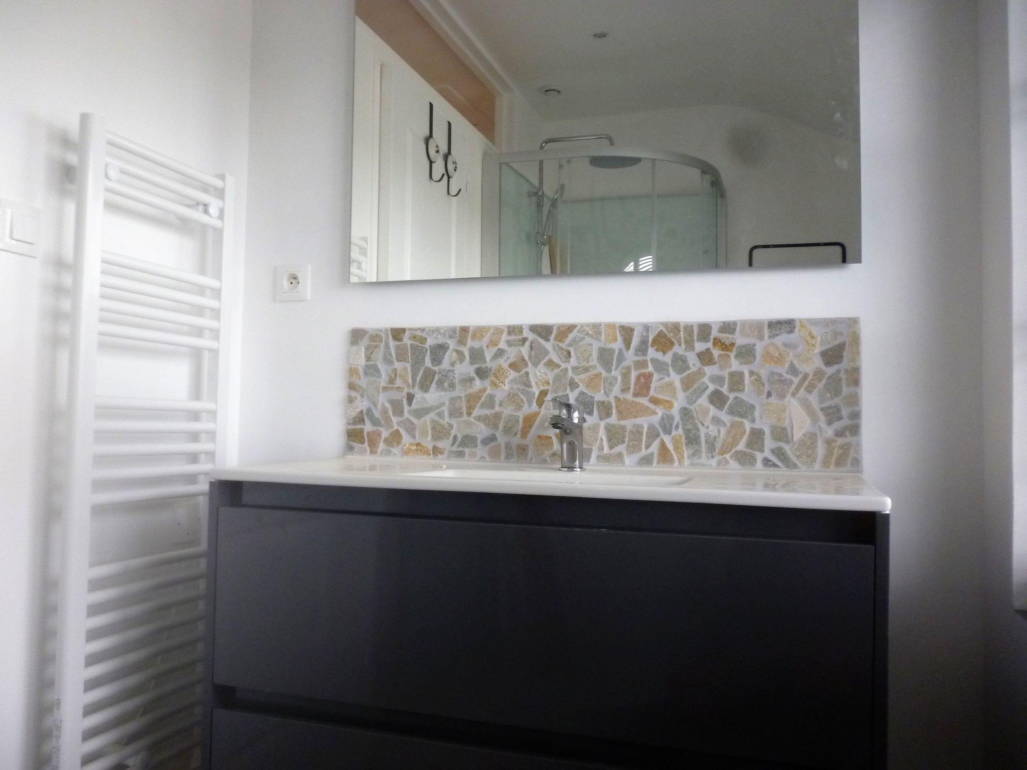 The detached house, 100 m2 of living space, has a first floor and a ground floor. The bedrooms are on the first floor: 1 large master bedroom with a sea and nature view of 25 m2 with a cosy sitting area, a reading area and 2 dressing rooms for the lady and the gentleman, a queen-size bed measuring 1.60 metres by 2.00 metres + 1 double bed on request -The other bedroom has 2 beds measuring 0.90 metres x 1.90 metres + sea view -A children's playroom with television and sea view -1 room with individual wc -1 room with shower cubicle, The ground floor has a surface area of approximately 25 m2 and comprises on one side -a modern kitchen area: induction hob, large oven, fridge, extractor fan, microwave, dishwasher, coffee machine ... the dining area - the lounge area with flat-screen TV, CD player, wifi, hi-fi, wood-burning stove, 1 3-seater sofa. The other part of the house on the ground floor comprises: a 2 nd shower room with washbasin and walk-in shower, 1 individual WC, 1 individual laundry room, utility room with washing machine, tumble dryer, VMC (controlled mechanical ventilation).