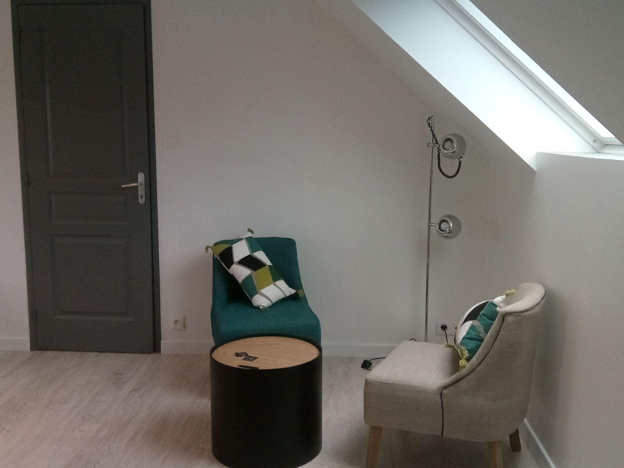 The entrance door in the centre of the main photo is individual and reserved for the gîte only! On the right, on the ground floor, are the living rooms! On the left are the shower room, laundry room and toilet. Please note that bed linen is provided on request (for a fee) and energy costs are charged from 1 October to 31 May.