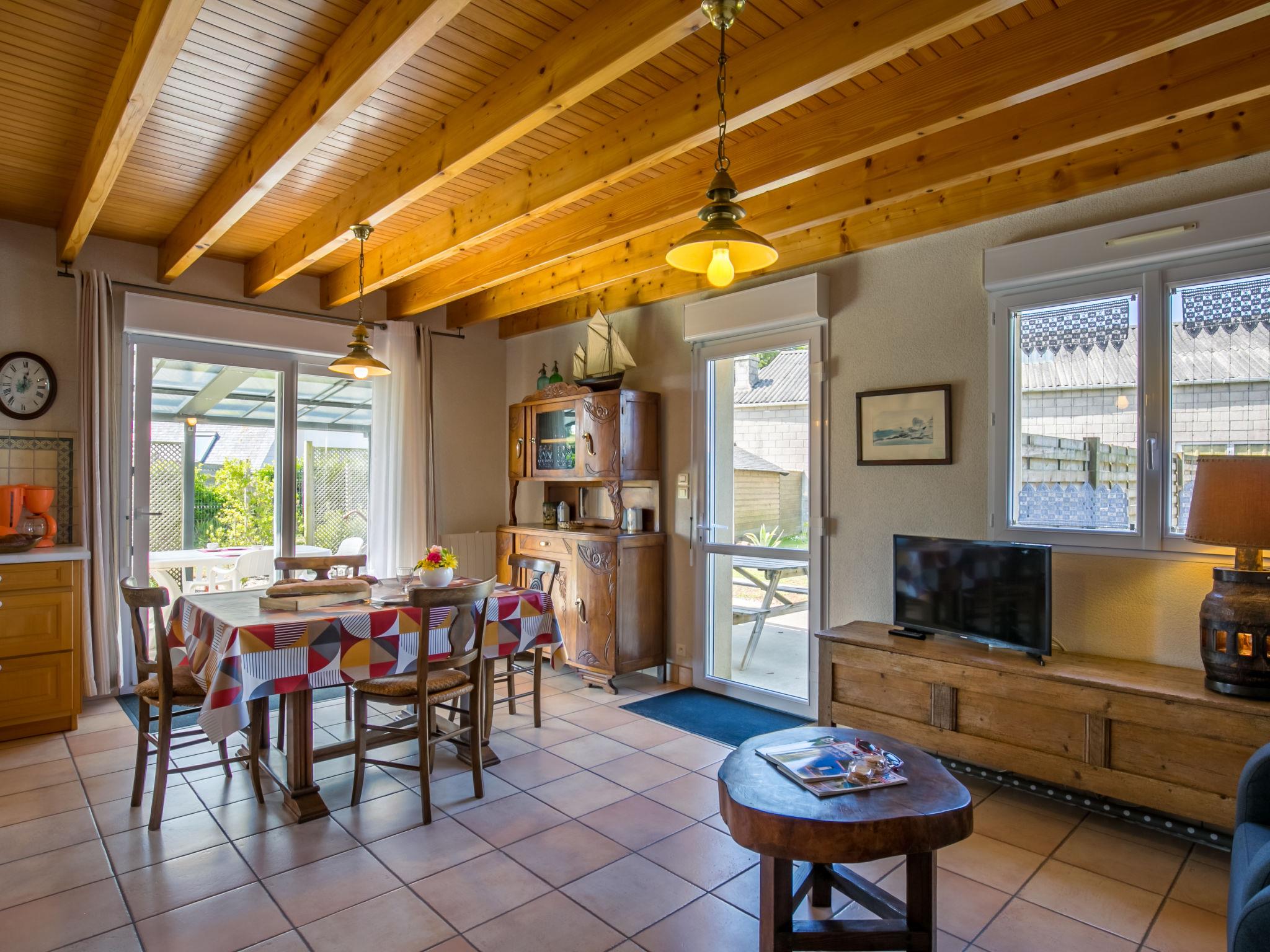 "Rève de Plage", 2-room house 55 m2. Cosy furnishings: living/dining room with dining table, TV and wood-burning stove. Exit to the terrace. 1 room with 2 beds. Open kitchen (oven, dishwasher, 4 gas rings, toaster, kettle, microwave, electric coffee machine). Shower/WC. Electric heating. Terrace partly roofed, south facing position and west facing position. Terrace furniture, barbecue (portable), deck chairs (2). Facilities: washing machine, baby cot. Internet (WiFi, free). Please note: non-smoking house. Smoke alarm. 29273 000054 11