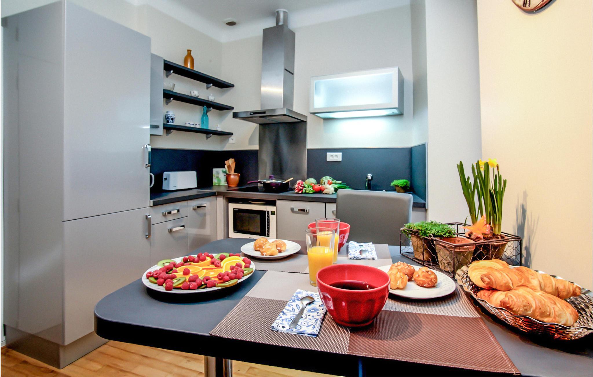 Velkommen til de lyse rum i denne lejlighed, godt placeret i hjertet af den gamle bydel i Sarlat, i en bygning fra det 18. århundrede. Med sin smagfulde indretning, smukke gulvbrædder og moderne udstyr inviterer den til at slappe af i en stilfuld atmosfære. Efter en begivenhedsrig dag kan I føle jer godt tilpas i de komfortable sofaer og lænestole i stuen og snakke til langt ud på aftenen. x