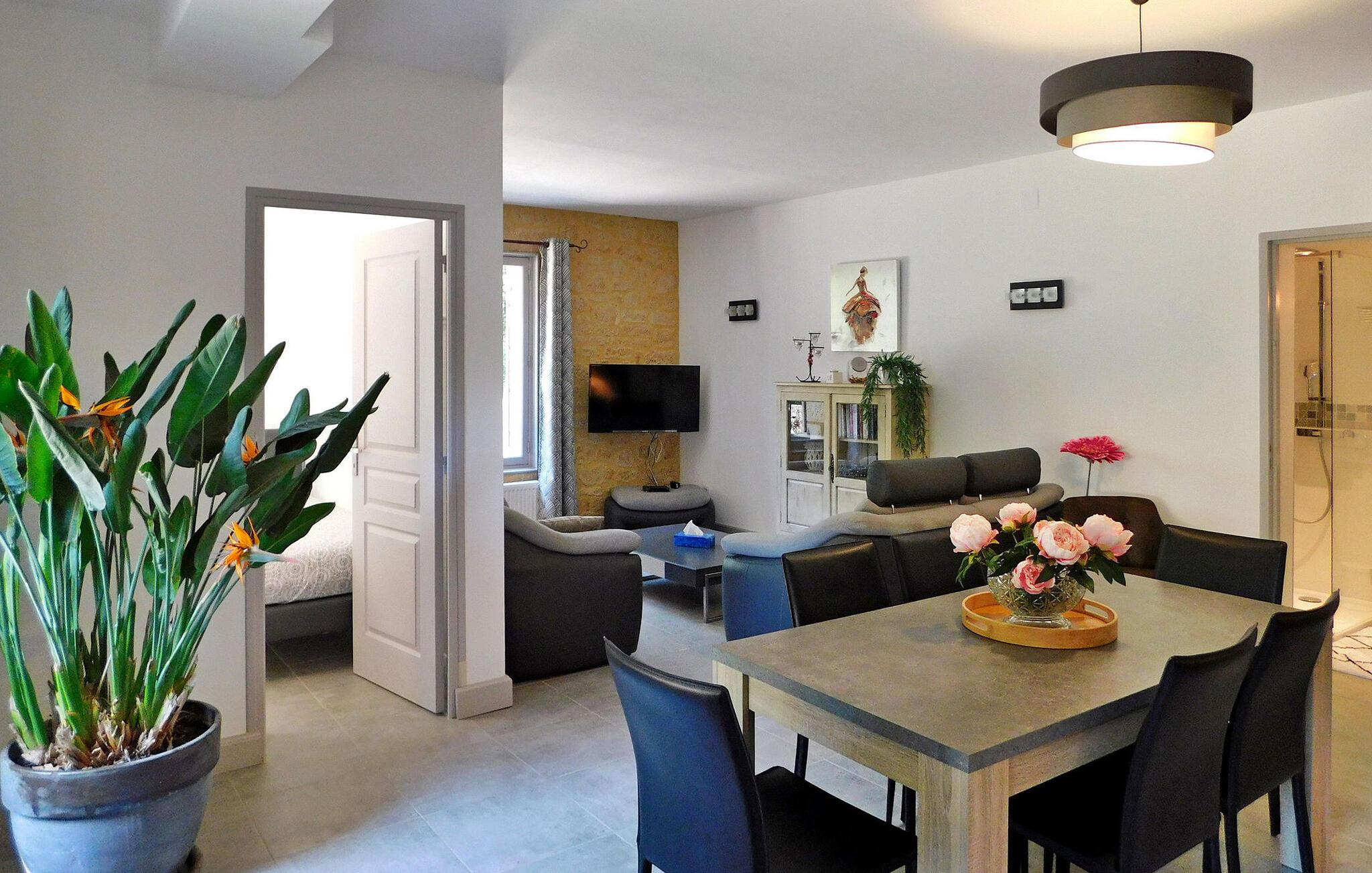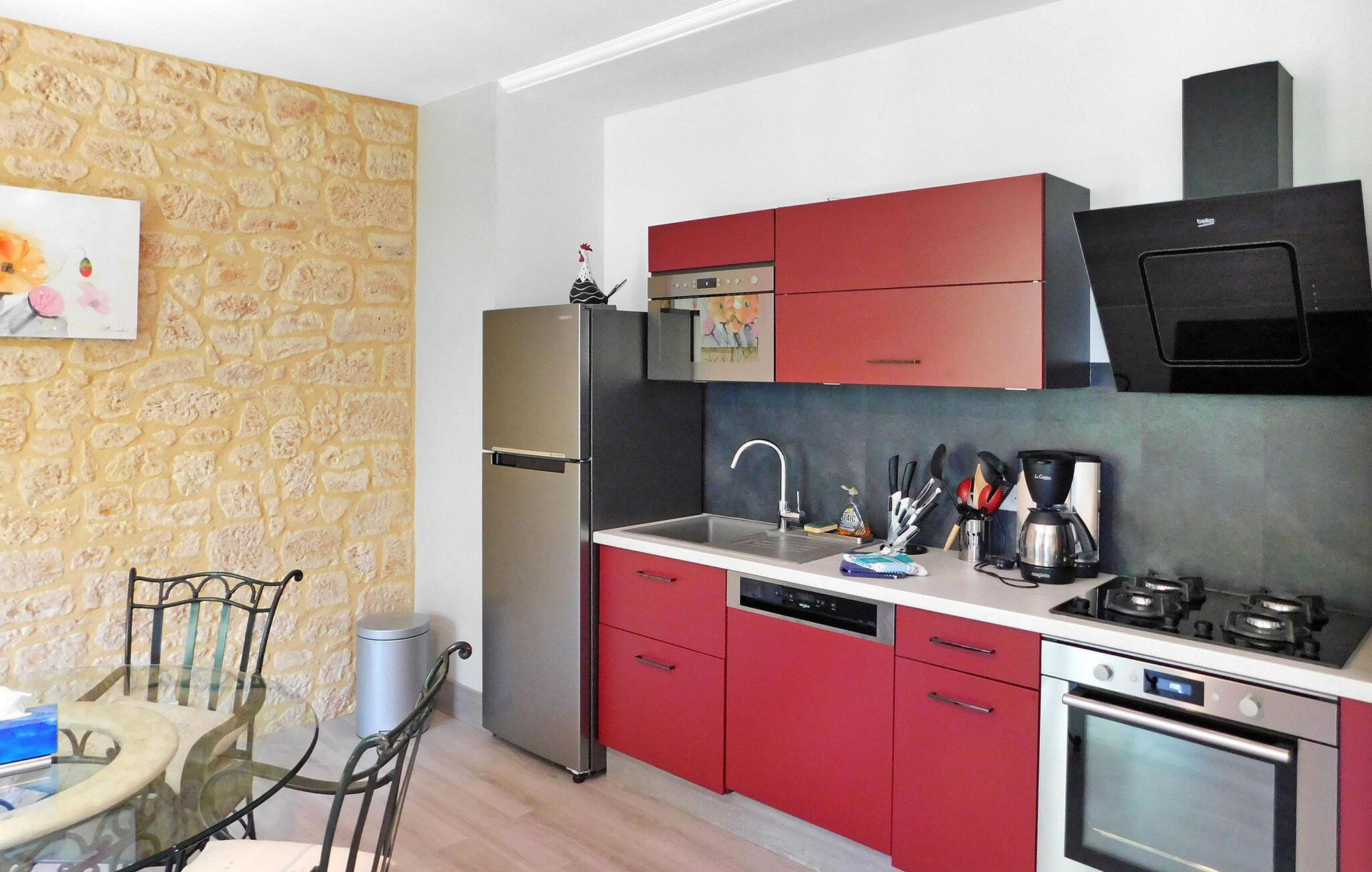 Oplev et pragtfuldt feriested i Sarlat, Dordogne, i et typisk Périgourdine-hus designet til at rumme gæster i to tilstødende lejligheder (en til 4 og en anden til 6 personer). Denne charmerende bolig blander komfort med maleriske omgivelser. Den første lejlighed har et opholdsområde med komfortable siddepladser og spiseplads samt et veludstyret køkken og en praktisk kælder. Tre soveværelser venter, som hver byder på fredelige tilbagetog, suppleret med to badeværelser. Ovenpå tilføjer en altan et strejf af ro til rummet. Tilstødende viser den anden lejlighed et opholdsområde, der åbner ud til en rummelig balkon, et funktionelt køkken, to soveværelser og et brusebad, hvilket øger komfort og bekvemmelighed. Udenfor kan du nyde skønheden i omgivelserne med en hovedterrasse med en plancha og en sekundær terrasse til intime sammenkomster og en fredfyldt, skovklædt park. Nyd den private opvarmede swimmingpool, indhegnet for sikkerhed, med et tæppe med syntetisk græseffekt, liggestole og parasoller til afslapning. Bemærk venligst, at ejerne bor på stedet i et selvstændigt hus et andet sted på ejendommen, hvilket sikrer, at dit ophold understøttes, mens dit privatliv respekteres. Fordyb dig i Sarlats charme og nyd komforten og roen i dette dejlige feriehus, hvor afslapning og landskabelig skønhed fletter sig sammen for at skabe uforglemmelige øjeblikke. Ejendommen er beliggende i Sarlats højder, ikke langt fra landsbyen Temniac, en enkelt vej fører hurtigt til byens centrum (1,5 km).