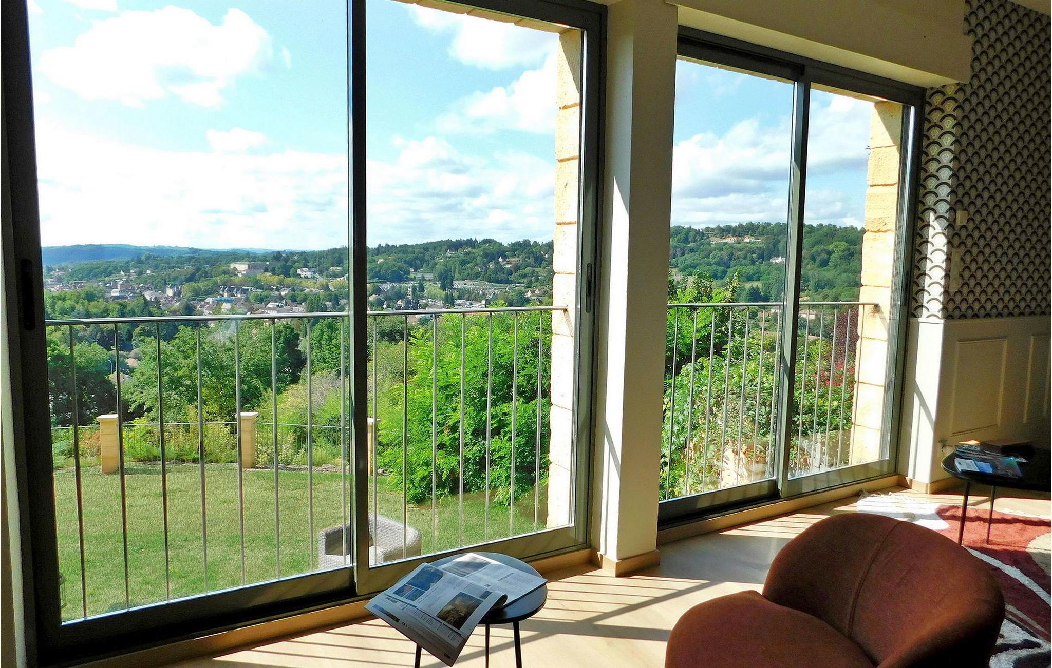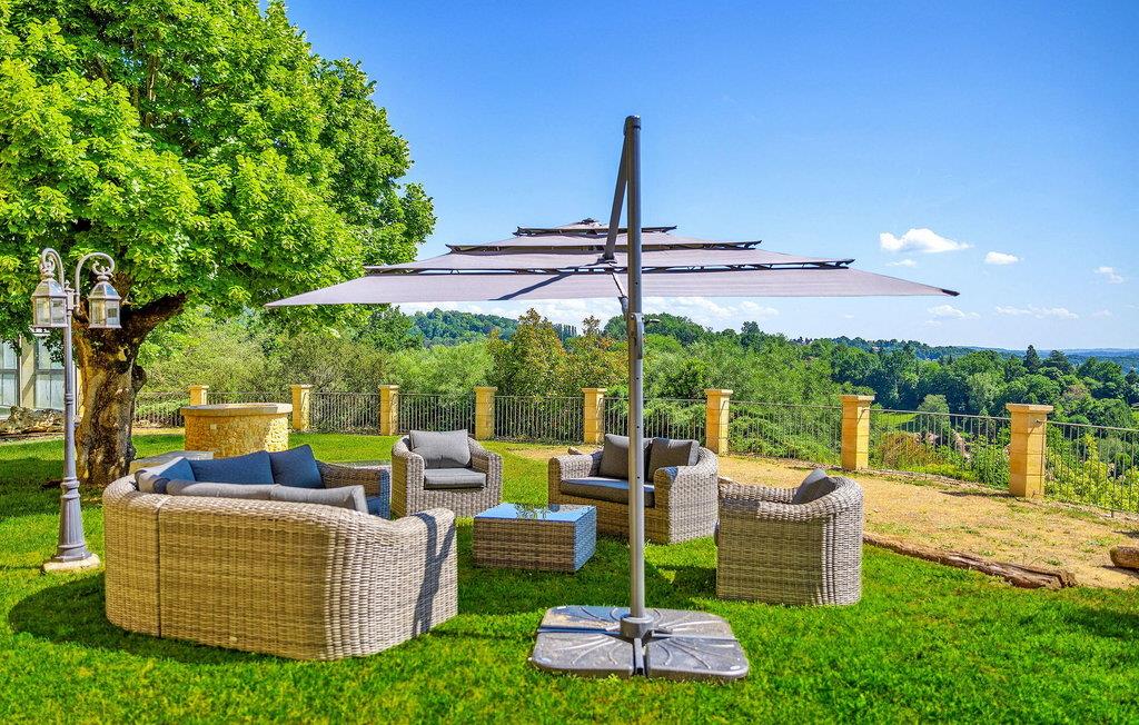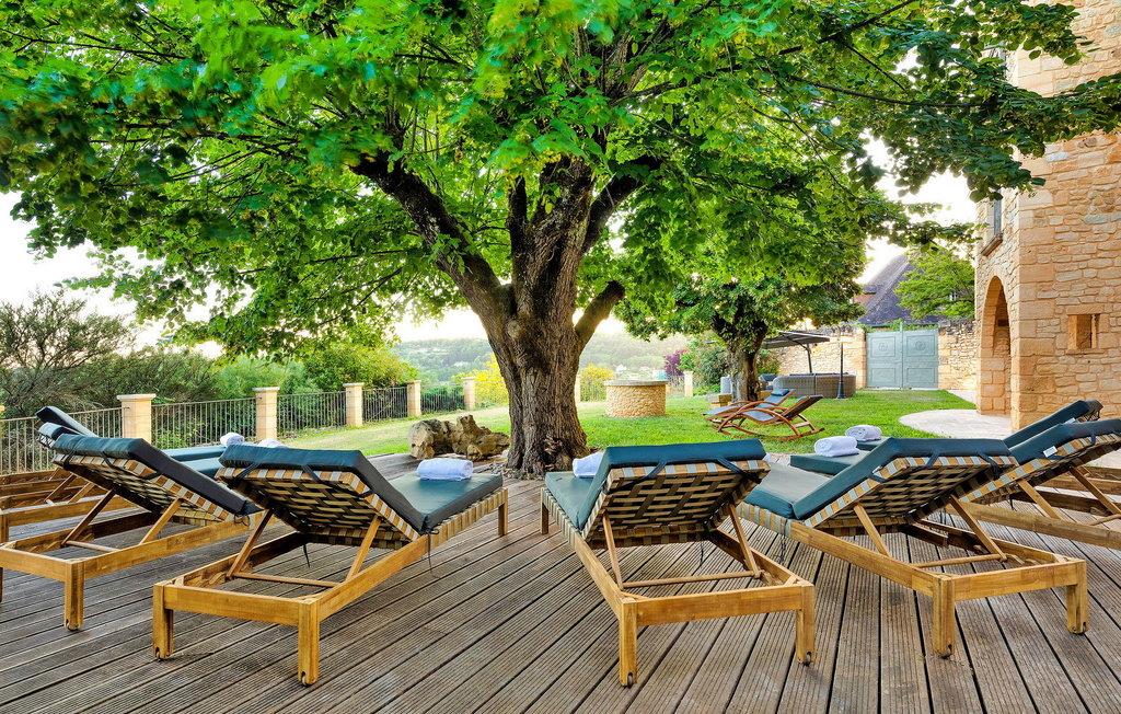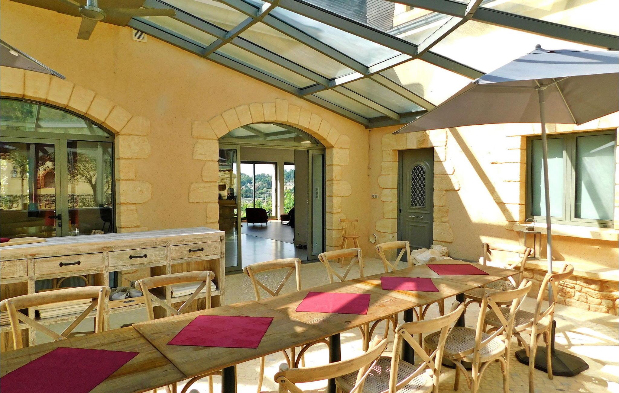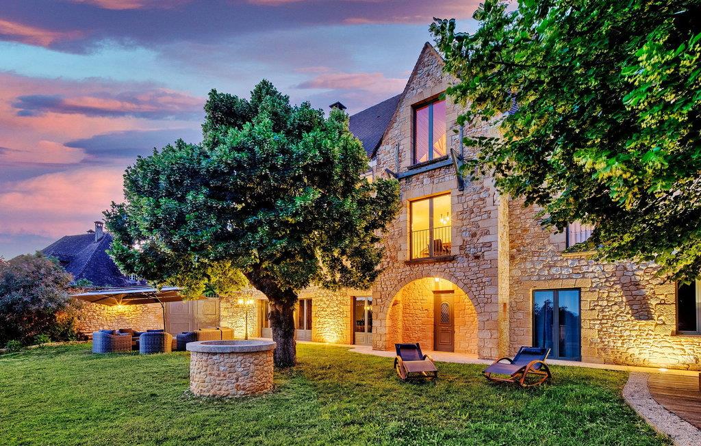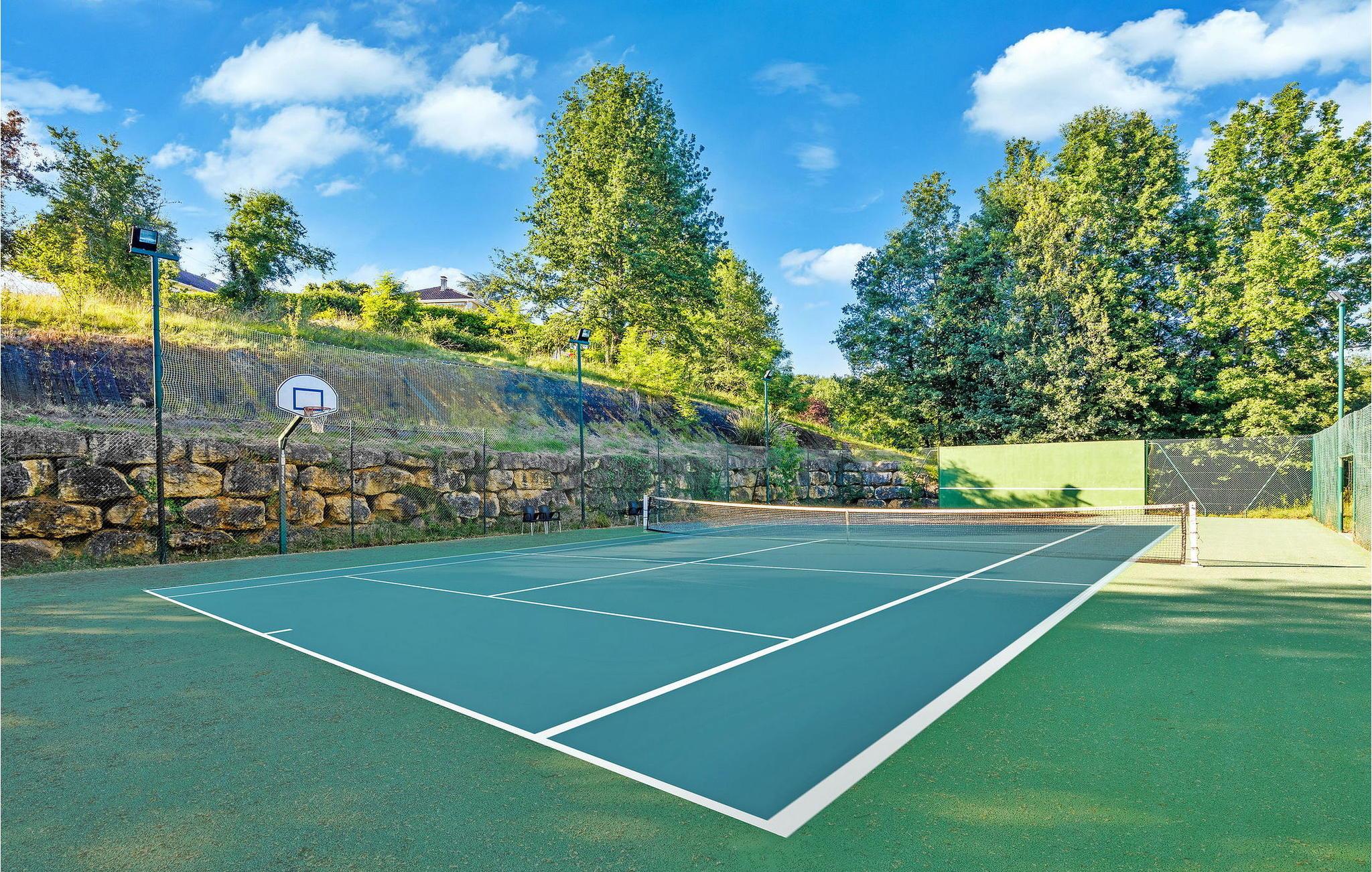 Denne bemærkelsesværdige ejendom i Dordogne tilbyder luksusindkvartering og en række ekstraordinære faciliteter. Det vidtstrakte 3-etagers hus har en stueetage med entré, et halvåbent køkken, en rummelig opholds- og spisestue, et biografrum, et glasoverdækket rum med pejs, vaskerum og flere soveværelser, hver med ensuite faciliteter . Første sal huser yderligere soveværelser, hver smukt møbleret og udstyret med ensuite badeværelser. Stueetagen omfatter et imponerende vandområde med en indendørs opvarmet pool, spa og hammam. Udenfor er der en privat parkeringsplads, tennisbane, lukket græsareal og en have med panoramaudsigt over landskabet og Sarlat. Gæsterne kan slappe af på havemøblerne, liggestolene eller nyde forskellige yderligere tjenester såsom seminarer, naturterapi-sessioner, massage og ansigtsbehandlinger, alle tilgængelige efter anmodning og mod et tillægsgebyr. Derudover har ejendommen gulvvarme for ekstra komfort. Ejendommen er beliggende på højderne af Sarlat og nyder godt af et enestående synspunkt. Ejendommen består af flere hektar med klipper og skove, men til din disposition er 1 hektar omfattende tennisbane, parkeringsplads, indvendig bane og stor altan, græsplænen ved foden af huset. Alle lokale butikker i Sarlat-la-Canéda (2,6 km).