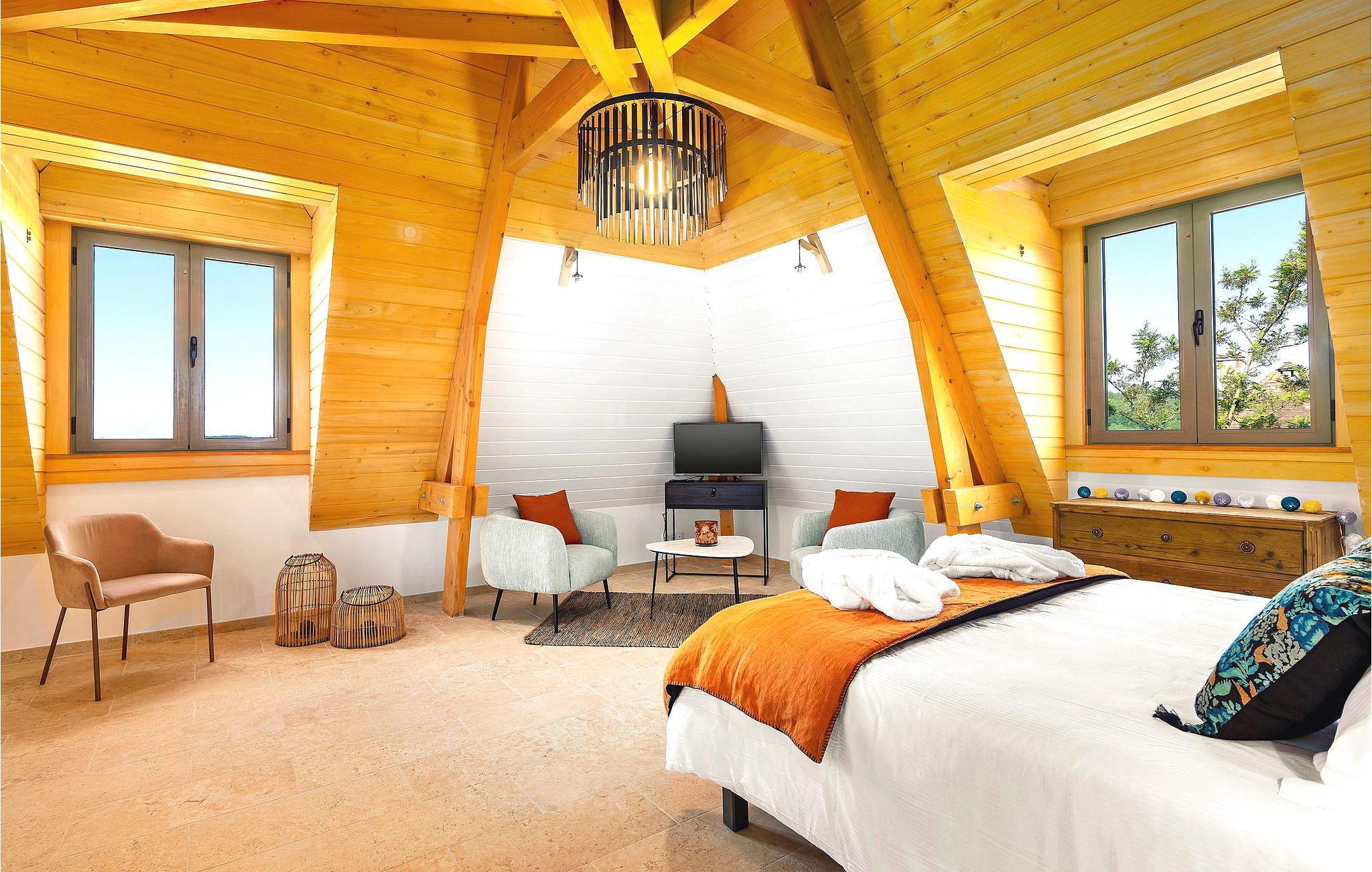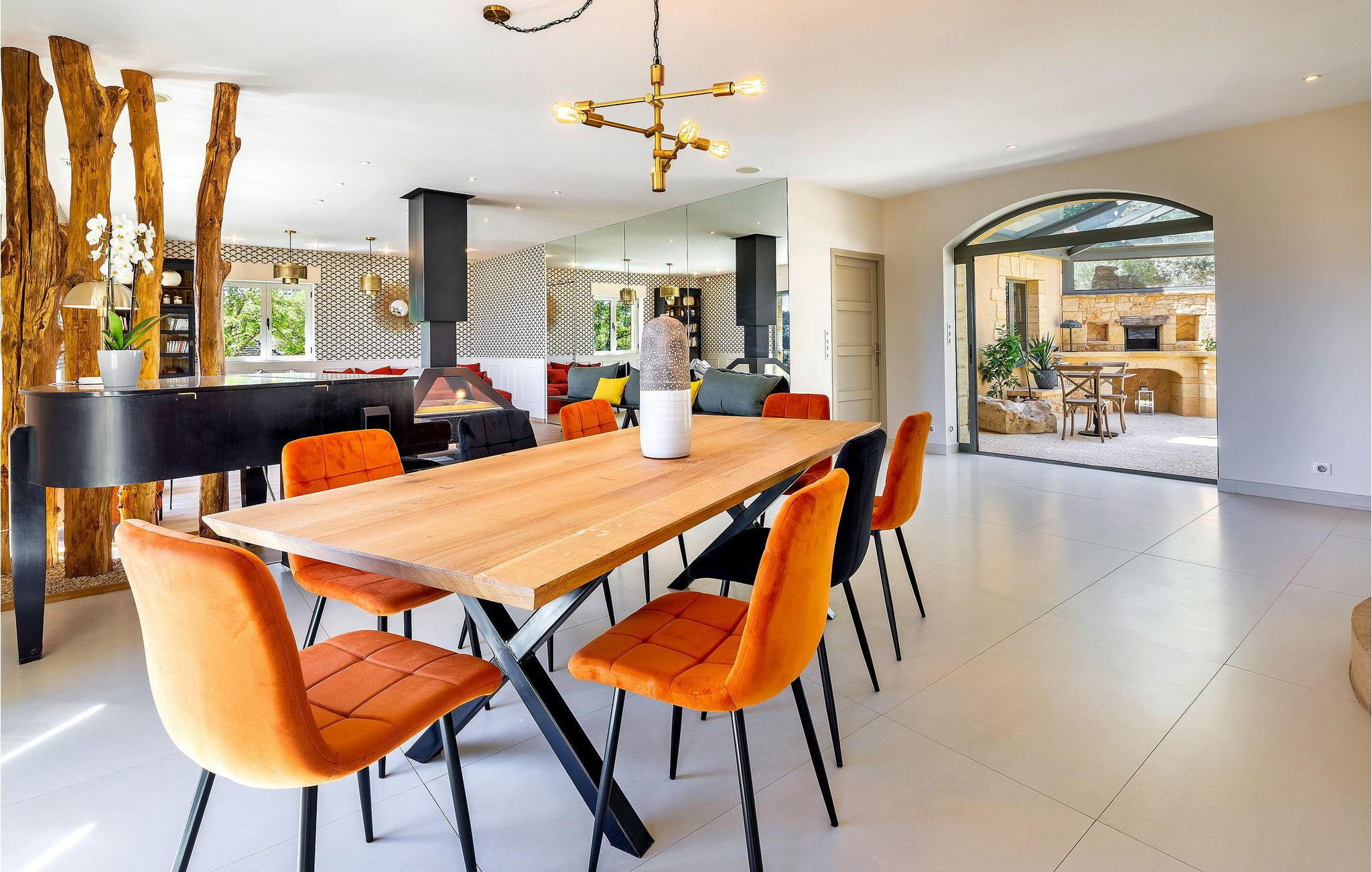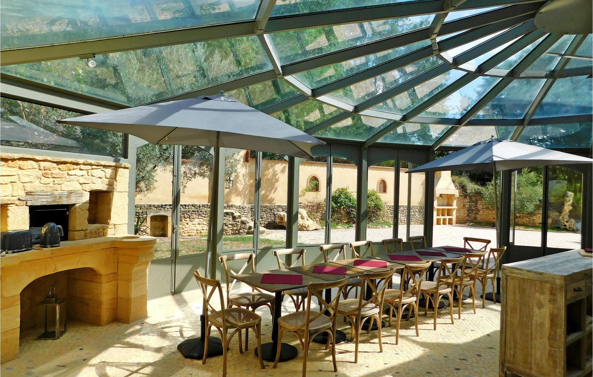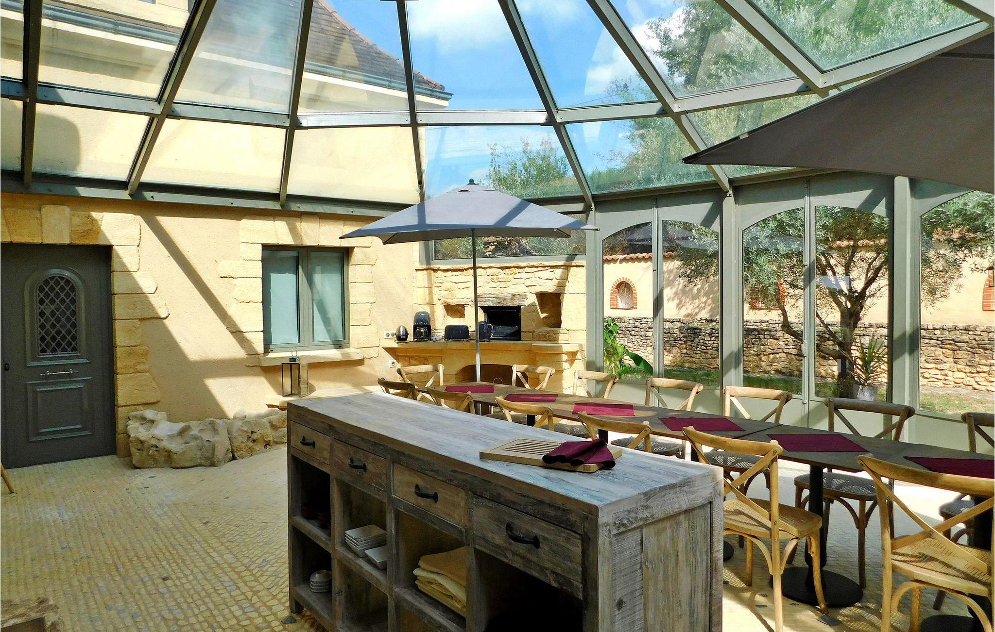 Denne bemærkelsesværdige ejendom i Dordogne tilbyder luksusindkvartering og en række ekstraordinære faciliteter. Det vidtstrakte 3-etagers hus har en stueetage med entré, et halvåbent køkken, en rummelig opholds- og spisestue, et biografrum, et glasoverdækket rum med pejs, vaskerum og flere soveværelser, hver med ensuite faciliteter . Første sal huser yderligere soveværelser, hver smukt møbleret og udstyret med ensuite badeværelser. Stueetagen omfatter et imponerende vandområde med en indendørs opvarmet pool, spa og hammam. Udenfor er der en privat parkeringsplads, tennisbane, lukket græsareal og en have med panoramaudsigt over landskabet og Sarlat. Gæsterne kan slappe af på havemøblerne, liggestolene eller nyde forskellige yderligere tjenester såsom seminarer, naturterapi-sessioner, massage og ansigtsbehandlinger, alle tilgængelige efter anmodning og mod et tillægsgebyr. Derudover har ejendommen gulvvarme for ekstra komfort. Ejendommen er beliggende på højderne af Sarlat og nyder godt af et enestående synspunkt. Ejendommen består af flere hektar med klipper og skove, men til din disposition er 1 hektar omfattende tennisbane, parkeringsplads, indvendig bane og stor altan, græsplænen ved foden af huset. Alle lokale butikker i Sarlat-la-Canéda (2,6 km).