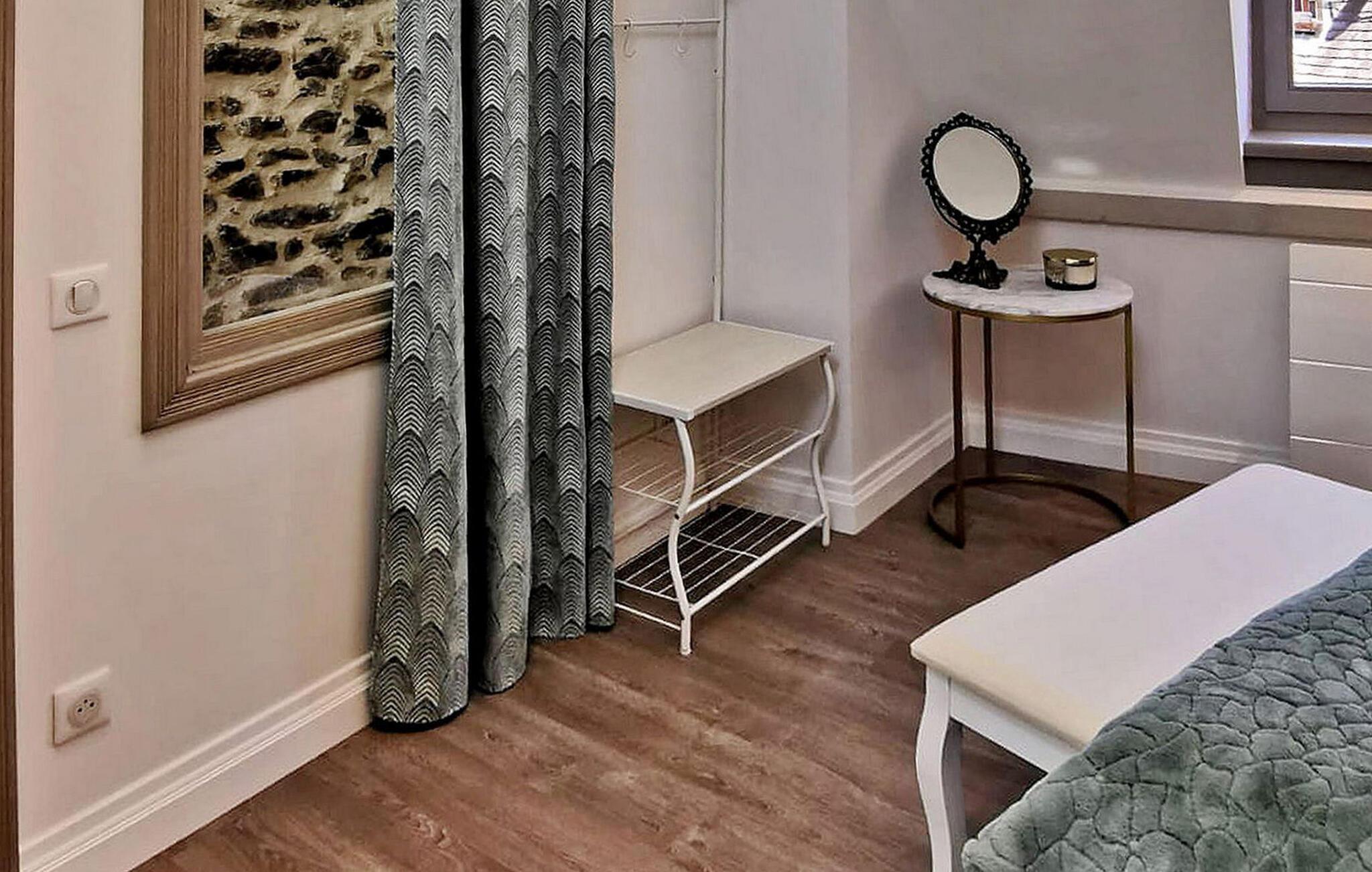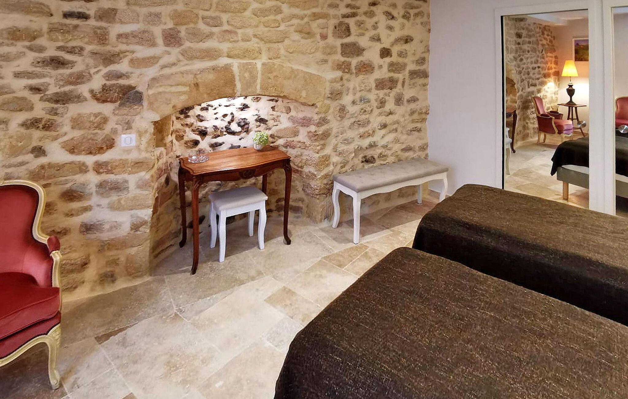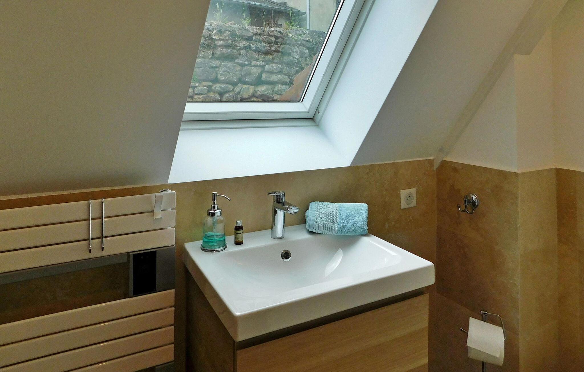 Beliggende i hjertet af Sarlat tilbyder dette charmerende stenferiehus fredfyldt ro på en stille gade. Beliggende midt i middelalderbyen er butikker og restauranter let tilgængelige til fods. Denne dejlige bolig udfolder sig på flere niveauer. Stueetagen byder dig velkommen med en indgang, der fører til et komfortabelt soveværelse med eget brusebad. Gå op på første sal for at opdage et veludstyret opholdsområde med aircondition, der rummer et åbent køkken med de nødvendige faciliteter, en spiseplads og et hyggeligt opholdsområde med et fladskærms-tv med Netflix. Rejs op til anden sal for at finde endnu et soveværelse med aircondition, der tilbyder et hyggeligt tilflugtssted sammen med et privat brusebadeværelse for ekstra bekvemmelighed. Omfavn den historiske charme og moderne bekvemmeligheder i dette stenferiehus, som giver et fredeligt tilflugtssted i hjertet af Sarlat, hvor afslapning og udforskning blander sig problemfrit. Feriehuset ligger i en lille gågade i begyndelsen af Rue de la République og slutter med Boulevard Eugène le Roy. Tæt på alle butikker, restauranter og historiske monumenter, gratis og offentlig parkering i byen inden for 300 til 500 m, men dette feriehus er også velegnet til et ophold uden bil.