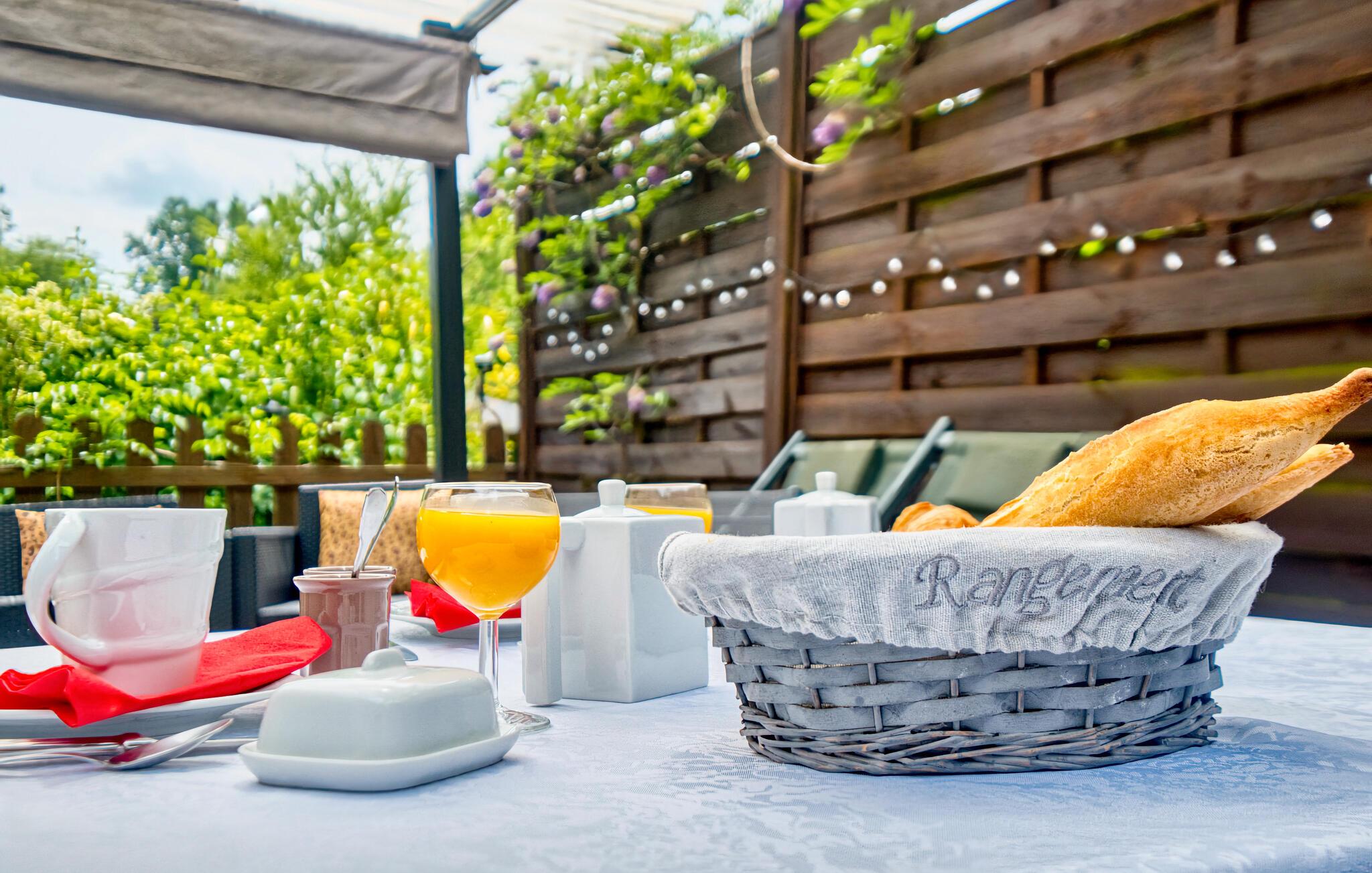 Server en lækker morgenmad på terrassen, snup en frisk dukkert i den skønne fælles pool og nyd solen på liggestolen.