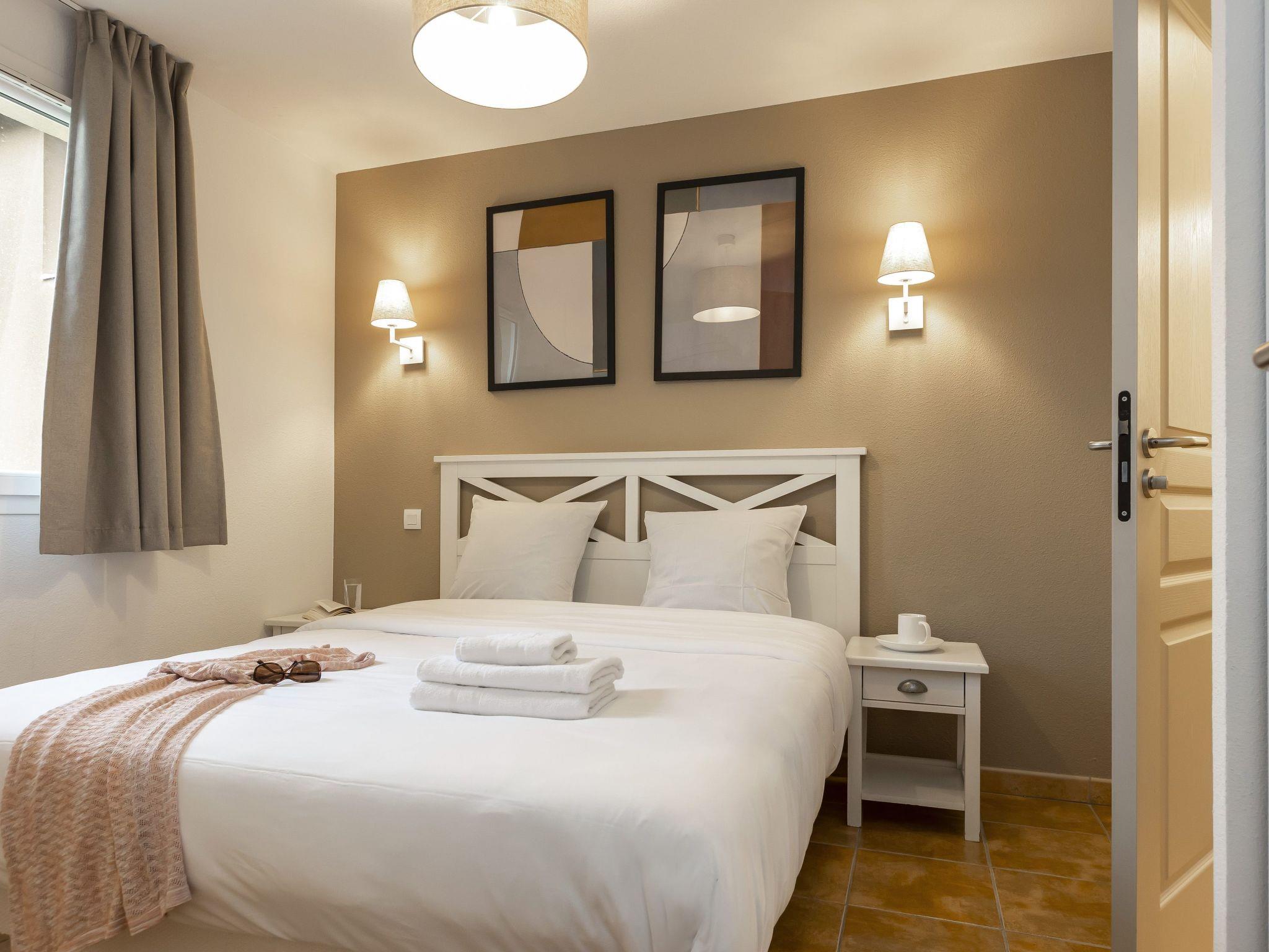 "Odalys Référence Les Côteaux de Sarlat", 3-room terraced house 43 m2 on 2 levels. Bright, cosy furnishings: living/sleeping room with 1 sofabed, 1 pull-out bed, dining table and satellite TV. Exit to the terrace. Kitchenette (dishwasher, 4 ceramic glass hob hotplates, kettle, microwave, electric coffee machine). Upper floor: 1 room with 1 french bed. 1 room with 2 beds. Bathroom, sep. WC. Electric heating. Parquet floors. Terrace. Terrace furniture. Facilities: children's high chair, baby cot. Internet (WiFi, free). Please note: non-smoking house. Maximum 1 pet/ dog allowed. Smoke alarm.