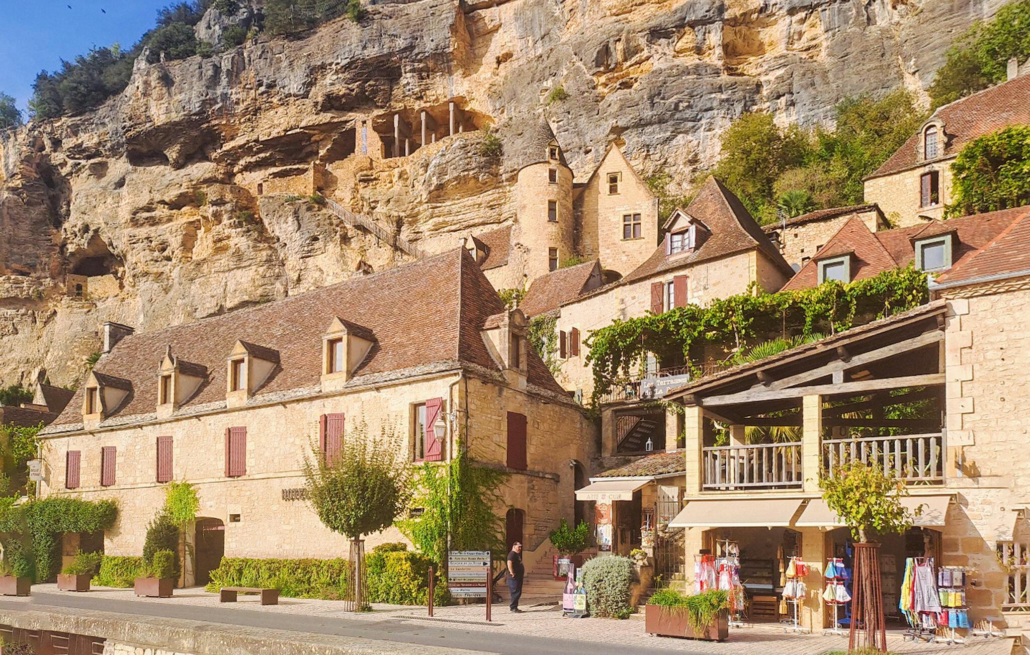 Spadser langs Dordogne, besøg de Hængende Haver i Limeuil, og oplev forhistoriske huler og gamle klostre. Tag til kunst- og kulturbyer som Sarlat eller Périgueux, og smag regionale specialiteter såsom Karl Johan-svampe, foie gras, trøfler og vin fra Bergerac på de farverige markeder. Udforsk den smukke region på cykel, på en kanotur eller på en rideudflugt.