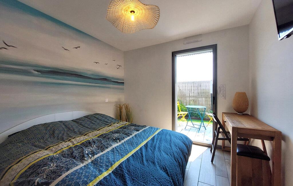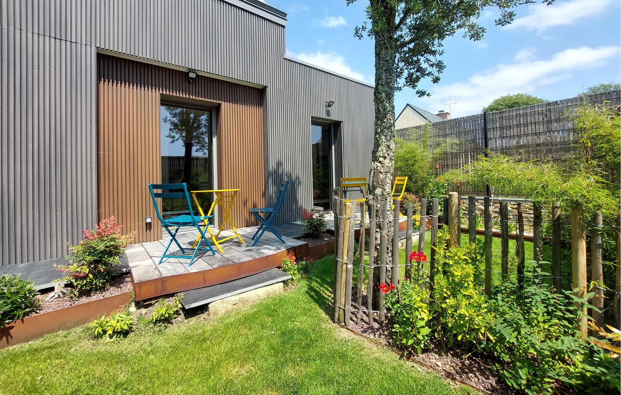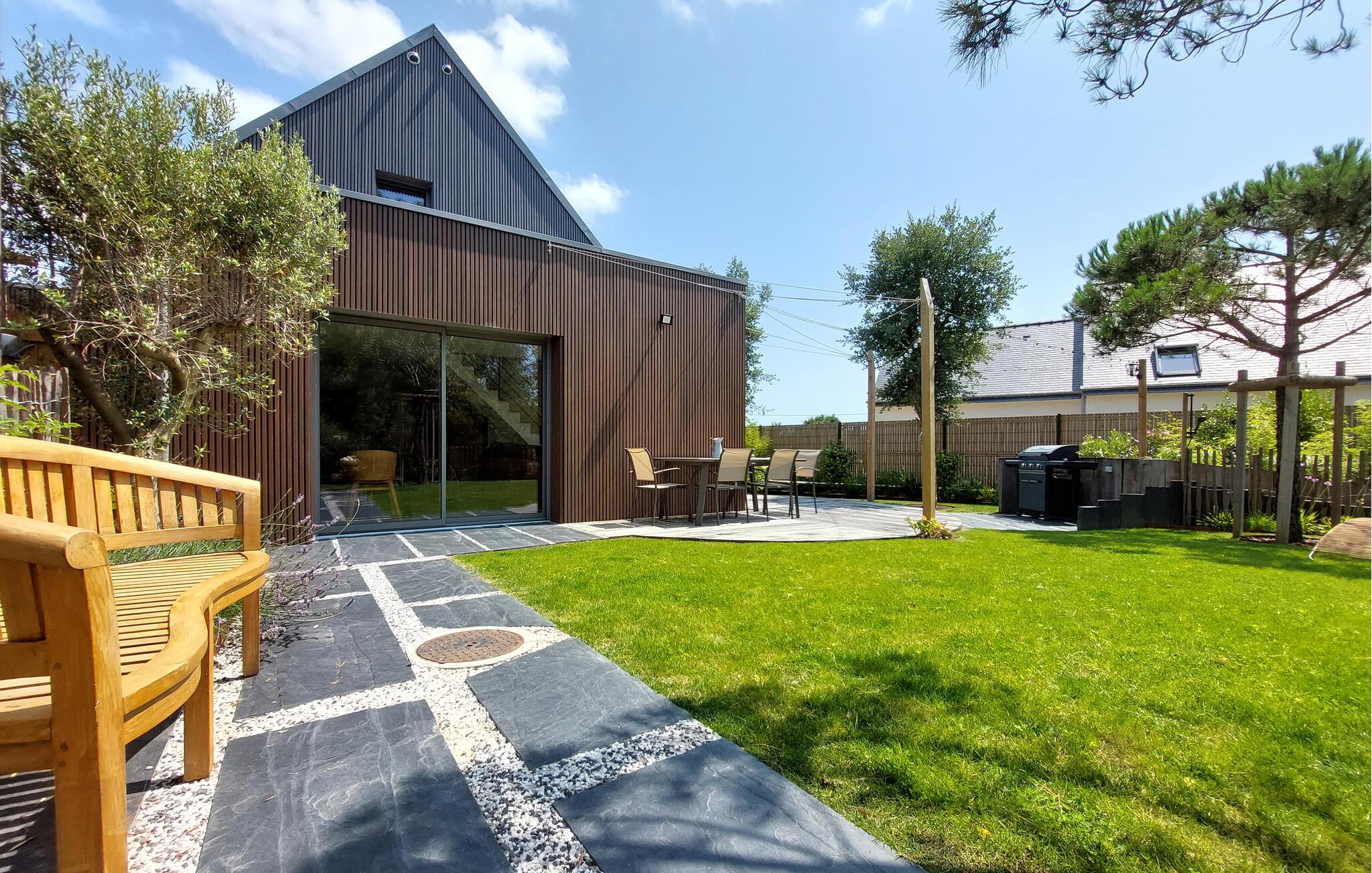 Dette moderne, fuldt udstyrede feriehus i Sarzeau tilbyder jer en uforlignelig atmosfære af afslapning. Allerede ved indgangen mærker I den højkvalitets indretning – stilfuld arkitektur, udsøgt design og elegante møbler skaber et eksklusivt miljø for jer. Et særligt højdepunkt er den åbne balkon, som giver rummet et luftigt og rummeligt præg. Store vinduer fylder rummene med lys og åbner op til udsigten over den blomstrende, smukt anlagte have. Her kan I nyde absolut ro og afslapning – et perfekt tilflugtssted, kun få minutters gang fra stranden og havnen. Saml jer på terrassen og nyd solen samt fælles måltider fra grillen.