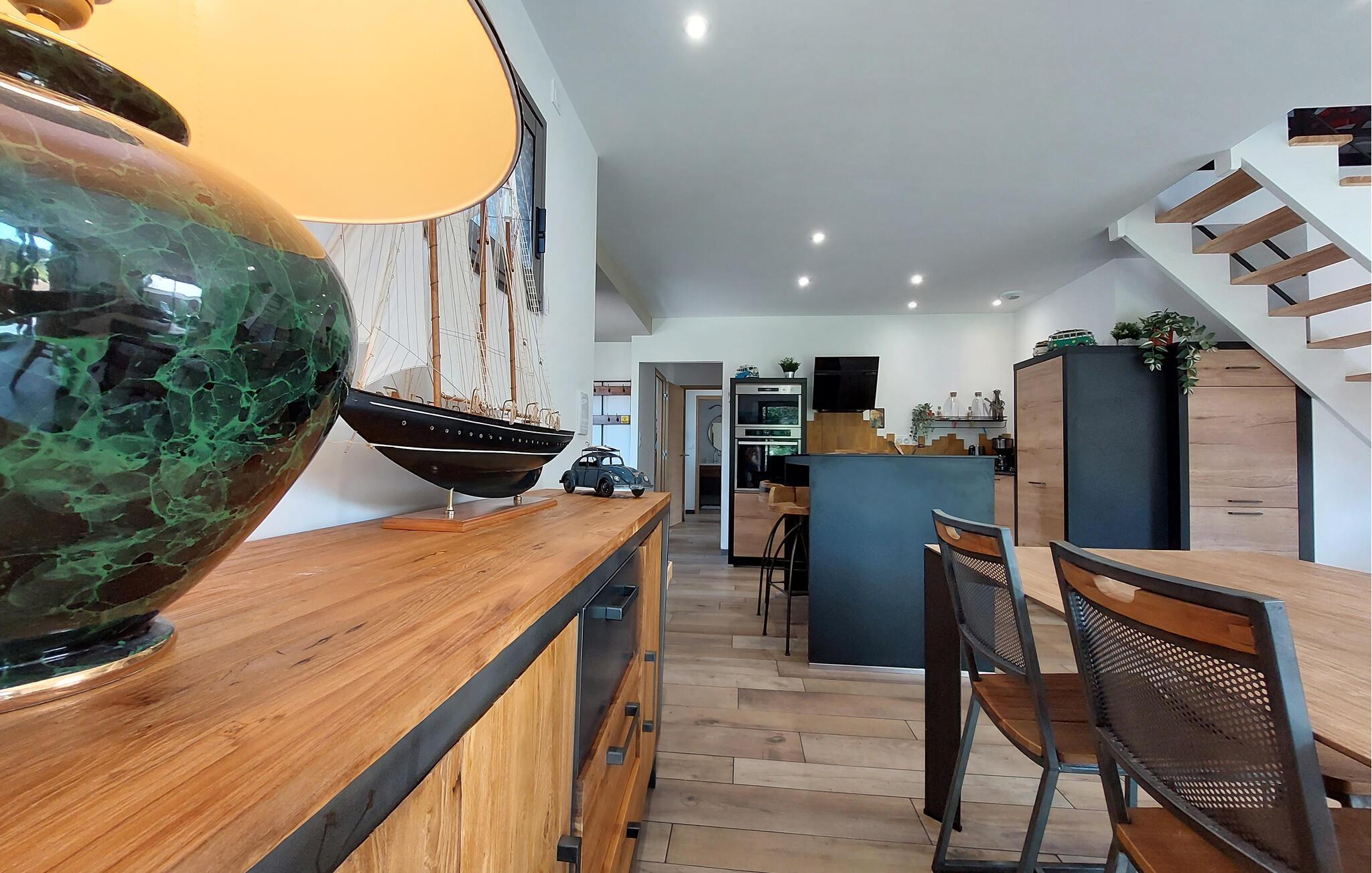 Nyd jeres ferie i dette moderne og smagfulde feriehus med have.