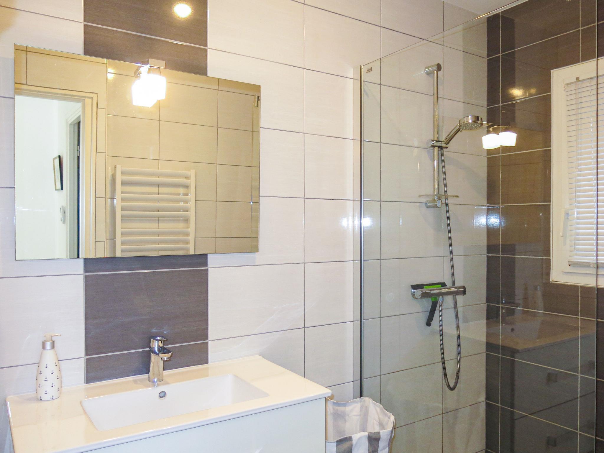 "Les Embruns", 5-room house 100 m2 on 2 levels. Object suitable for 7 adults. Beautiful furnishings: living/dining room with TV and international TV channels. Exit to the terrace. 1 room with 1 french bed (160 cm, length 200 cm), shower/WC. 1 room with 1 french bed (140 cm, length 190 cm). Open kitchen (oven, dishwasher, 3 induction hot plates, toaster, kettle, microwave, freezer, electric coffee machine). Shower, sep. WC. Upper floor: 1 room with sloping ceilings with 2 beds (80 cm, length 200 cm). 1 room with sloping ceilings with 1 french bed (140 cm, length 190 cm). Sep. WC. Gas heating. Terrace. Terrace furniture, deck chairs (4). Facilities: washing machine, dryer, baby cot for up to 2 year olds. Internet (WiFi, free). Please note: smoke alarm. Bed layout is flexible. There are more sleeping options available than the maximum number of people allowed which may, however, not be exceeded. 562400004997S