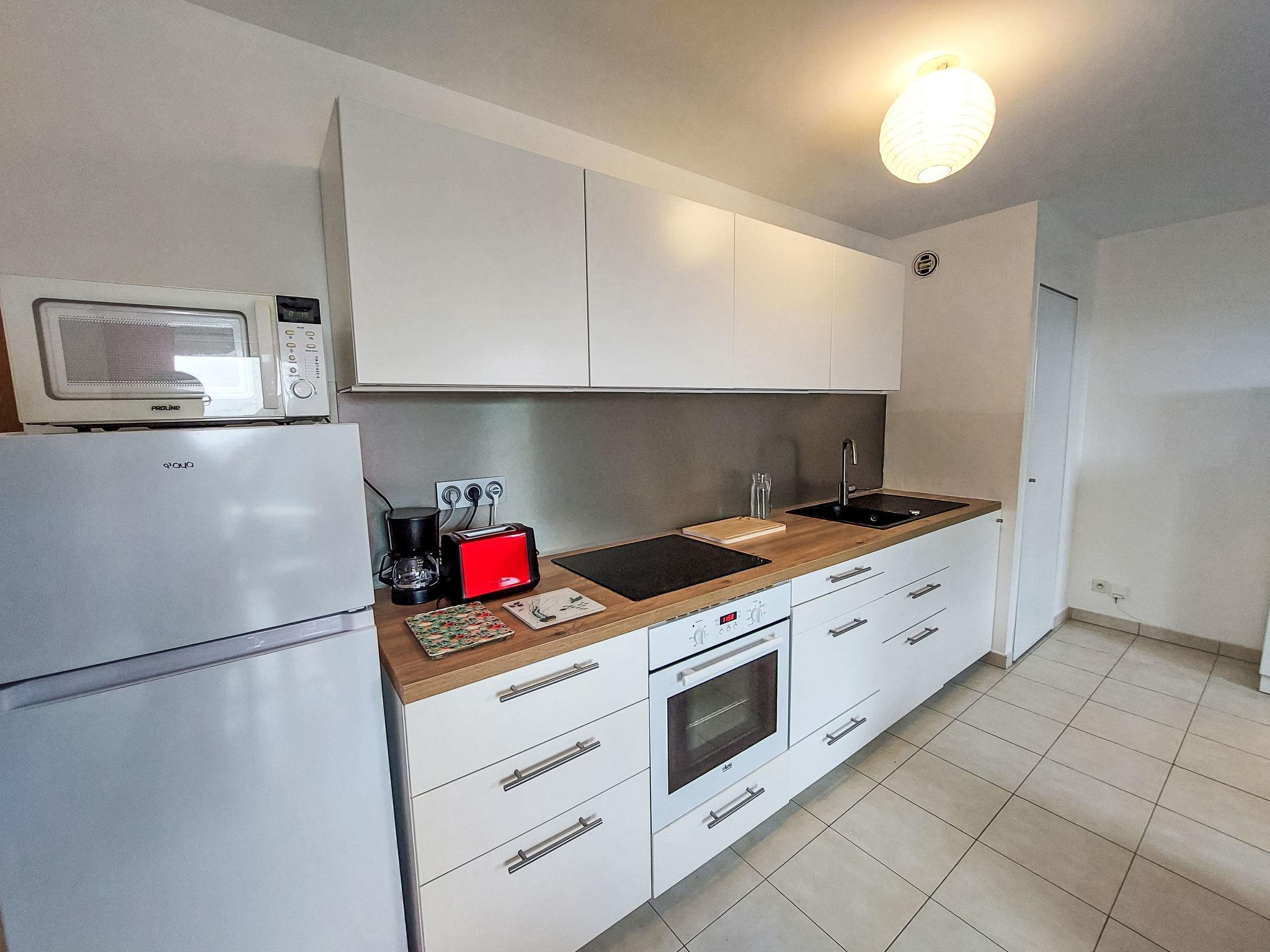 3-room apartment 51 m2 on 1st floor. Very beautiful furnishings: living room with TV (flat screen). Exit to the balcony. 1 room with sloping ceilings with 1 french bed (140 cm, length 190 cm). 1 room with sloping ceilings with 2 beds (90 cm, length 190 cm). Exit to the balcony. Open kitchen (oven, dishwasher, 3 ceramic glass hob hotplates, toaster, microwave, freezer, electric coffee machine). Bathroom, sep. WC. Electric heating. Balcony 8 m2. Balcony furniture. Facilities: washing machine, hair dryer. Internet (WiFi, free). Parking space n 34. Please note: non-smokers only. Smoke alarm. Note: The two single beds (90 cm) can be joined to form a large 180 cm bed, thus offering a modular configuration in the second bedroom. 562400009374M