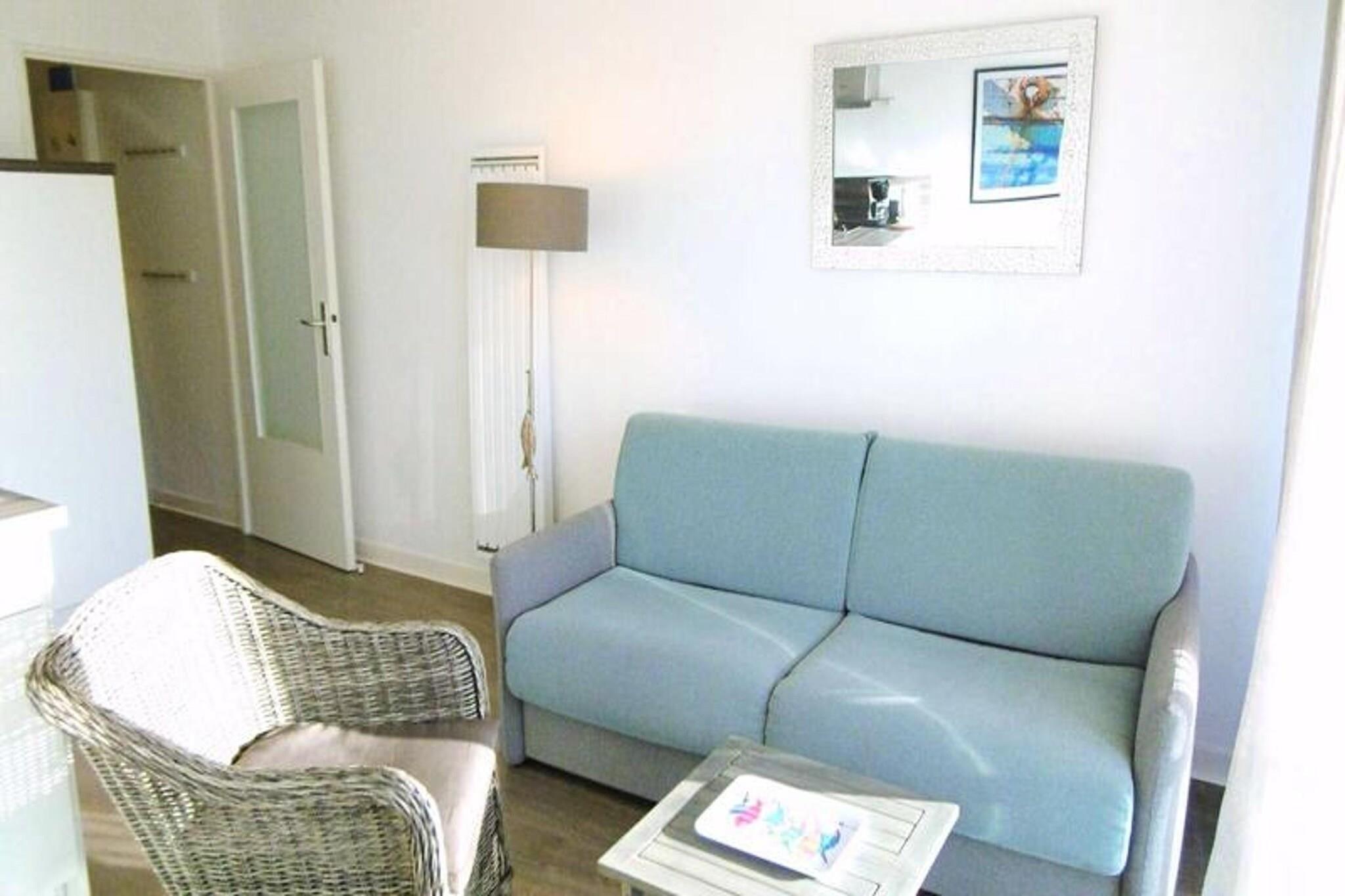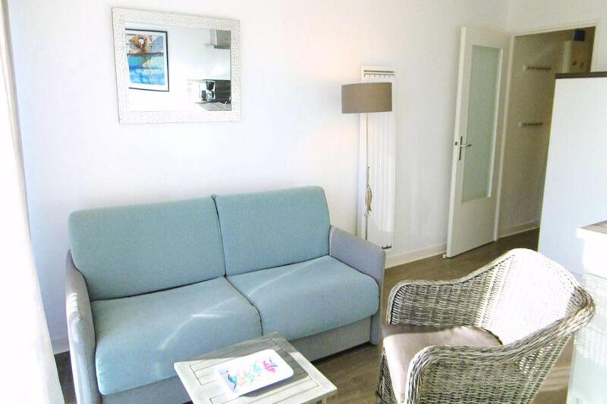This charming 30 m² studio is located on the first floor of a well-maintained building, offering a cozy retreat for up to 4 guests. The apartment features a comfortable living area with a rapido sofa bed, along with a cabin area with bunk beds. Guests can enjoy the modern design and convenience of a fully equipped kitchen, making this studio a great option for families or small groups. Pets are not allowed, ensuring a peaceful environment for all guests. The studio is ideal for those looking for a compact yet comfortable stay. Situated just moments from the beach, this holiday home offers easy access to coastal activities and the stunning views of the surrounding area. A variety of local cafes, restaurants, and shops are nearby, allowing guests to enjoy fresh seafood, local specialties, and leisurely shopping. The area is perfect for beach lovers, offering opportunities for relaxation by the sea and exploration of the natural beauty of the region. The studio is equipped with a well-appointed kitchen, including a refrigerator, microwave, oven, ceramic hob, and dishwasher, providing everything you need to prepare meals during your stay. The bathroom features a shower and toilet, and the apartment comes with a balcony offering a lovely sea view. Additional amenities include a numbered parking space and a small common room, adding to the convenience and comfort of your stay.