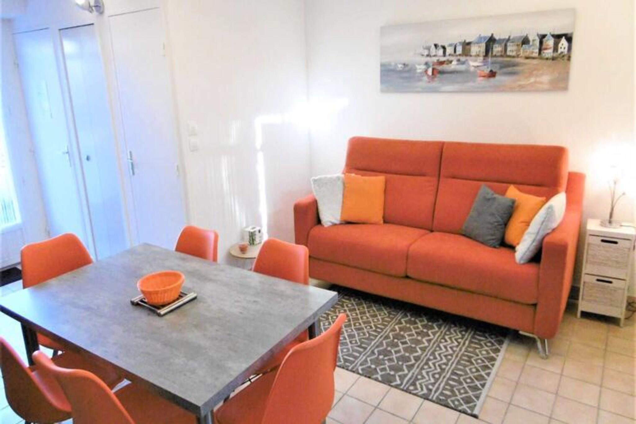 This renovated 43 m² terraced house offers a comfortable stay for up to 6 people with its well-appointed rooms. The ground floor features a spacious living room with a sofa bed, a fully equipped kitchen, and a modern bathroom with a shower. Upstairs, you’ll find a double bedroom and a second bedroom with two single beds, which can be converted into a double. The property is not pet-friendly, but it provides all the amenities for a relaxing stay. Bed and bathroom linen can be rented for added convenience, and cleaning services are available upon request. Located in a tranquil area, this house is just a short distance from the beach, making it perfect for coastal activities. The surrounding area offers easy access to local shops, cafés, and restaurants, where you can sample regional delicacies and explore the local culture. Visitors can enjoy the nearby markets and beaches, making it an ideal base for outdoor adventures and relaxation. The house features a well-equipped kitchen with modern appliances, including an induction hob, fridge, washing machine, and multi-function oven, allowing guests to prepare meals easily. The enclosed garden with a terrace is perfect for outdoor dining, equipped with garden furniture, deckchairs, and an electric plancha. Parking is available in front of the house, and a garage is provided for bicycle storage.