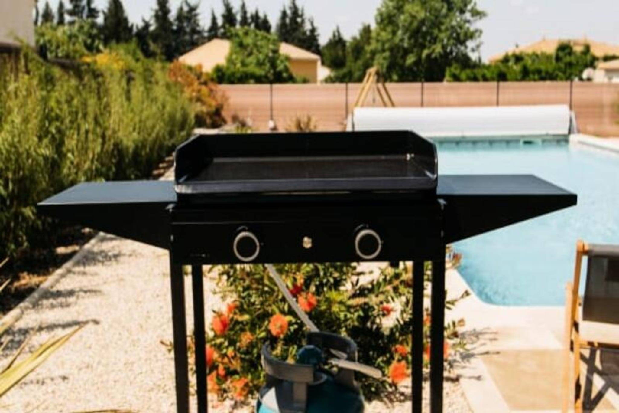Dette rummelige feriehus byder p? komfort og stil, perfekt til familie- eller gruppeophold. Med fire store sovev?relser kan ejendommen rumme op til otte g?ster. Villaen kan prale af senget?j af h?j kvalitet for at sikre afslappende n?tter. K?ledyr er velkomne, hvilket g?r det til et ideelt valg for k?ledyrsejere. Ejendommen har ogs? en privat pool, der tilbyder en forfriskende flugt under den provencalske sol, og en velholdt have til udend?rs afslapning. For yngre g?ster er villaen udstyret med b?rnevenlige faciliteter, der sikrer, at alle f?r et behageligt ophold. Beliggende mellem Fontaine-de-Vaucluse og Isle-sur-la-Sorgue, er denne villa godt placeret til at udforske nogle af Provences mest charmerende steder. De n?rliggende landsbyer Gordes, Roussillon og M?nerbes er rige med h?ndv?rkerbutikker, gallerier og lokale spisesteder. Naturelskere kan nyde vandre- og cykelture gennem regionens fantastiske landskaber. Fontaine-de-Vaucluse, ber?mt for sin imponerende kilde, og kanalerne p? Isle-sur-la-Sorgue, kendt som "Provences Venedig", er kun en kort k?retur v?k, og tilbyder unikke kulturelle og naturlige attraktioner. Indenfor byder villaen p? et veludstyret k?kken, perfekt til at tilberede m?ltider til at nyde i spiseomr?det eller p? den udend?rs terrasse med en grill. De to moderne badev?relser giver komfort, mens ejendommens parkeringsomr?de sikrer nem adgang. Villaen er fuldt udstyret til afslapning og familiesammenkomster, hvilket g?r det til det perfekte sted at slappe af og nyde Provences sk?nhed.