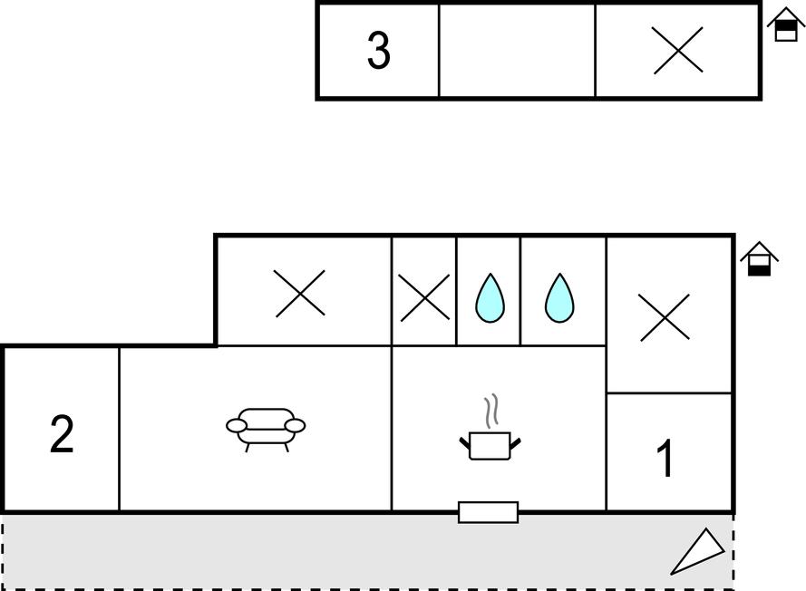 Soveværelse 20m2 (nr. 3) - 1 Soveplads. (Enkeltseng(e)). 2 Sovepladser. (Dobbeltseng(e)).