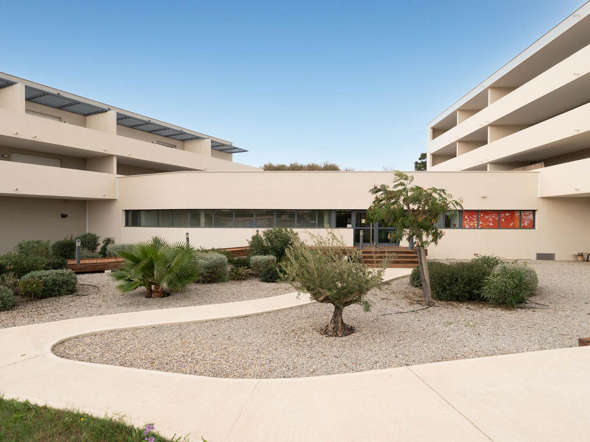 Sérignan: Apartment block. For shared use: swimming pool heated (seasonal availability: 20.Apr. - 01.Nov.). Supermarket 2 km, restaurant 150 m, sandy beach 450 m.