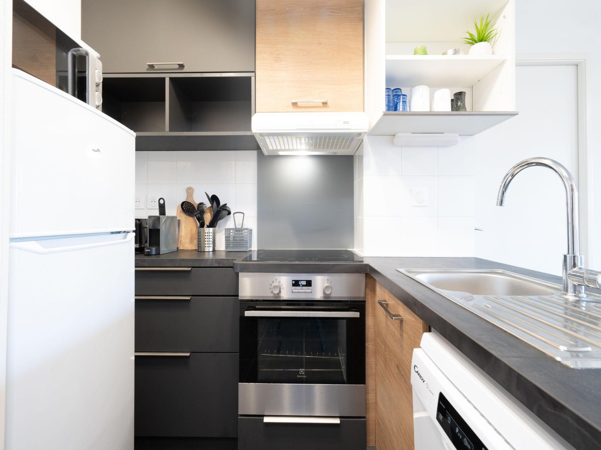 "La Dune", 4-room villa 60 m2, on the ground floor. Object suitable for 9 adults. 1 room with 1 french bed and TV. 1 room with 1 double bed. 1 room with 1 x 2 bunk beds. Living room with 1 sofabed and 1 pull-out bed. Open kitchen (4 hot plates, oven, dishwasher, toaster, kettle, microwave, freezer, electric coffee machine). 2 showers/WC. Terrace 20 m2. Barbecue. View of the garden. Facilities: iron. Parking (1 car). Please note: non-smokers only. Offer by a commercial proprietor according to Art. 155, IV, CGI
