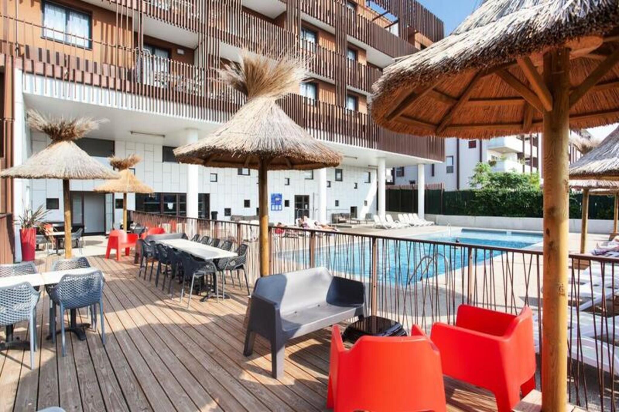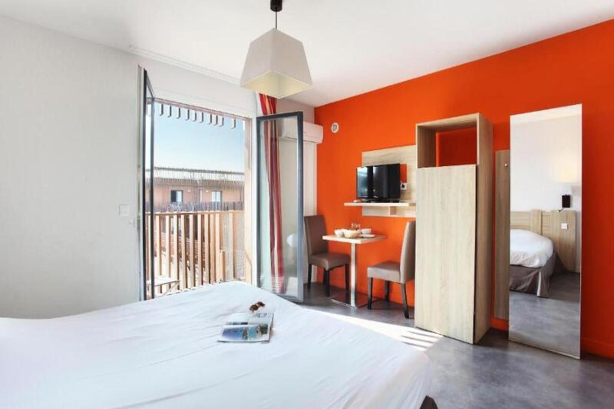 Beliggende i Sète, på bredden af ??Etang de Thau, 30 km fra Montpellier, inviterer Résidence Odalys Terra Gaia dig til et ophold ved Middelhavets kyster i denne typiske landsby ved Languedoc-kysten, hvor fyrreskove og fine sandstrande sameksisterer. og fiskerbåde. Lad dig charmere af dens fiskeri- og marinahavn, dens kanal og dens lokale traditioner, dens varme og populære atmosfære, som vil appellere til unge og gamle. Beliggende i det nye Salins-distrikt kun 300 m fra stranden, vil du nyde godt af dens ideelle beliggenhed og dens nærhed til byens centrum samt de mange tjenester, der er tilgængelige for dig i boligen. Du finder der især en 80m² udendørs swimmingpool med soppebassin og solarium og et airconditioneret wellness-område med hammam og fitness. Børn kan mødes i legeområdet, der er dedikeret til dem. En 116 m² stor morgenmadssal med aircondition venter på dig hver morgen! Studio 2 personer. Altan. Stue med 2 senge. Udstyret tekøkken. Badeværelse og toilet. Bemærk venligst: mulighed for indkvartering tilgængelig for bevægelseshæmmede. Wifi adgang - gratis i lejlighederne Kæledyr tilladt - EURO70/kæledyr/ophold (7 nætter og mere) - EURO15/nat (mindre end 7 nætter) Depositum (ekstra) - 300 Babysæt - gratis ved forudgående reservation i receptionen (betales om vinteren: EURO9/dag, EURO35/ophold) Sengetøj - inkluderet Håndklæder - (frottéhåndklæde + badelagner): 9 EURO/skift/seng Slutrengøring - inkluderet eksklusive køkken Parkering - udækket, gratis (1 plads pr. lejlighed) Swimmingpool - opvarmet udendørs swimmingpool med åbent soppebassin (åben fra april til september) Sauna - 9€/person/session - 40€ (5 adgangspakke) Turistskat (ekstra gebyr) - Betales på stedet i henhold til gældende takst Fjernsyn - inkluderet