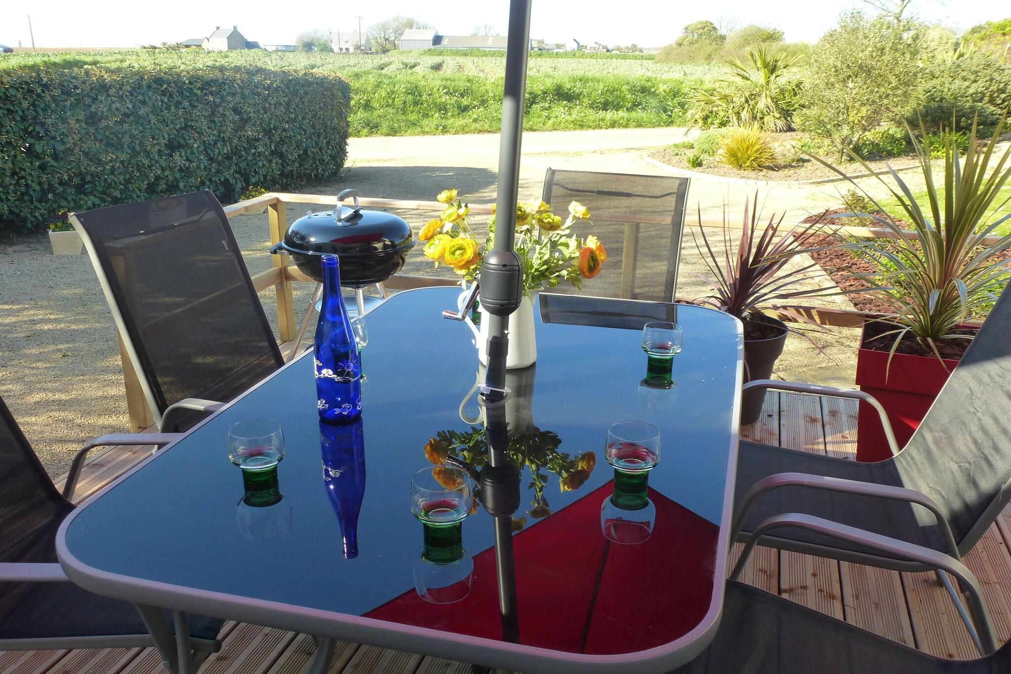 Den typiske bretonske ejendom er beliggende midt i grønne artiskokmarker og landlige omgivelser. Dit sommerhus er indrettet med en hyggelig blanding af rustikke og moderne møbler og har eget haveområde. Det interne spabad inviterer dig til at slappe af. Afslapning i det sprudlende vand, også når vejret ikke samarbejder. I det veludstyrede køkken kan du tilberede økologiske grøntsager købt direkte fra husejeren eller lækker fisk og skaldyr fra markedet. Lad de varierede dage, fyldt med vandsport og gåture langs den maleriske kyst, ende i den hyggelige pejsestue med et spil billard. De første strande kan nås på få minutter på cykel eller i bil. Detaljer: WiFi Aktiviteter i nærheden: Dalen ved floden Guillec (2,5 km) er omgivet af smukke vandrestier, hvor du kan se et stort antal trækfugle. Den lille havn Moguériec (5,5 km) emmer af autentisk havneromantik i en afslappet atmosfære. Romerne gjorde allerede brug af denne havn og den dag i dag går fiskerbåde ud for at fiske. Fra juni til september er der krydsninger fra havnen til øen Batz. I nærheden ligger det imponerende slot Kérouzéré fra det 14. århundrede med sin smukke park. På få minutter i bil kan du også nå St. Pol-de-Léon, artiskokmetropolen med en rig historie, eller Roscoff, den historiske havneby, der tilbyder en bred vifte af fritidsaktiviteter ud over fiskeri- og sportshavnen , et thalasso-center og et kasino mobilitet :. Ikke egnet til personer med nedsat mobilitet