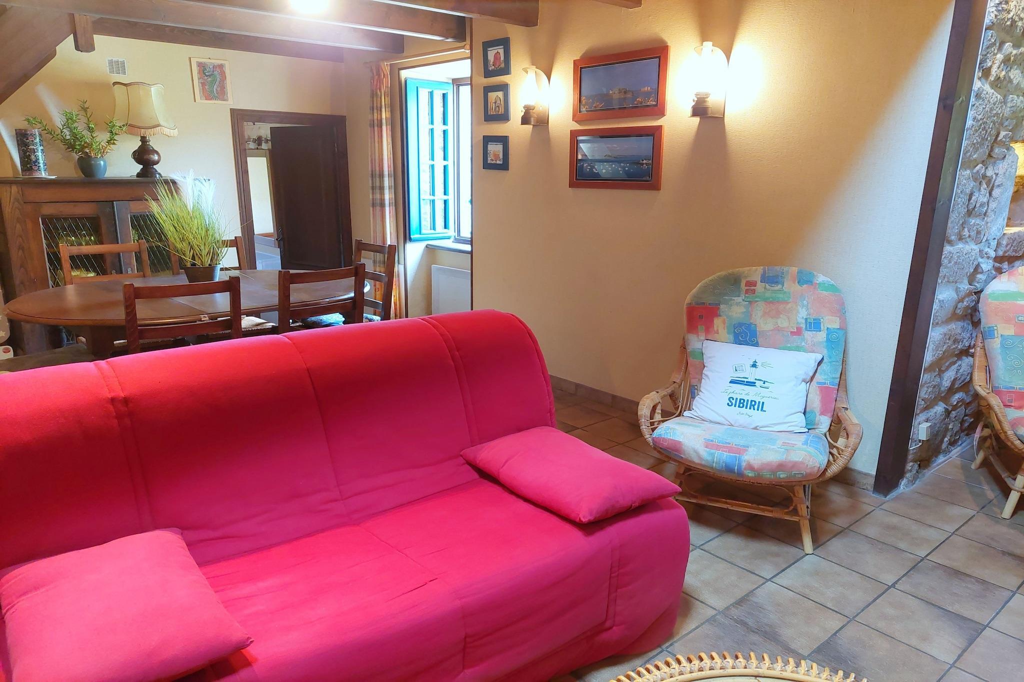 Kun 400 m fra havet. Typisk stenhus i et roligt område, lige uden for landsbyen Sibiril på en 450 kvm stor, lukket ejendom. Den åbne natursten med træpaneler og åbent træbjælkeloft samt pejsen understreger husets rustikke karakter. På den nuværende veranda indtages morgenmad om morgenen. Der er et afsides sted til solbadning bag huset i en beskyttet beliggenhed. På få minutter kan du gå til den lille bugt Port Neuve med dens fine sandstrand. Om sommeren sejler en færge fra den lille havn Sibiril-Moguéric til blomsterøen Batz. Det milde klima i landbrugsregionen tillader intensiv dyrkning af grøntsager som artiskokker, blomkål, gulerødder og skalotteløg. Den nærliggende fiskerihavn Moguériec er hjemsted for en lille fiskerflåde, som hovedsageligt bringer hummer, hummer og friskfanget fisk, som auktioneres på stedet kunne. Slottet Kérouzéré, en gammel fæstning fra det 14. århundrede, vidner om tidligere tiders rigdom. I den nærliggende by Roscoff er der smukke gader med mange regionale specialiteter og gode restauranter.
