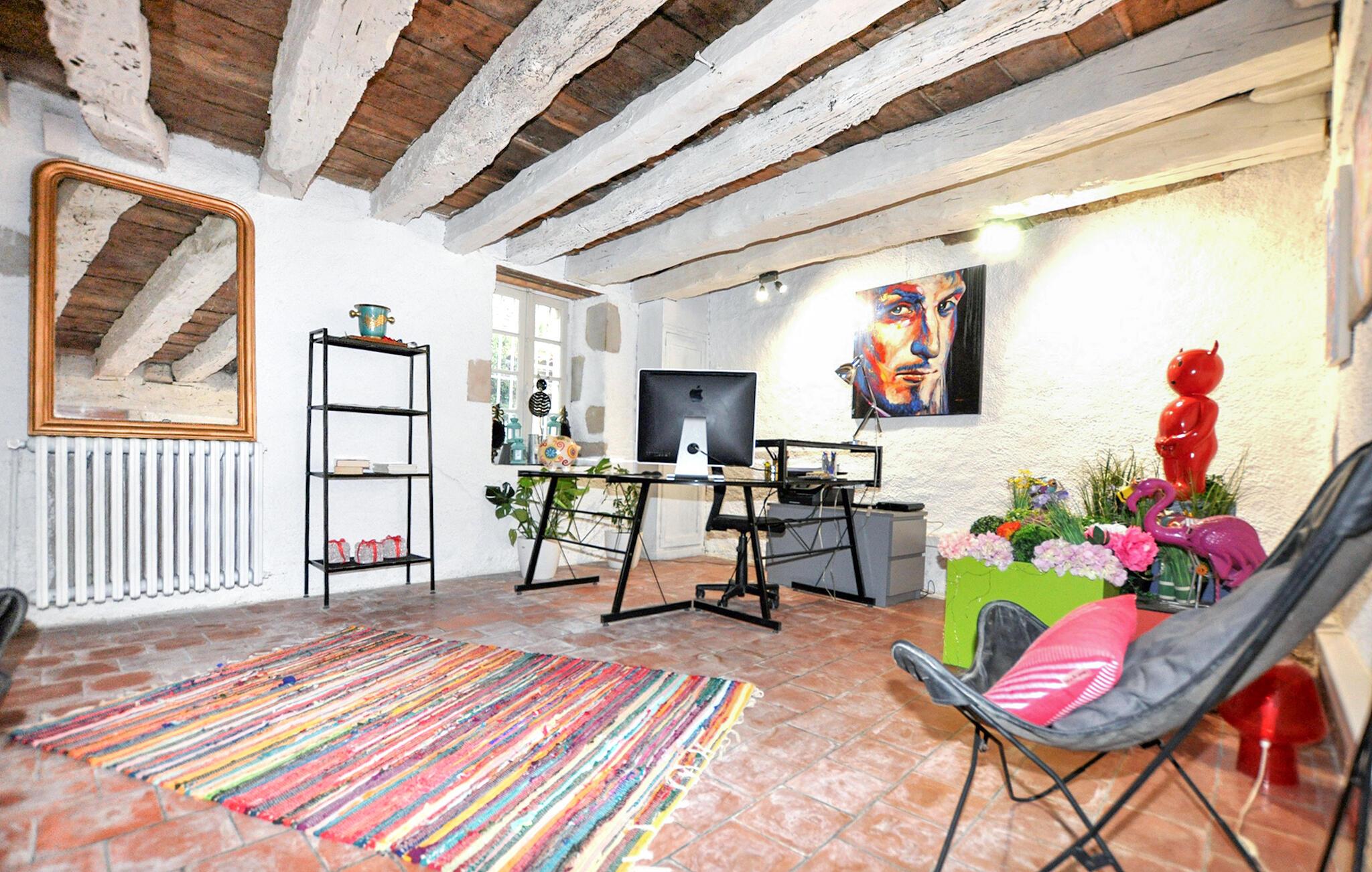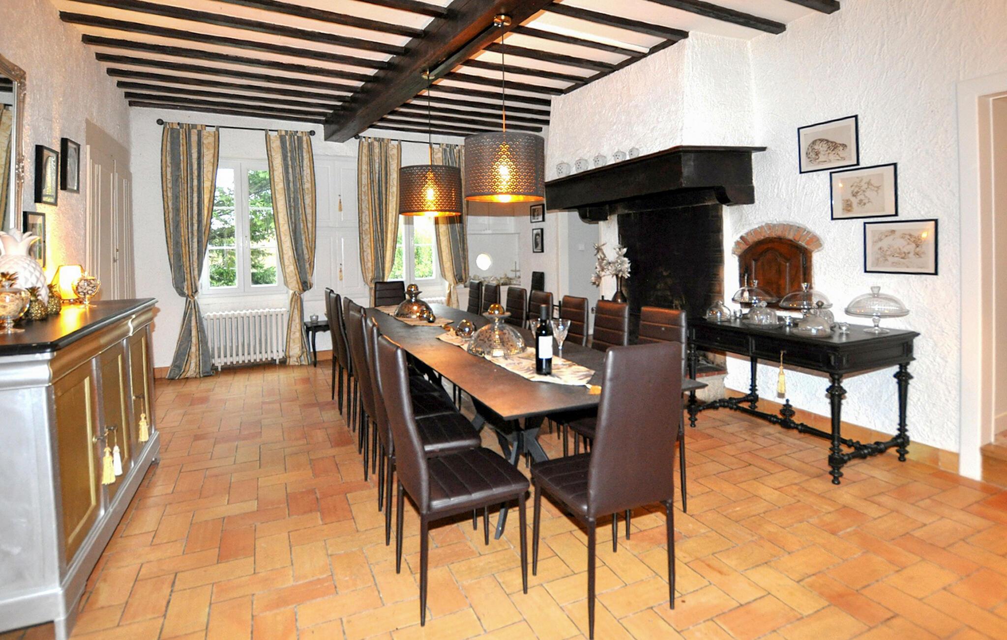 Bliv budt velkommen af ??den særlige atmosfære skabt af træbjælker og varme terrakottagulve. Sæt jer til rette i den store opholdsstue, der lægger op til hyggelige aftener med komfortable sofaer, pejs og charmerende indretning. Tilbring kvalitetstid sammen ved det lange spisebord i det åbne rum med imponerende pejs og masser af plads til socialt samvær. Brug det moderne, lyse køkken med det omfattende udstyr til at tilberede måltider sammen. Oplev aktivitetsrummet og spil bordtennis eller bordfodbold.