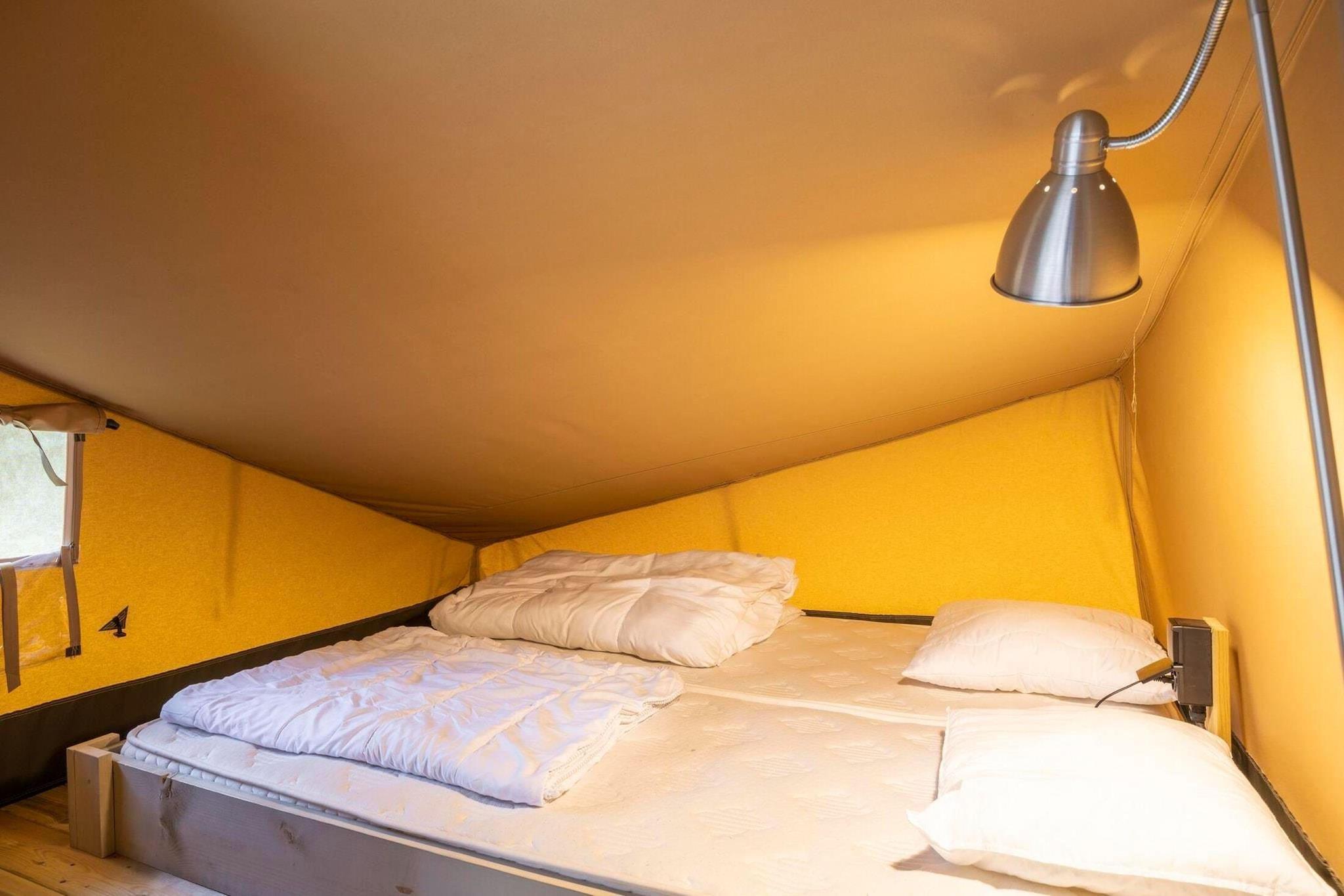Flugt til et rummeligt, fuldt udstyret glampingtelt beliggende i den fredfyldte Ardennerne. Dette moderne telt er ideelt for familier eller grupper og tilbyder et hyggeligt tilflugtssted omgivet af natur. Med tre soveværelser, herunder et master bedroom med dobbeltseng og to ekstra værelser med enkeltsenge og køjesenge, kan den rumme op til 8 personer. Dette telt er perfekt til en fredelig ferie, mens du nyder hjemmets bekvemmeligheder i hjertet af en familievenlig campingplads. Beliggende i Grand Est, det omkringliggende område byder på masser af aktiviteter at nyde året rundt. Udnyt vandre- og cykelstierne, der væver sig gennem skove og marker. Om sommeren kan du nyde den forfriskende udendørs swimmingpool, mens efteråret bringer spændingen ved svampejagt. Den nærliggende trætoppark og fitnesssti giver ekstra eventyr. Stedet har også en restaurant, reception, lille butik og uendelig naturskønhed, hvilket gør det til en perfekt base for at udforske Ardennerne. Glampingteltet har moderne faciliteter såsom tekøkken med køleskab, mikroovn, kaffemaskine og elkomfur. Et pillefyr sørger for varme på køligere dage, mens havemøbler med parasol indbyder til afslapning udendørs. Yderligere funktioner omfatter Wi-Fi, bruser med håndvask og gratis parkering til en bil. Kæledyr er velkomne, hvilket gør det til en fantastisk mulighed for kæledyrsejere.