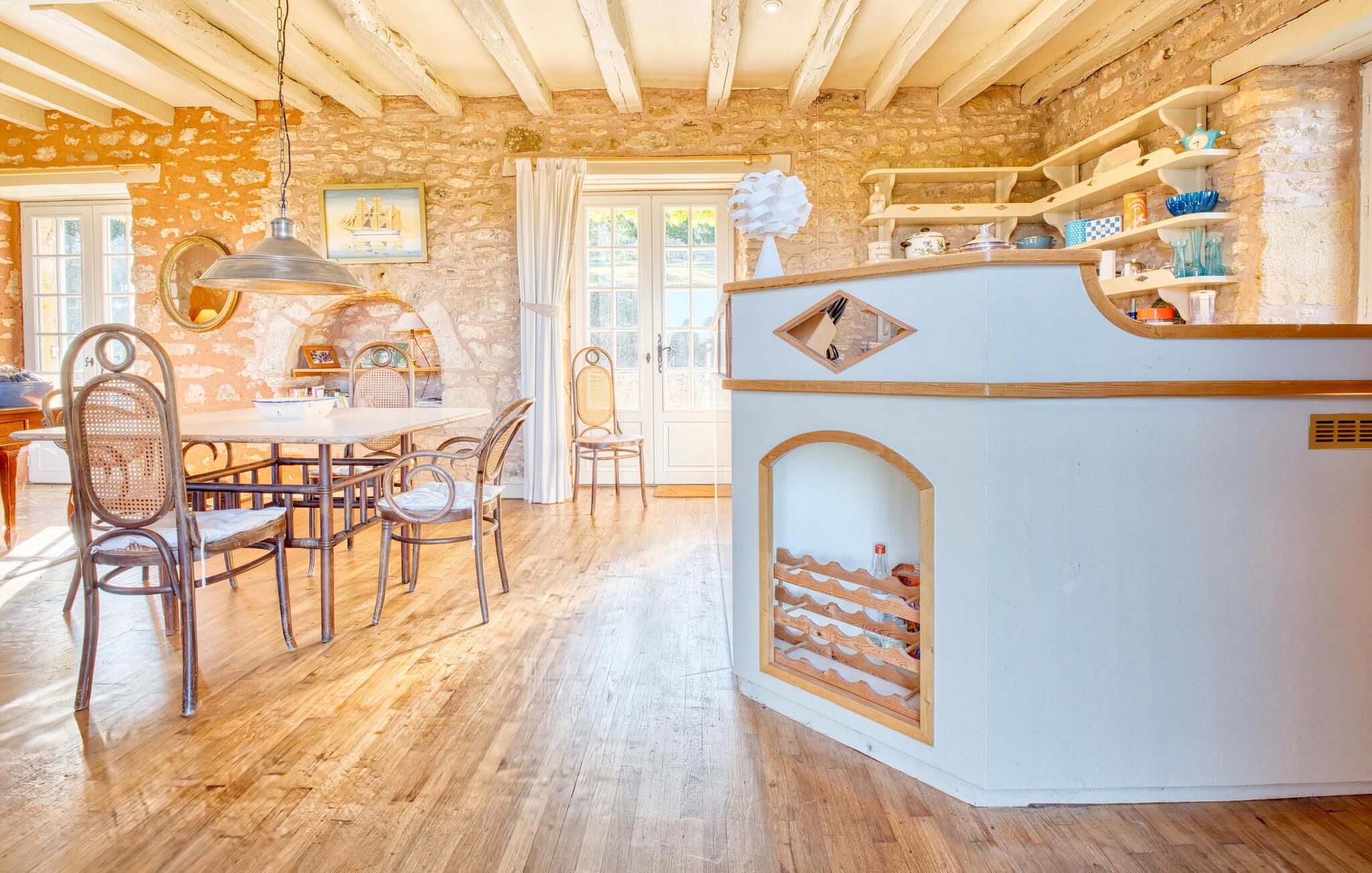 Dette velindrettede feriehus har en vellykket blanding af rustik charme og moderne komfort. Pisk lækre retter op i det fuldt udstyrede landkøkken og nyd dem i den indbydende spiseplads. På køligere aftener kan I tænde pejsen og snakke i den hyggelige stue til langt ud på natten.