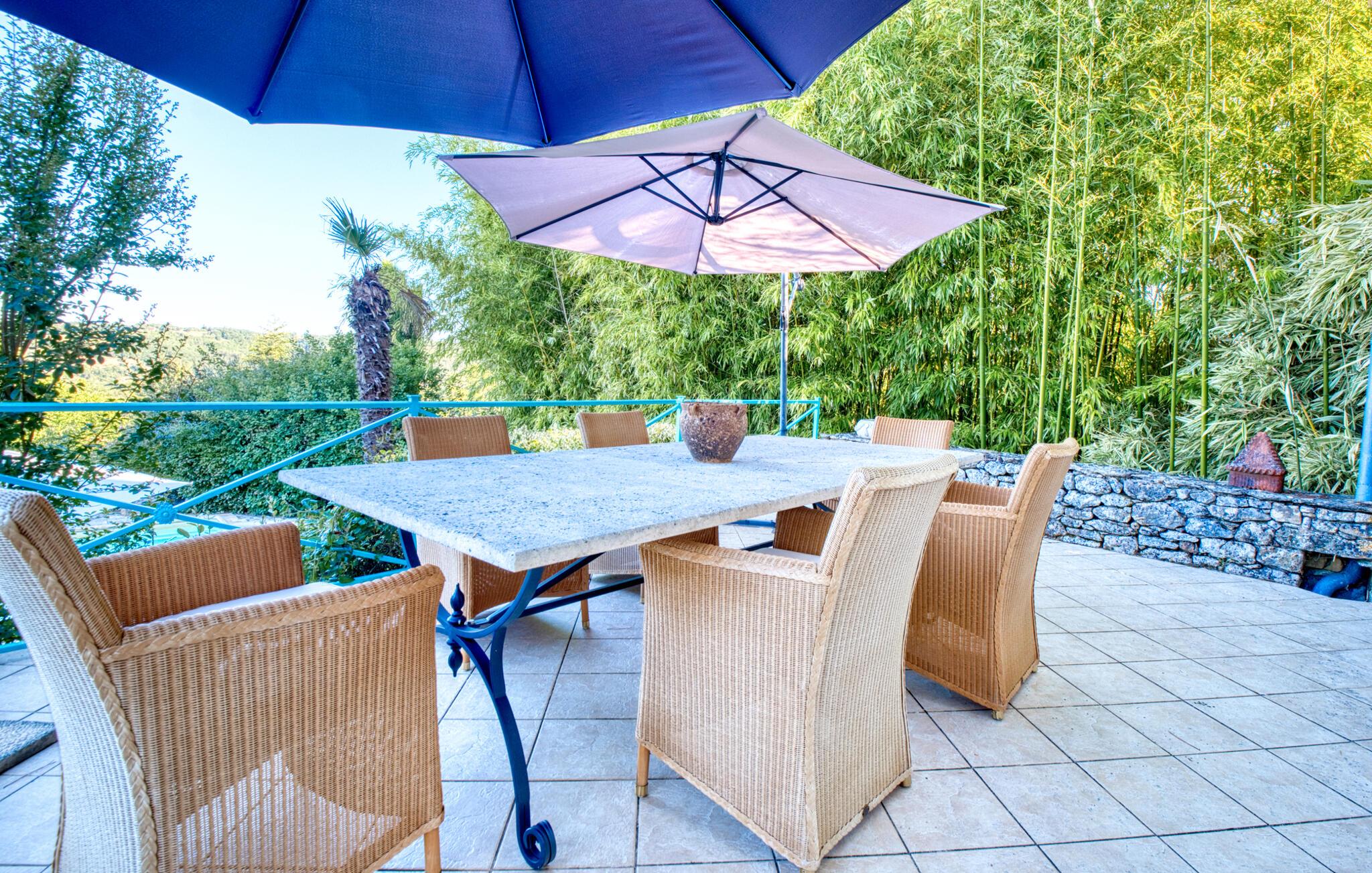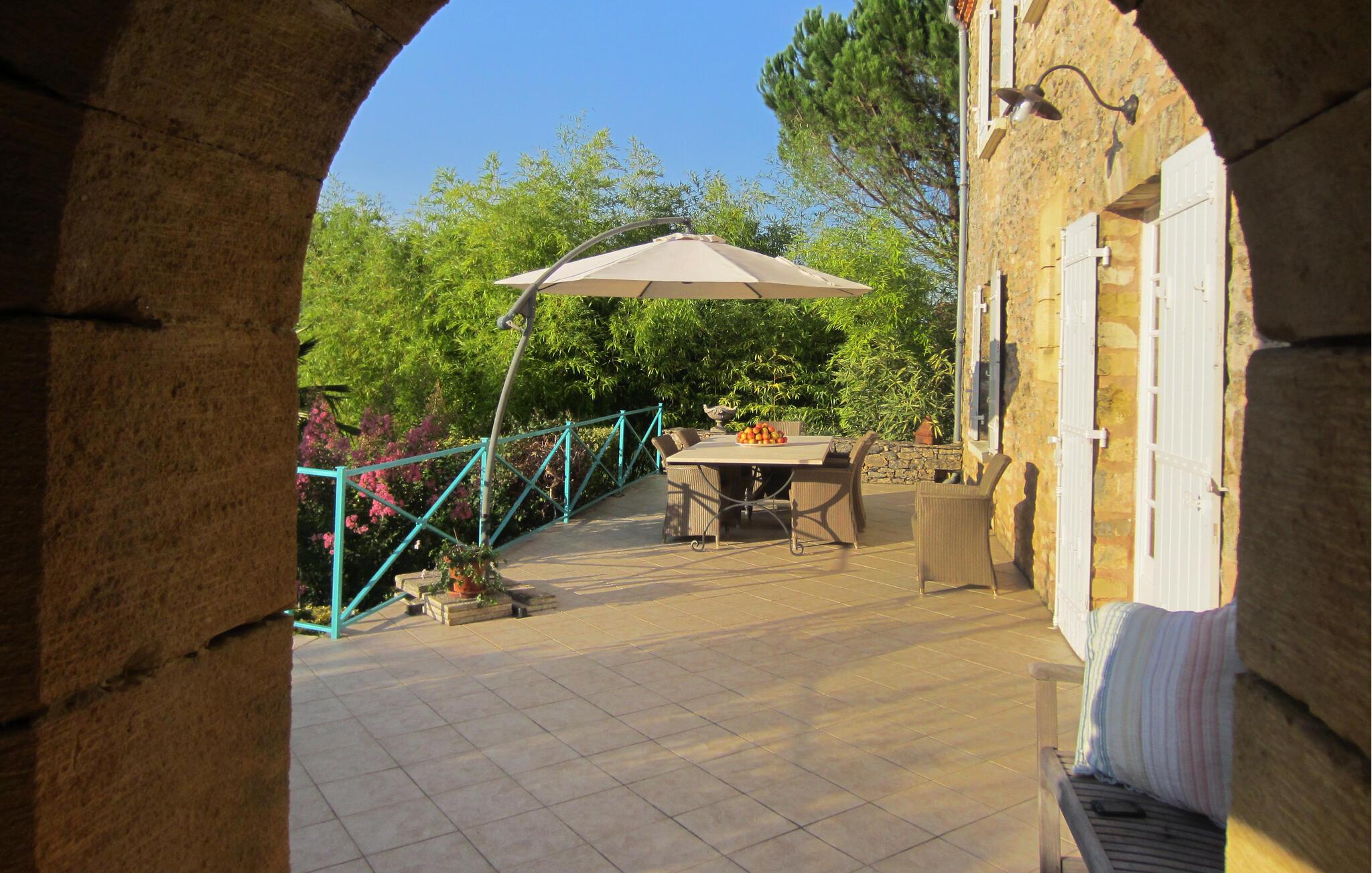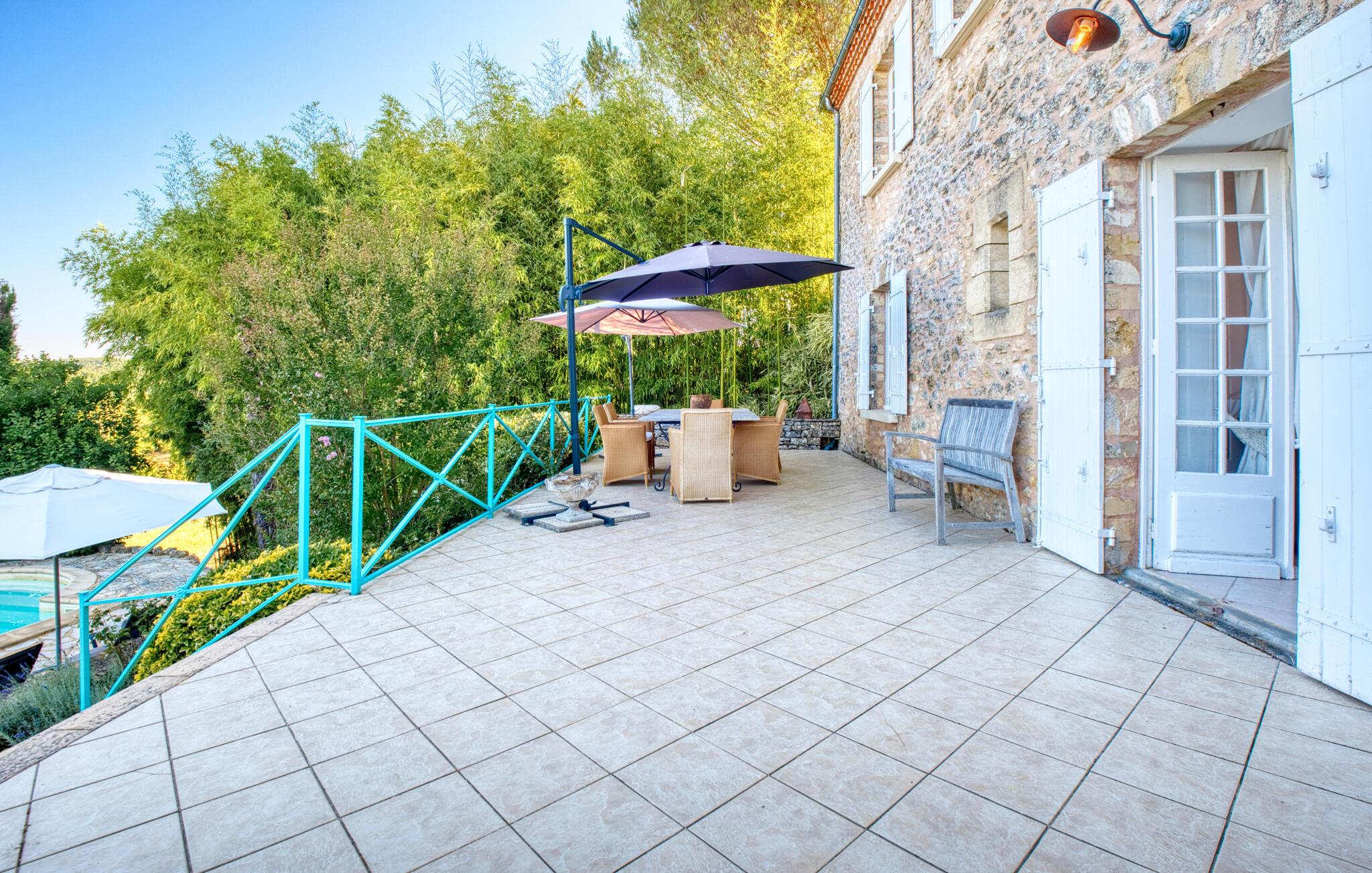 Fra den solrige terrasse har I en fantastisk udsigt over den grønne dal og haven. Begynd dagene med morgenmad udendørs, slap af på en liggestol eller hop i den smukke pool. Om aftenen inviterer grillpladsen til hyggestunder under stjernehimlen.