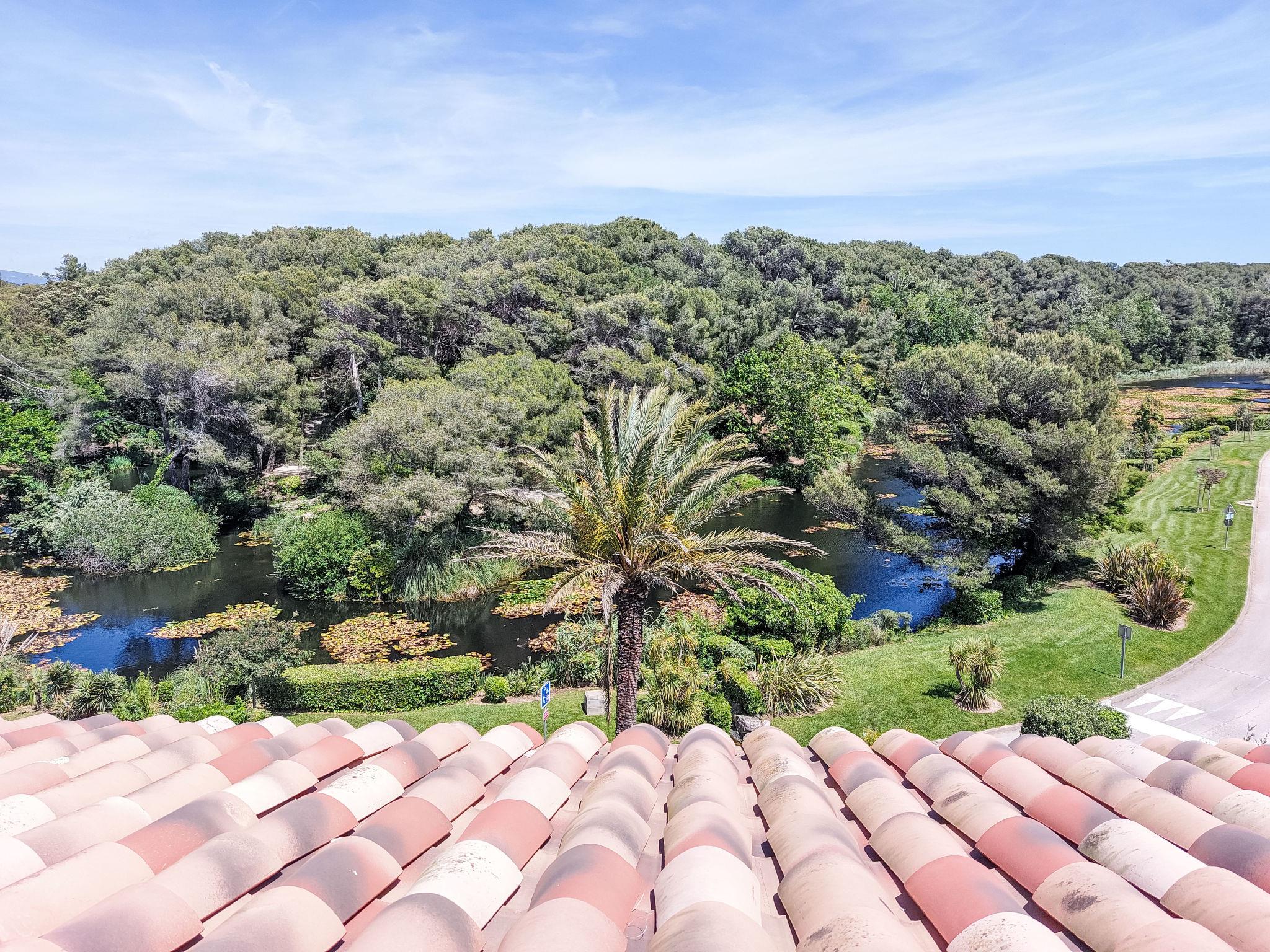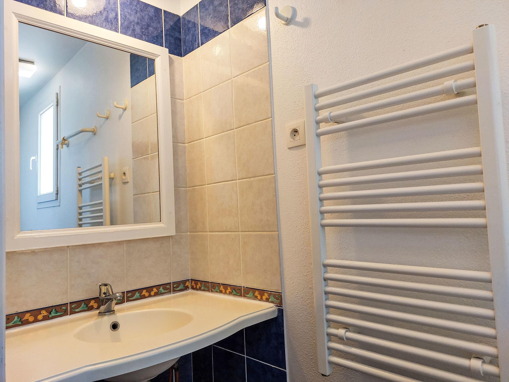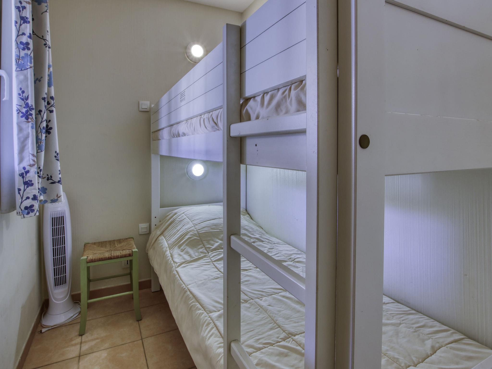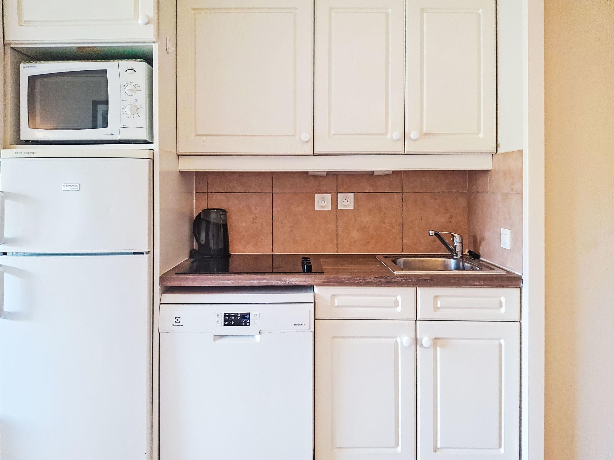 3-room maisonette 45 m2 on 3rd floor. Beautiful furnishings: living/dining room with 2 beds (80 cm, length 190 cm), TV (flat screen). Exit to the terrace. Sleeping alcove with 1 x 2 bunk beds (80 cm, length 190 cm). Kitchenette (dishwasher, 4 ceramic glass hob hotplates, microwave, freezer, electric coffee machine). Shower/WC. Electric heating. Upper floor: 1 room with 1 french bed (140 cm, length 190 cm), bath/WC. Exit to the terrace. Terrace 7 m2, roofed, east facing position. Terrace furniture. Beautiful view of the lake and the garden. Facilities: Internet (WiFi, extra). Parking space n 494 (Niveau 1) (roofed), height 190 cm, width 240 cm. Please note: maximum 1 pet/ dog allowed. TV only FR. Smoke alarm. Instead of an enclosed bedroom, some sleeping areas are located in an open-plan area (gallery, alcove, etc.).