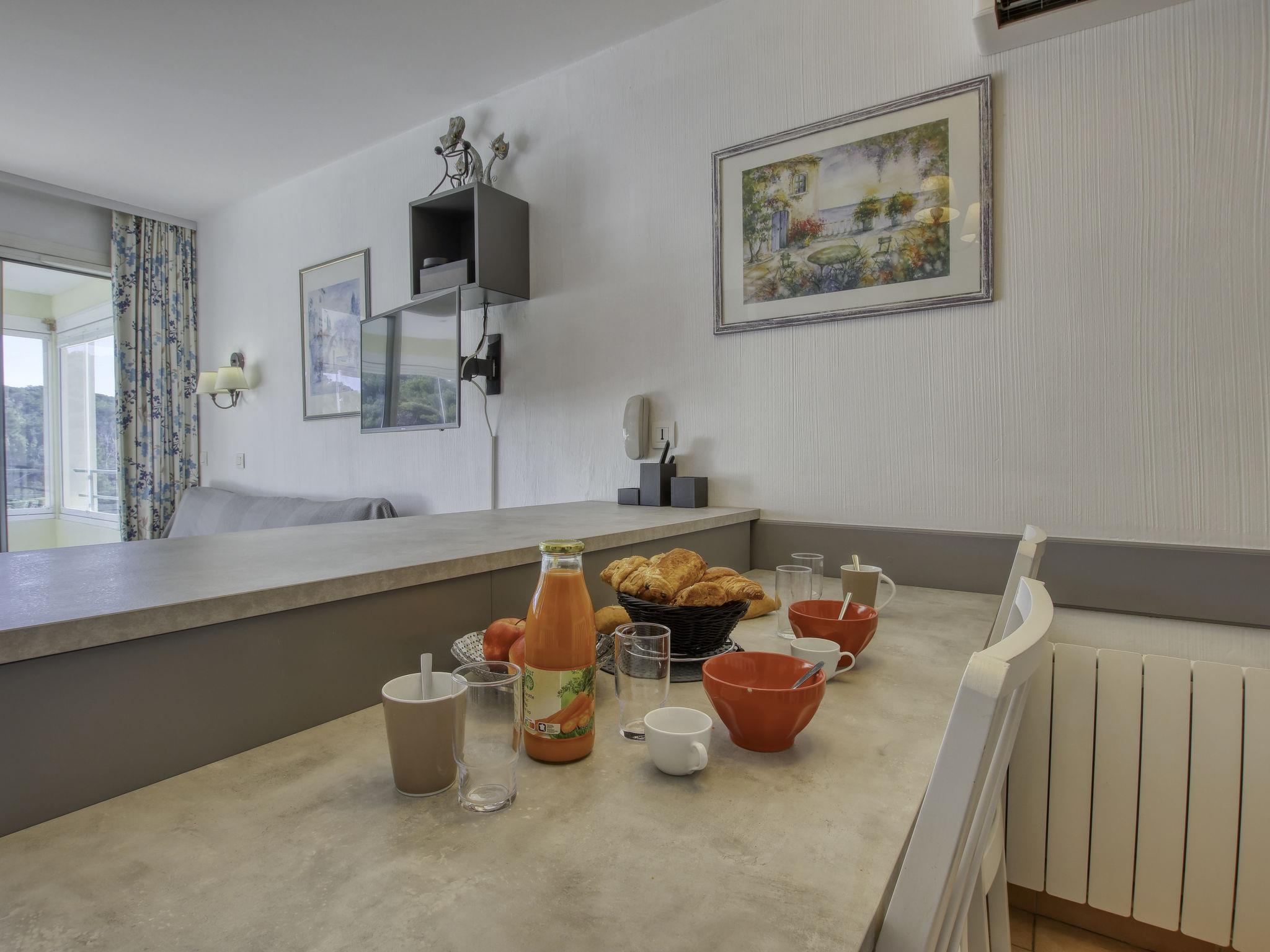 La Coudoulière: Residence "Les Rivages de Coudoulière", 3 storeys. 3 km from the centre of Six Fours, in a quiet position, 50 m from the sea, 100 m from the beach, in the countryside. For shared use: swimming pool (25 x 15 m, 340 m2, depth 60 - 160 cm, seasonal availability: 15.May. - 15.Oct. pool opening hours: 10:00-19:00) with internal staircase. Unconventional pool shape. Children's pool. In the complex: lift. Shop, restaurant, café 50 m, bus stop 200 m, sandy beach "La coudoulière" 100 m, park "Domaine de la Coudoulière" 50 m, lake Domaine de la Coudoulière 50 m. Sports harbour 50 m, golf course (18 hole) 13 km. Hiking paths: Sainte Baume, Sainte Victoire, Calanques Port-Cros, Porquerolles, Ile verte, Embiez, Figuerolles, Cassis. Please note: the keys‘ handover takes place by the agency Interhome in SIX FOURS LES PLAGES, 2 km. Additional accommodations can be booked.
