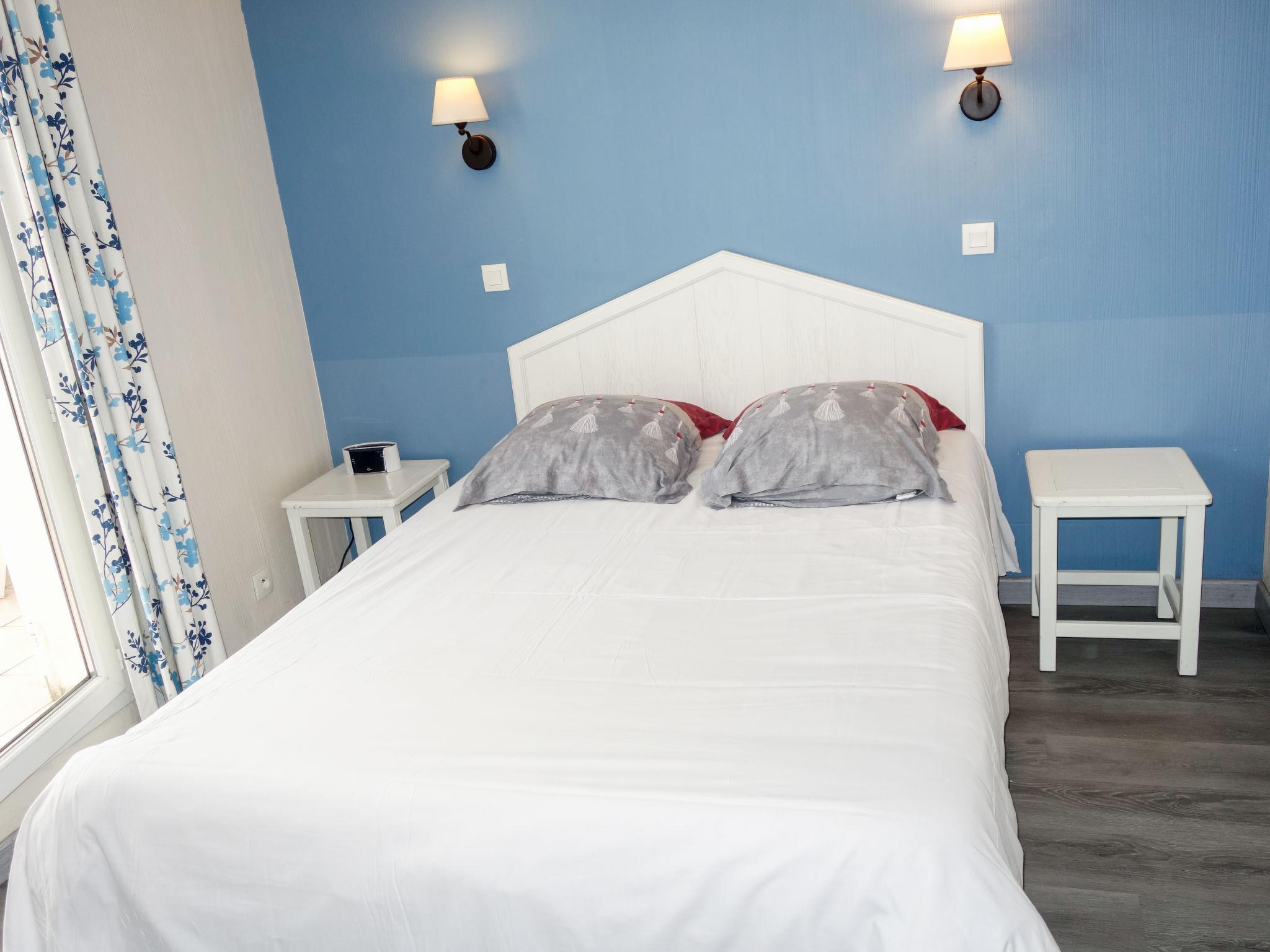 3-room maisonette 45 m2 on 3rd floor. Beautiful furnishings: living/dining room with 2 beds (80 cm, length 190 cm), TV (flat screen), air conditioning. Exit to the terrace. Sleeping alcove 4 m2 with 1 double wall-trunk bed (140 cm, length 200 cm). Kitchenette (dishwasher, 4 ceramic glass hob hotplates, microwave, freezer, electric coffee machine). Shower/WC. Upper floor: 1 room with 1 french bed (140 cm, length 190 cm), air conditioning. Exit to the balcony. Bath/WC. Electric heating. Balcony 7 m2, terrace 7 m2, roofed, east facing position. Terrace furniture. Beautiful view of the lake and the garden. Facilities: washing machine, dryer. Internet (WiFi, free). Parking space n 486 - Niveau P1 (roofed), height 190 cm, width 240 cm. Please note: maximum 1 pet/ dog allowed. TV only FR. Smoke alarm. The terrace is in the form of a loggia. Instead of an enclosed bedroom, some sleeping areas are located in an open-plan area (gallery, alcove, etc.).