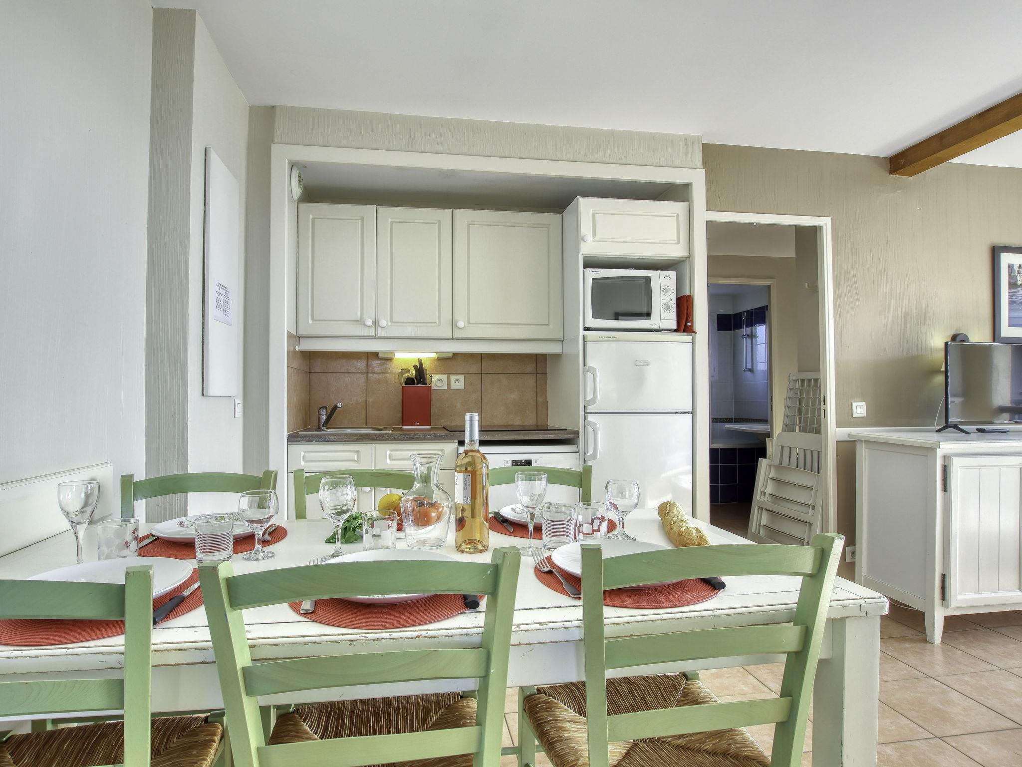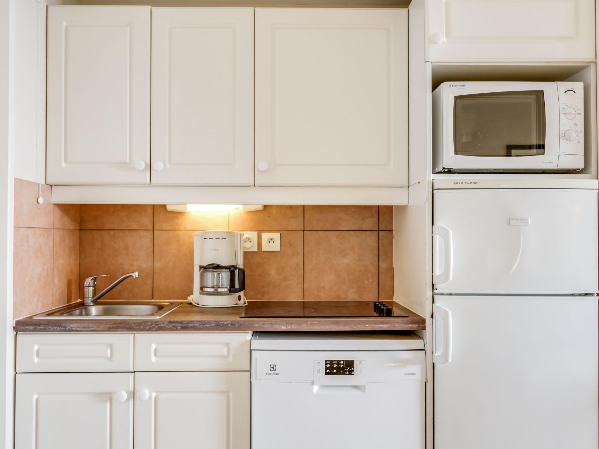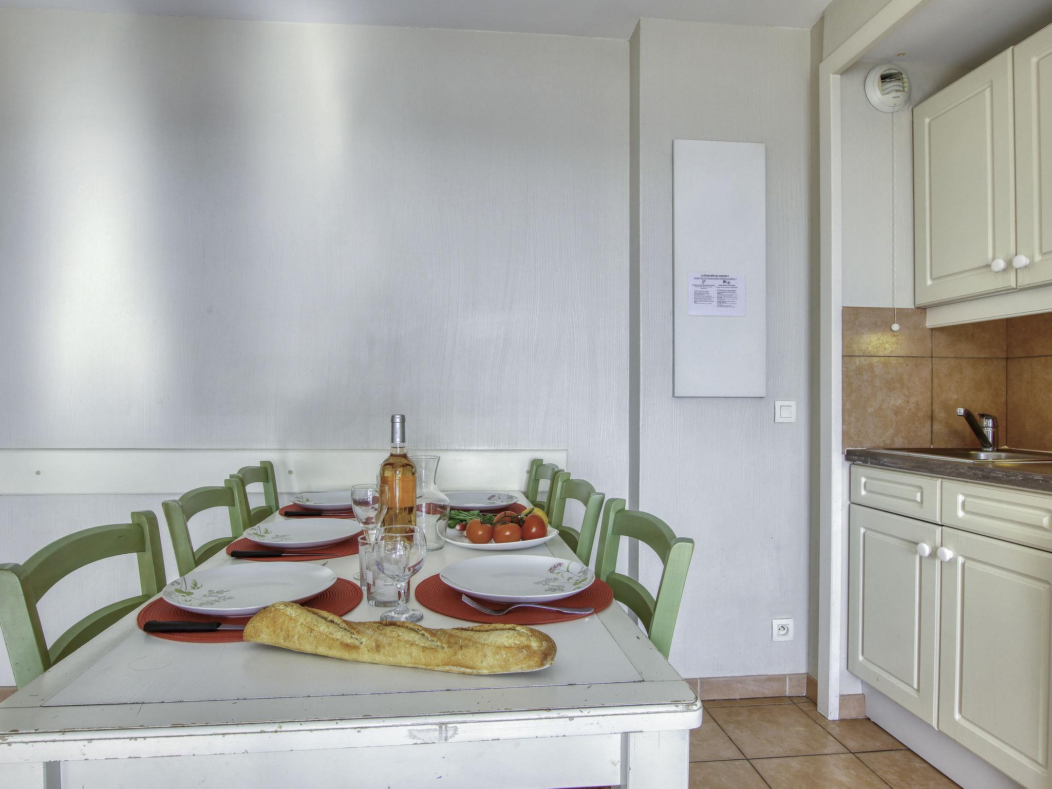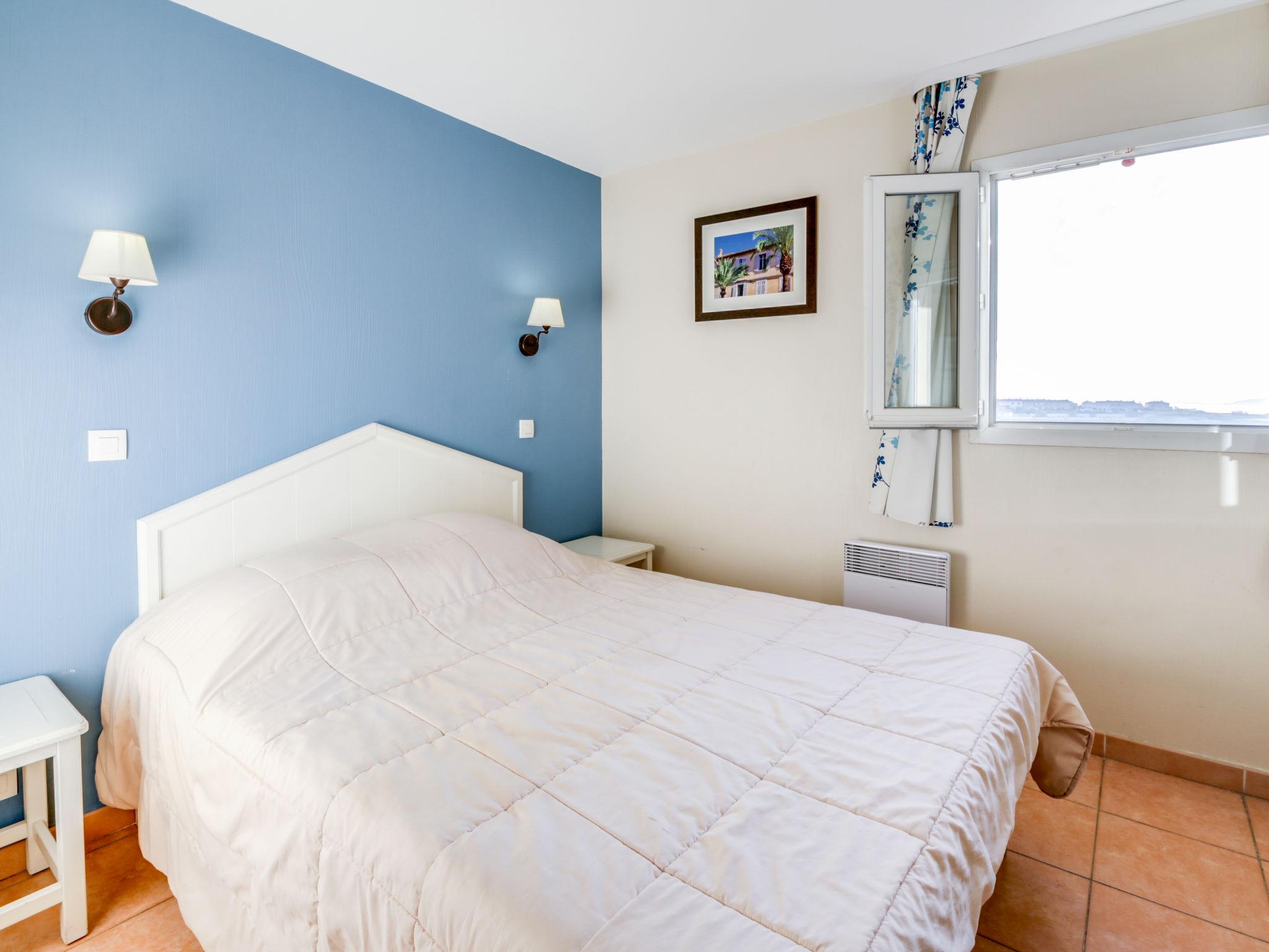 3-room apartment 45 m2 on 3rd floor. Practical and beautiful furnishings: living/dining room with 1 bed (80 cm, length 190 cm), TV (flat screen). Exit to the terrace. Sleeping alcove with 1 x 2 bunk beds (80 cm, length 190 cm). 1 room with 1 french bed (140 cm, length 190 cm). Kitchenette (dishwasher, 4 ceramic glass hob hotplates, toaster, kettle, microwave, freezer, electric coffee machine). Bathroom, shower/WC. Electric heating. Terrace 7 m2, roofed, south-west facing position. Terrace furniture. Beautiful view of the sea. Facilities: Internet (WiFi, extra). Parking space n 470 (Niveau P1) (roofed), height 180 cm, width 250 cm. Please note: TV only FR. Smoke alarm. Instead of an enclosed bedroom, some sleeping areas are located in an open-plan area (gallery, alcove, etc.).