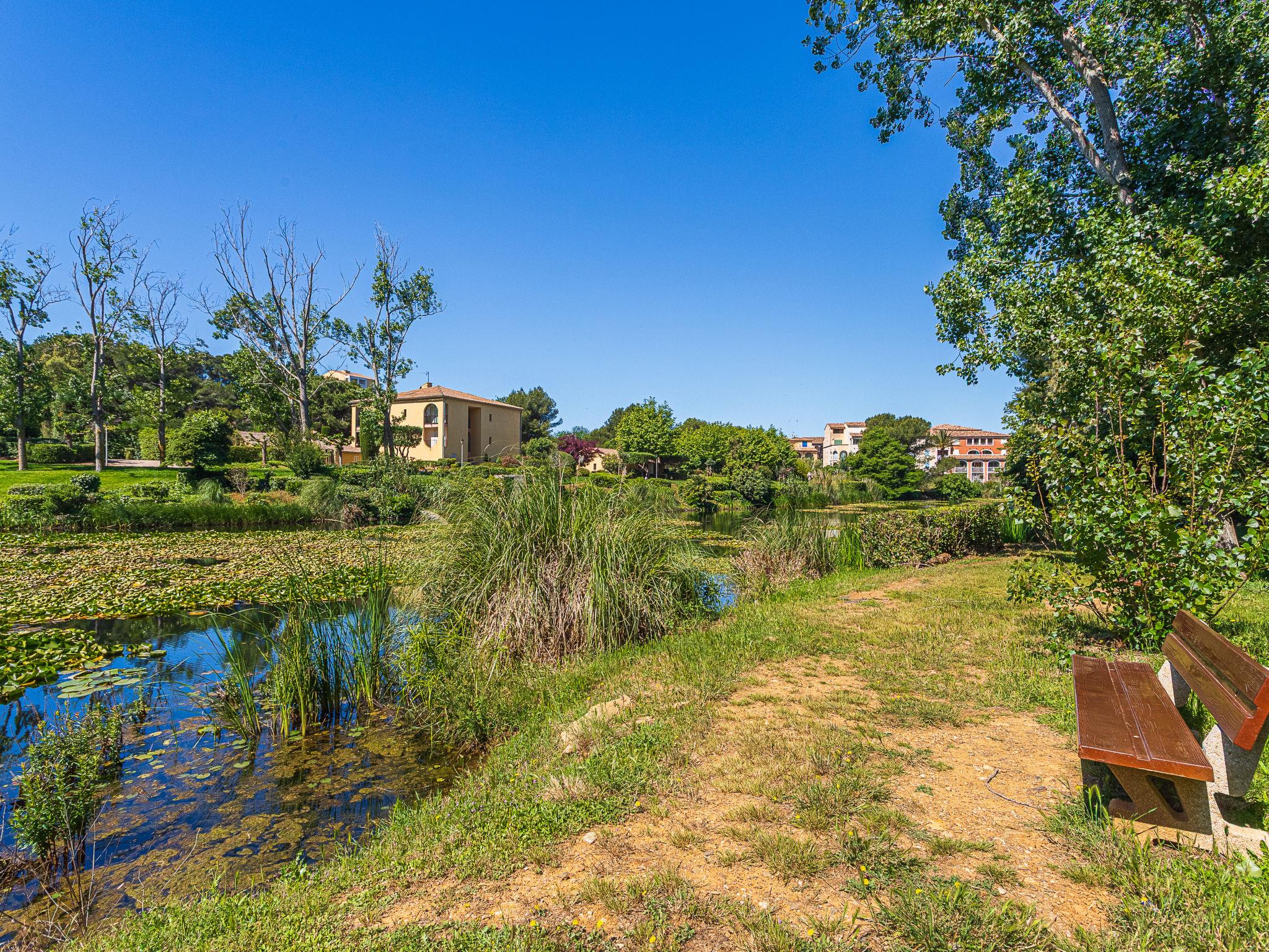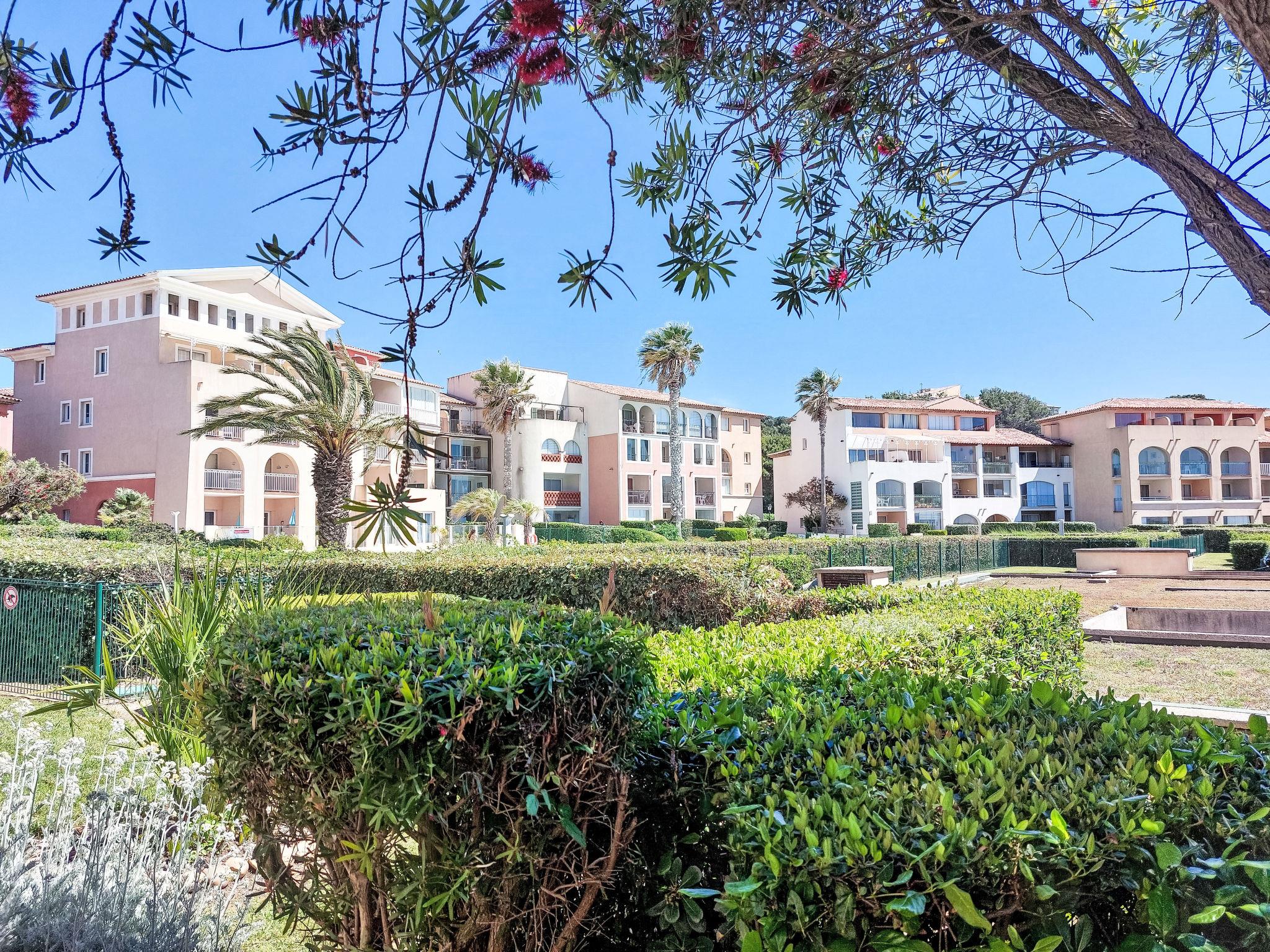 La Coudoulière: Residence "Les Rivages de Coudoulière", 3 storeys. 3 km from the centre of Six Fours, in a quiet position, 50 m from the sea, 100 m from the beach, in the countryside. For shared use: swimming pool (25 x 15 m, 340 m2, depth 60 - 160 cm, seasonal availability: 15.May. - 15.Oct. pool opening hours: 10:00-19:00) with internal staircase. Unconventional pool shape. Children's pool. In the complex: lift. Shop, restaurant, café 50 m, bus stop 200 m, sandy beach "La coudoulière" 100 m, park "Domaine de la Coudoulière" 50 m, lake Domaine de la Coudoulière 50 m. Sports harbour 50 m, golf course (18 hole) 13 km. Hiking paths: Sainte Baume, Sainte Victoire, Calanques Port-Cros, Porquerolles, Ile verte, Embiez, Figuerolles, Cassis. Please note: the keys‘ handover takes place by the agency Interhome in SIX FOURS LES PLAGES, 2 km. Additional accommodations can be booked.