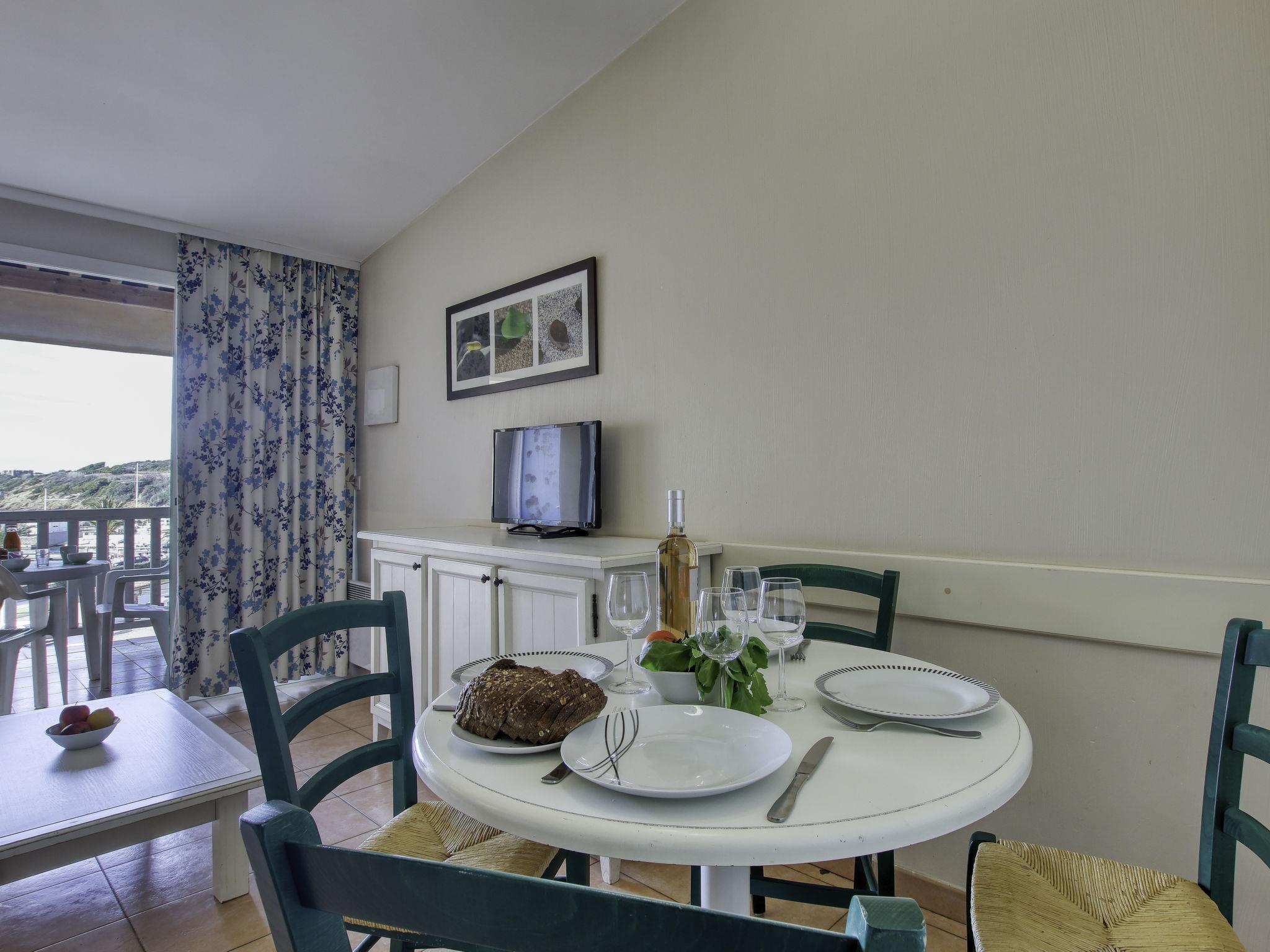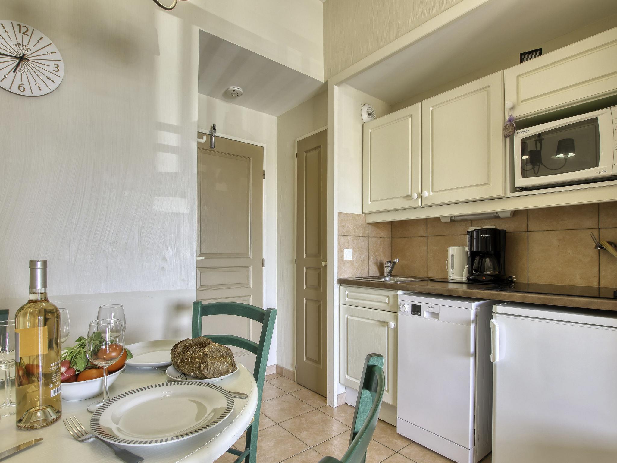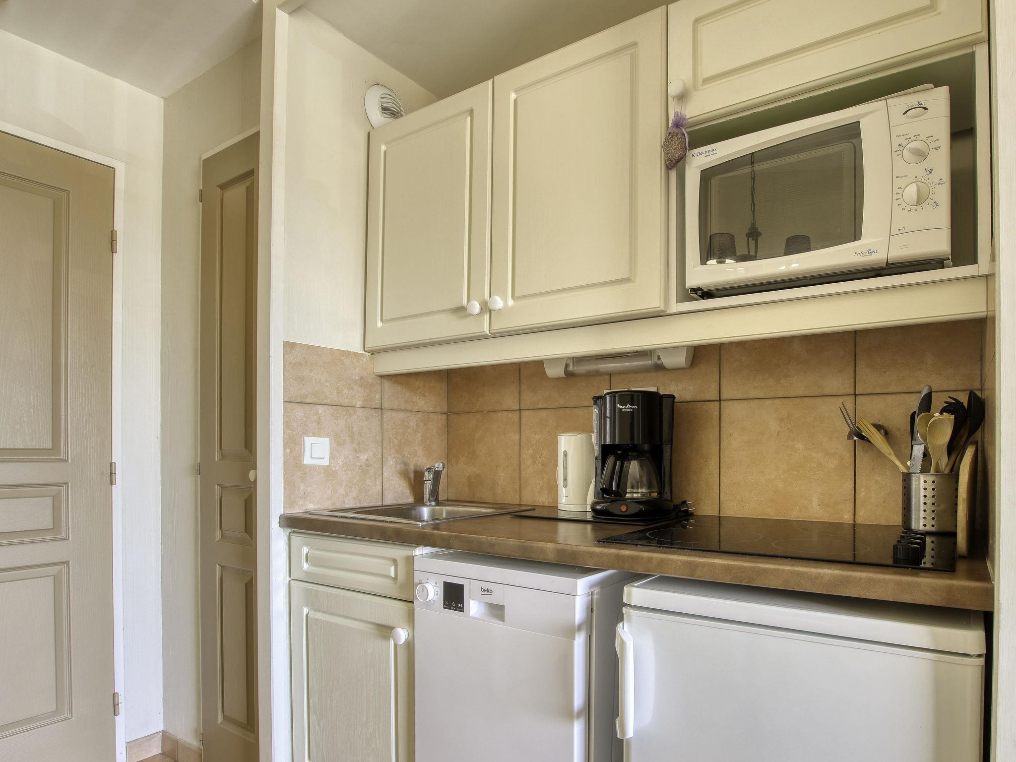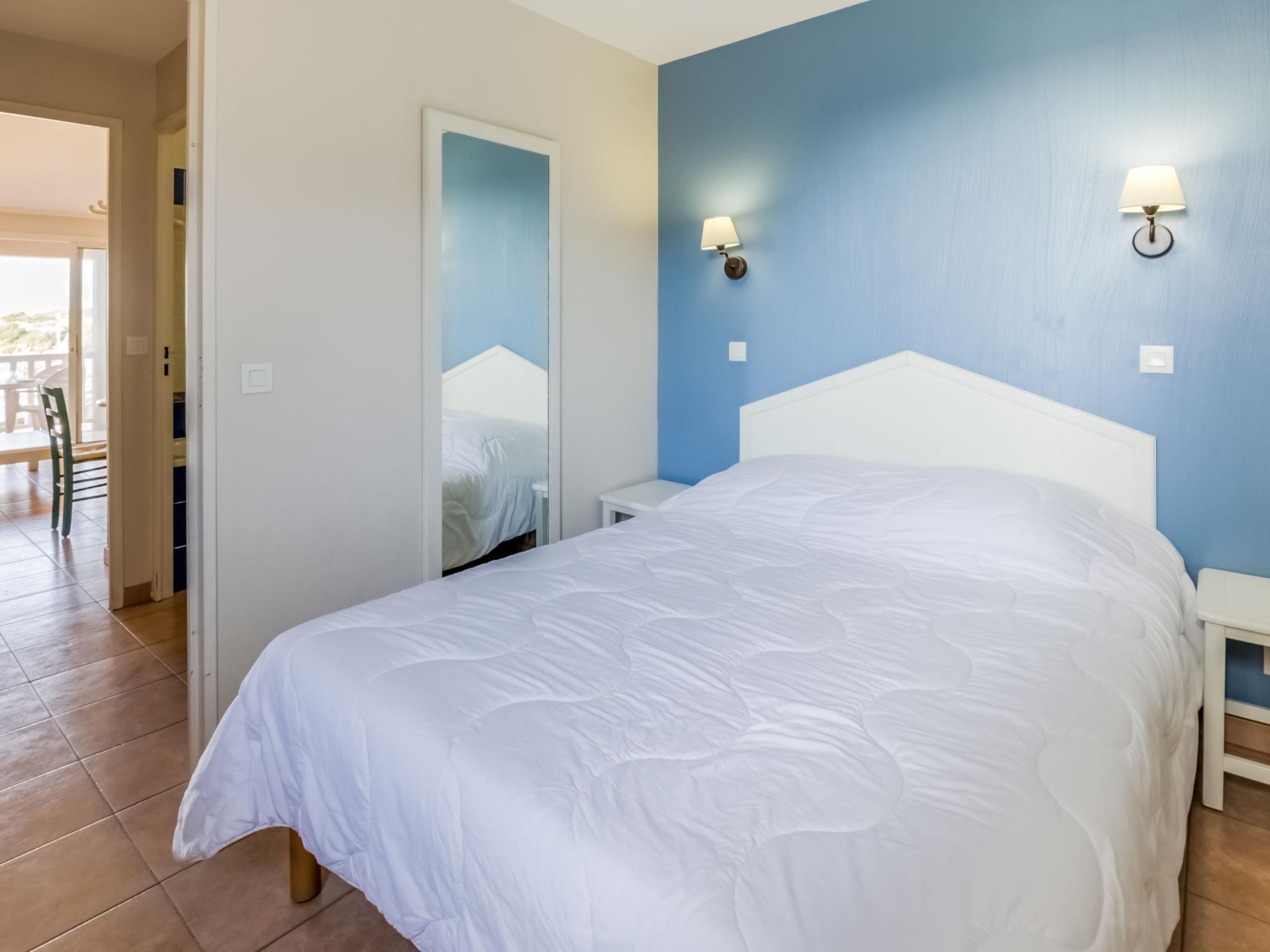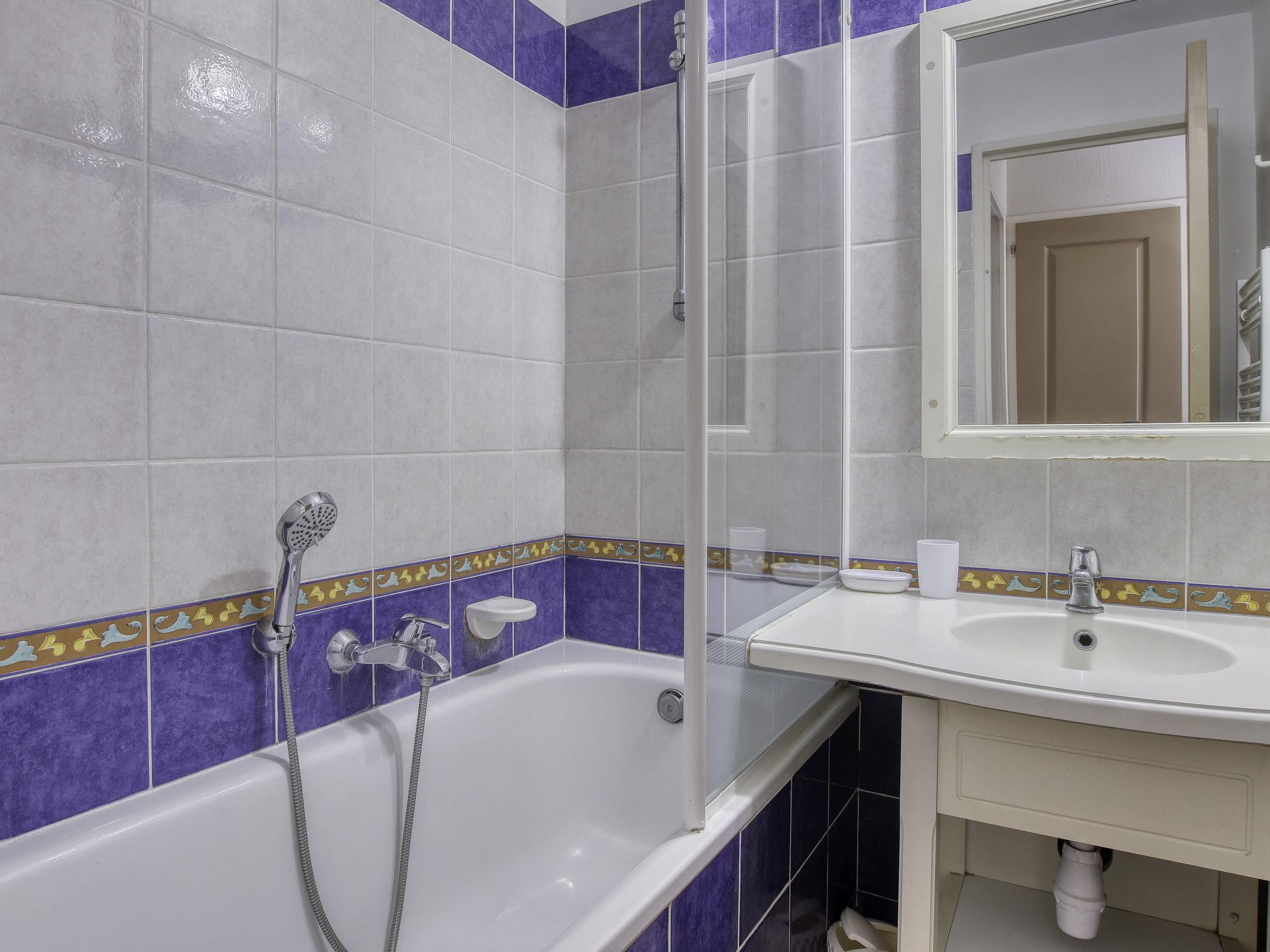 2-room apartment 28 m2 on 2nd floor. Practical and beautiful furnishings: living/dining room with 1 sofabed (160 cm, length 190 cm), TV (flat screen). Exit to the terrace. 1 room with 1 french bed (1 x 140 cm, length 190 cm). Kitchenette (dishwasher, 4 ceramic glass hob hotplates, microwave, electric coffee machine). Bathroom, sep. WC. Electric heating. Terrace 9 m2, roofed, north-west facing position. Terrace furniture. View of the sea. Facilities: Internet (WiFi, extra). Parking space n 565 (niveau 2) (roofed), height 190 cm, width 250 cm. Please note: apartment street side. TV only FR. Smoke alarm.