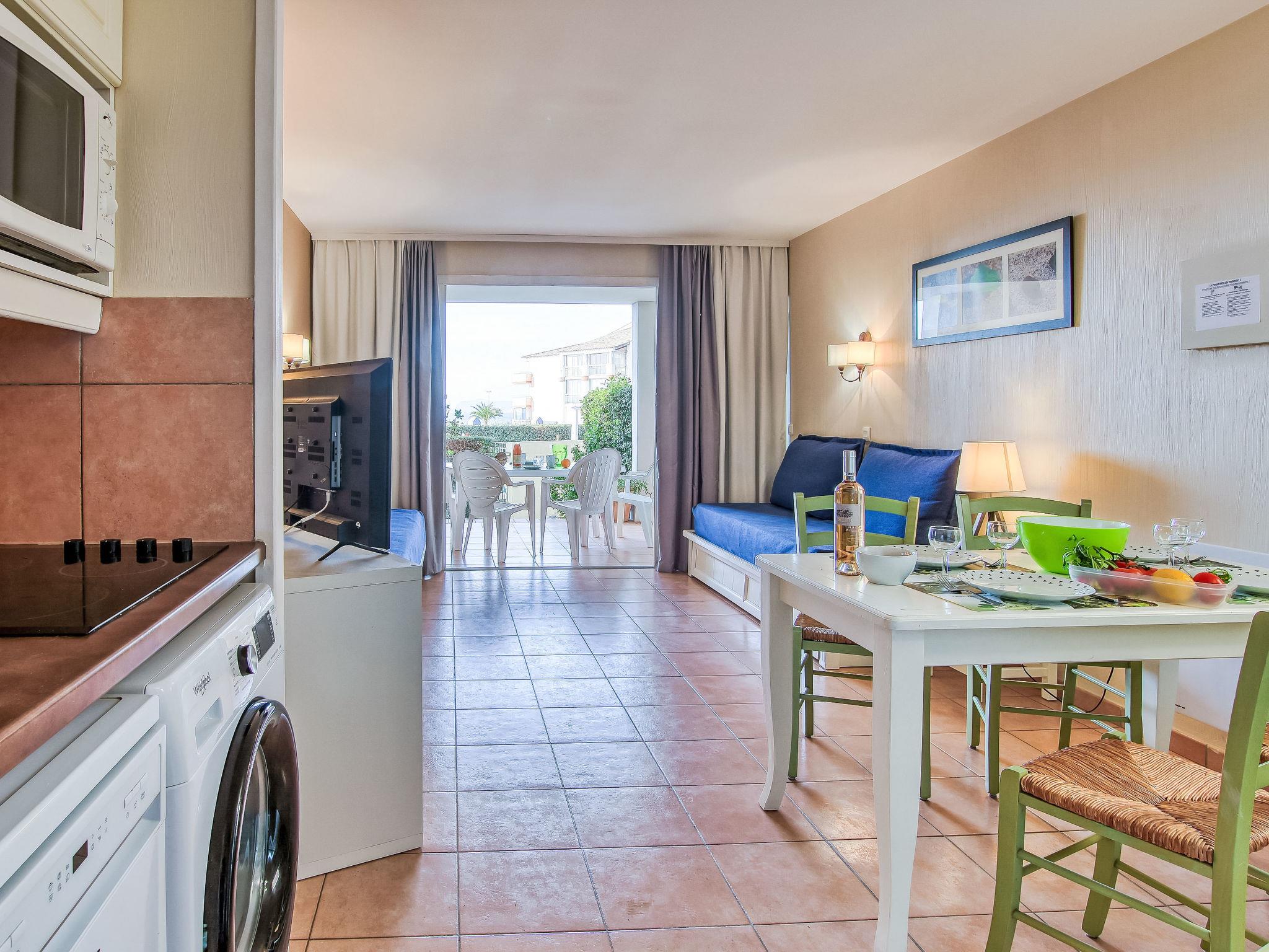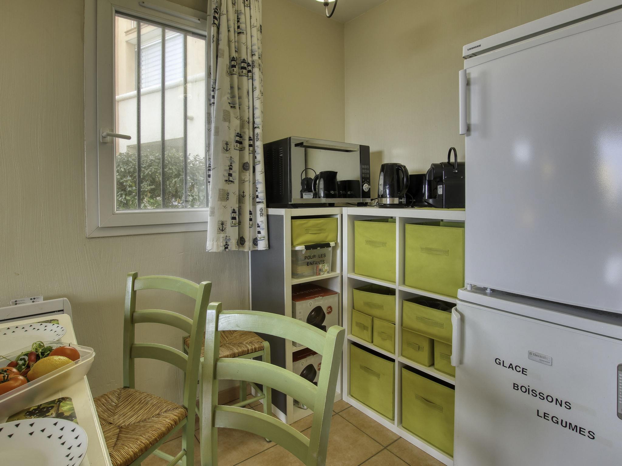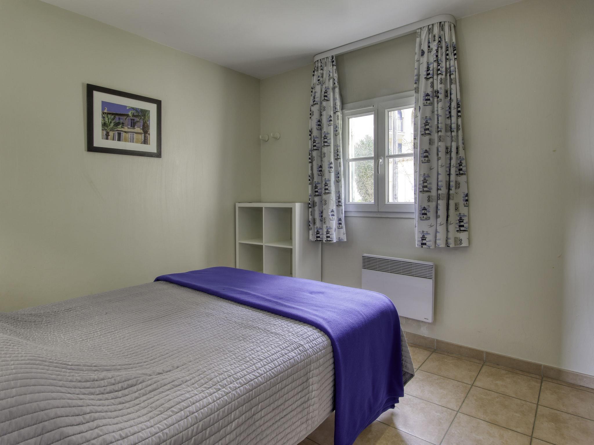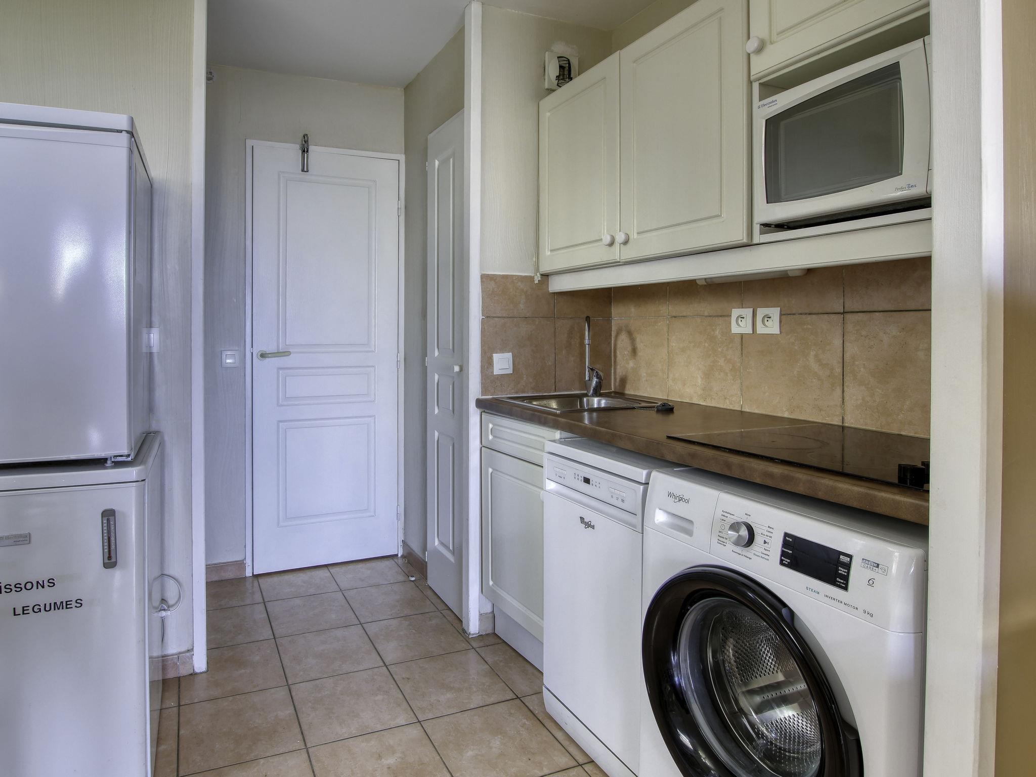2-room apartment 37 m2, on the upper ground floor. Practical and beautiful furnishings: living/dining room with 2 beds (80 cm, length 190 cm), TV (flat screen). Exit to the terrace. 1 room with 1 french bed (140 cm, length 190 cm). Kitchenette (mini-oven, dishwasher, 4 ceramic glass hob hotplates, toaster, kettle, microwave, electric coffee machine, Capsules for coffee machine (Nespresso) extra). Bathroom, sep. WC. Electric heating. Terrace 9 m2, roofed, west facing position. Terrace furniture. View of the sea. Facilities: washing machine, baby cot for up to 2 year olds. Internet (WiFi, extra). Parking space n 447 (Niveau P1) (roofed), height 190 cm, width 222 cm. Please note: TV only FR. Smoke alarm. Please note: the garden is not fenced. Access to the terrace via 4 steps. The parking space is only suitable for a small car. 831290639696