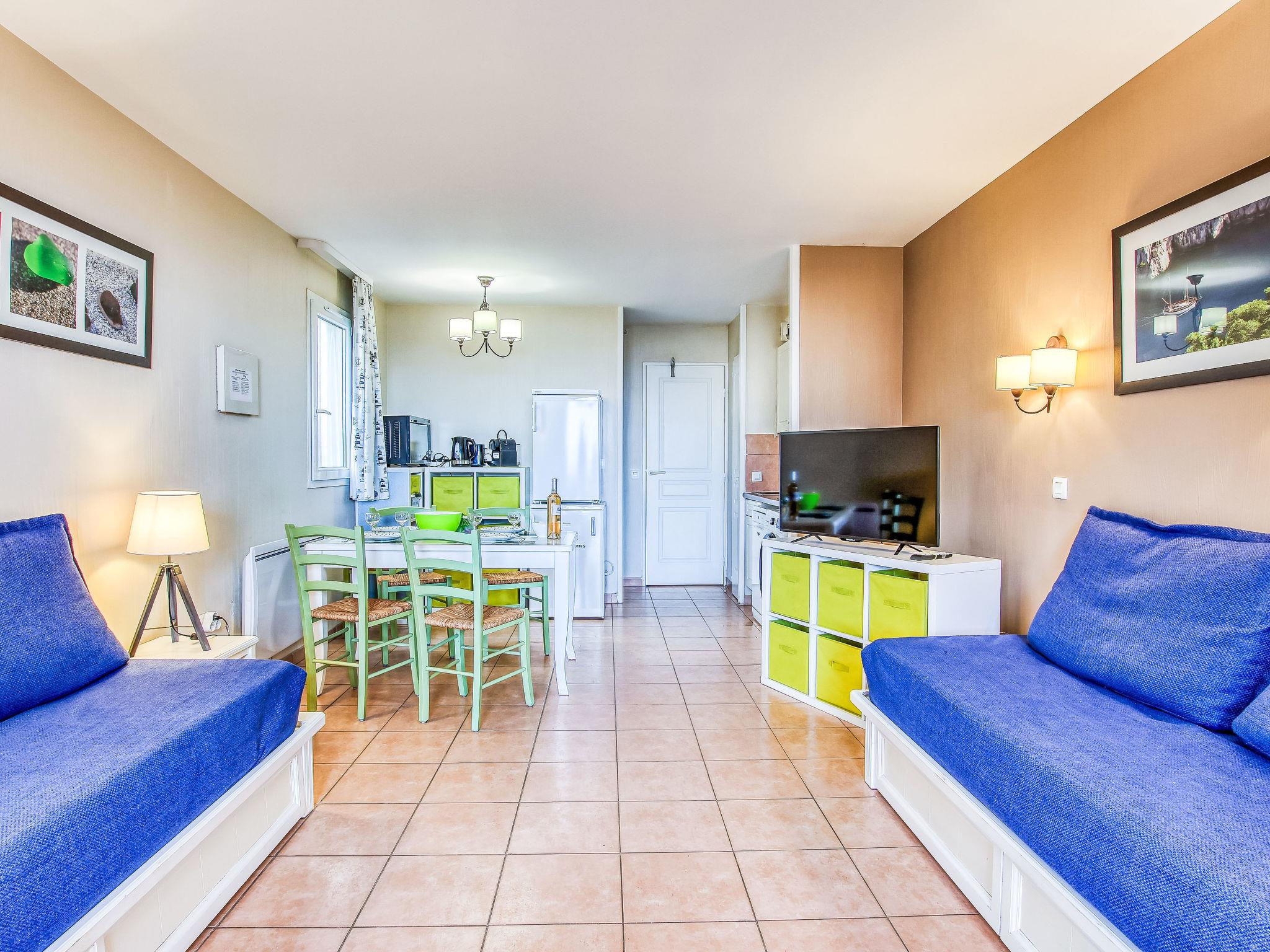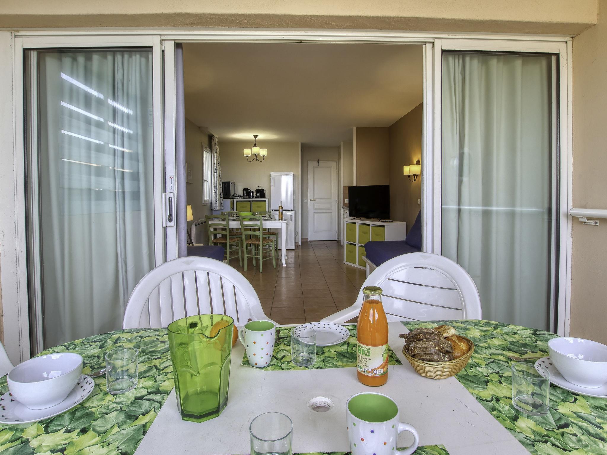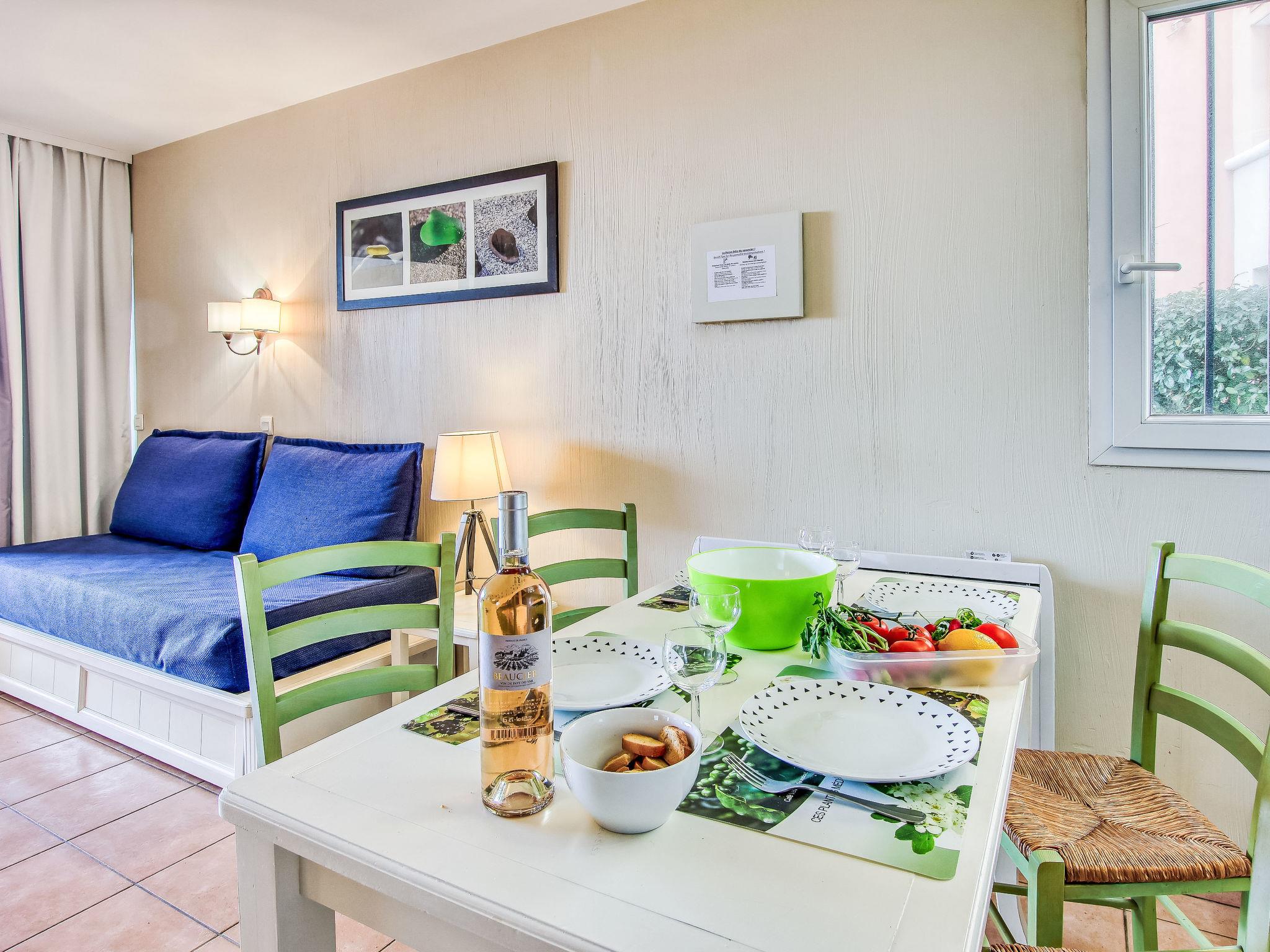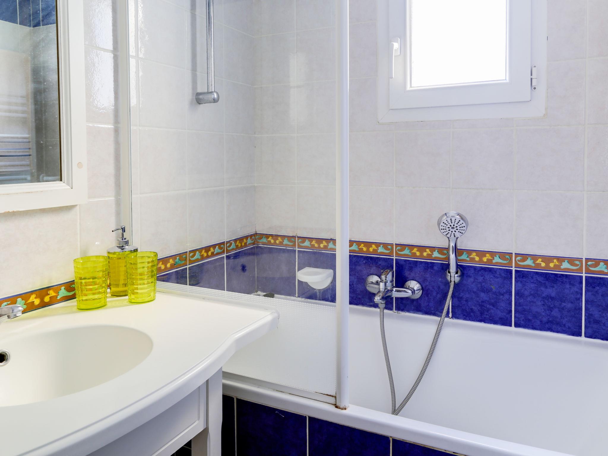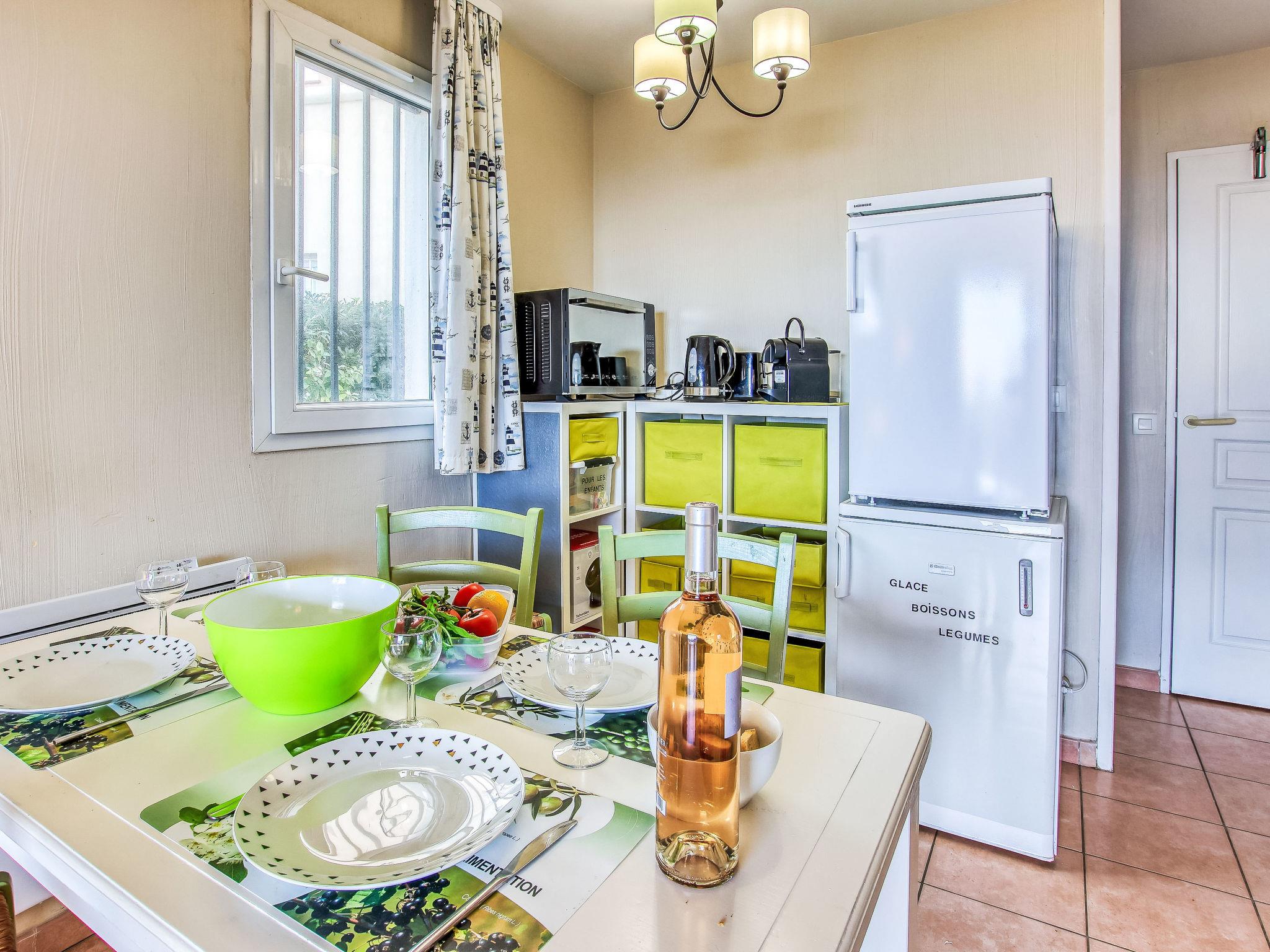 2-room apartment 37 m2, on the upper ground floor. Practical and beautiful furnishings: living/dining room with 2 beds (80 cm, length 190 cm), TV (flat screen). Exit to the terrace. 1 room with 1 french bed (140 cm, length 190 cm). Kitchenette (mini-oven, dishwasher, 4 ceramic glass hob hotplates, toaster, kettle, microwave, electric coffee machine, Capsules for coffee machine (Nespresso) extra). Bathroom, sep. WC. Electric heating. Terrace 9 m2, roofed, west facing position. Terrace furniture. View of the sea. Facilities: washing machine, baby cot for up to 2 year olds. Internet (WiFi, extra). Parking space n 447 (Niveau P1) (roofed), height 190 cm, width 222 cm. Please note: TV only FR. Smoke alarm. Please note: the garden is not fenced. Access to the terrace via 4 steps. The parking space is only suitable for a small car. 831290639696