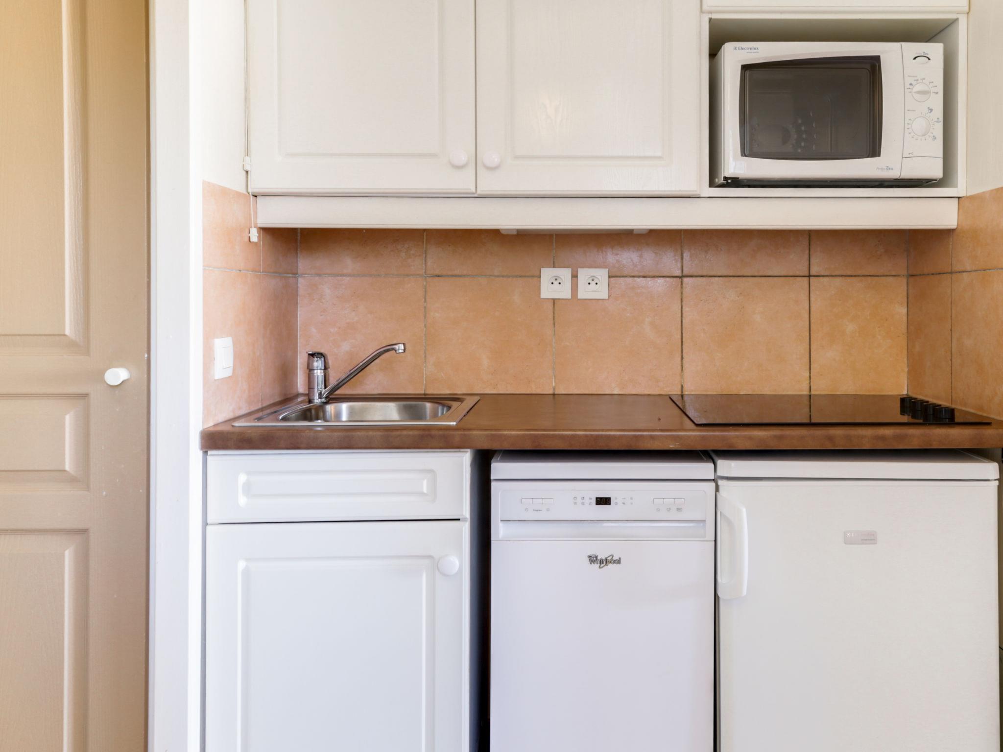 La Coudoulière: Residence "Les Rivages de Coudoulière", 3 storeys. 3 km from the centre of Six Fours, 50 m from the sea, 100 m from the beach, in the countryside. For shared use: swimming pool fenced (25 x 15 m, 340 m2, depth 60 - 160 cm, seasonal availability: 15.May. - 15.Oct. pool opening hours: 10:00-19:00) with internal staircase. Unconventional pool shape. Children's pool. In the complex: shop, restaurant, café 50 m, bus stop 100 m, sandy beach "La coudoulière" 100 m, park "Domaine de la Coudoulière" 50 m, lake Domaine de la Coudoulière 50 m. Sports harbour 50 m, golf course (18 hole) 13 km. Hiking paths: Sainte Baume, Sainte Victoire, Calanques Port-Cros, Porquerolles, Ile verte, Embiez, Figuerolles, Cassis. Please note: the keys‘ handover takes place by the agency Interhome in SIX FOURS LES PLAGES, 2 km. Additional accommodations can be booked.