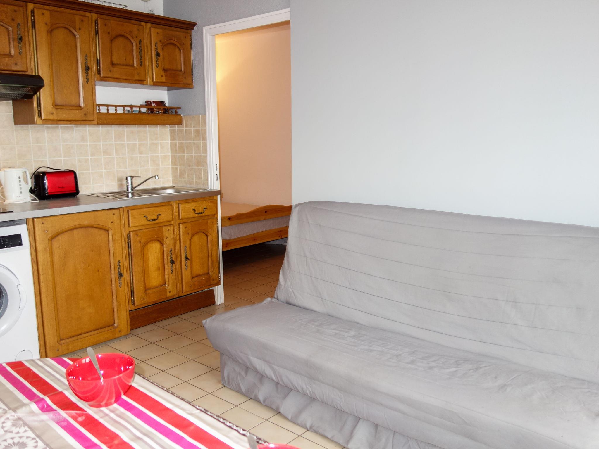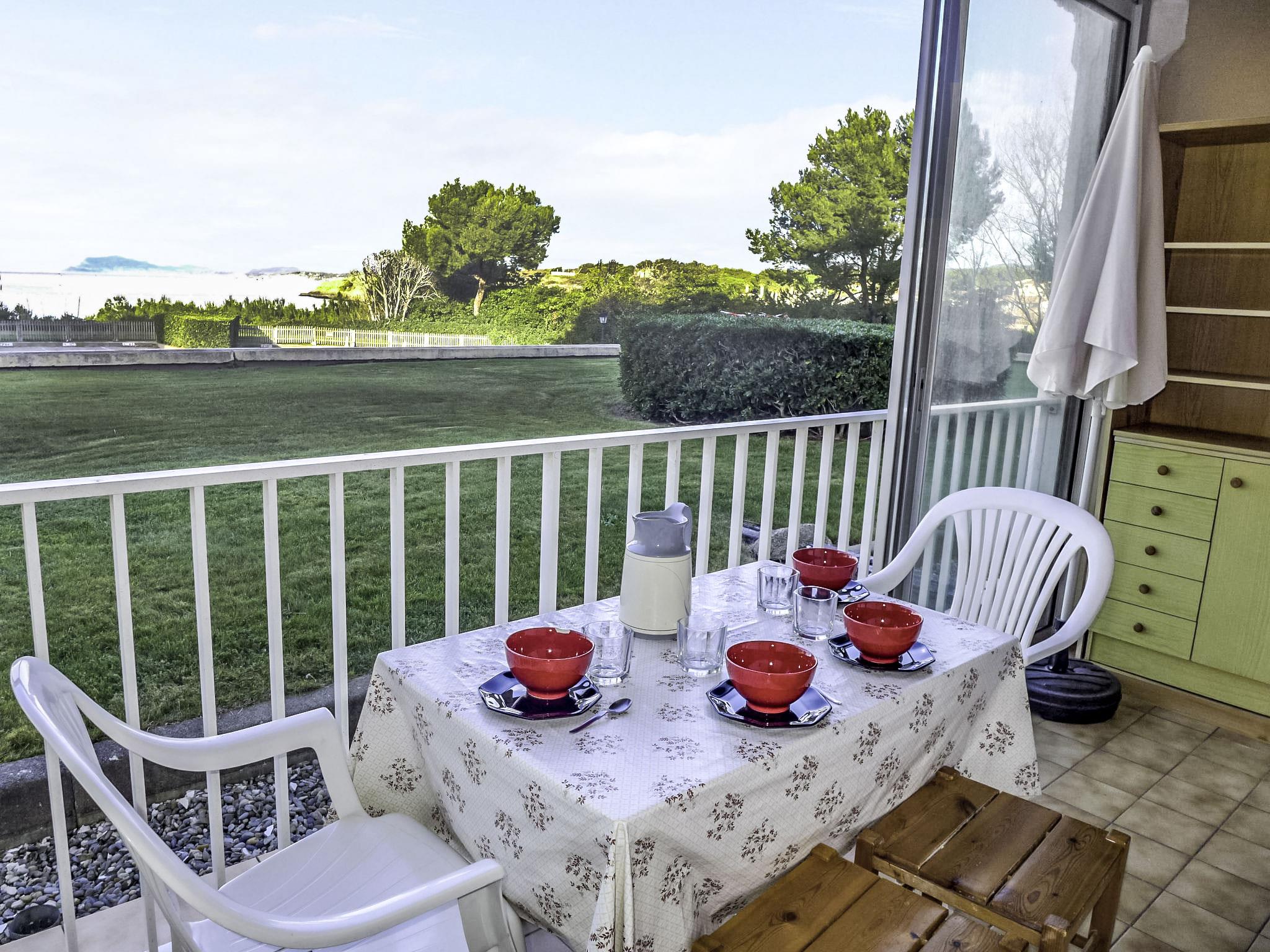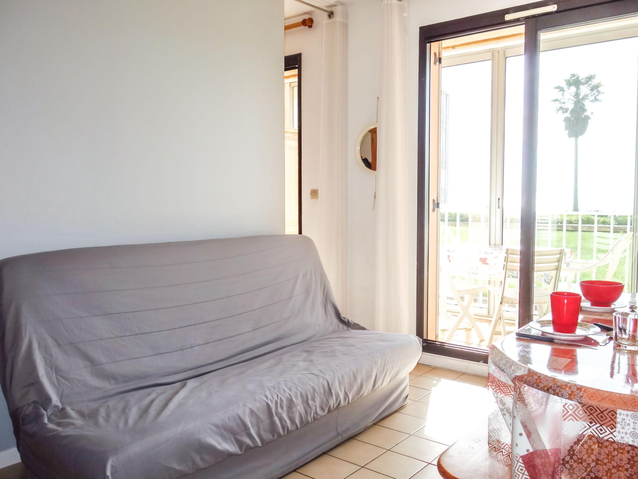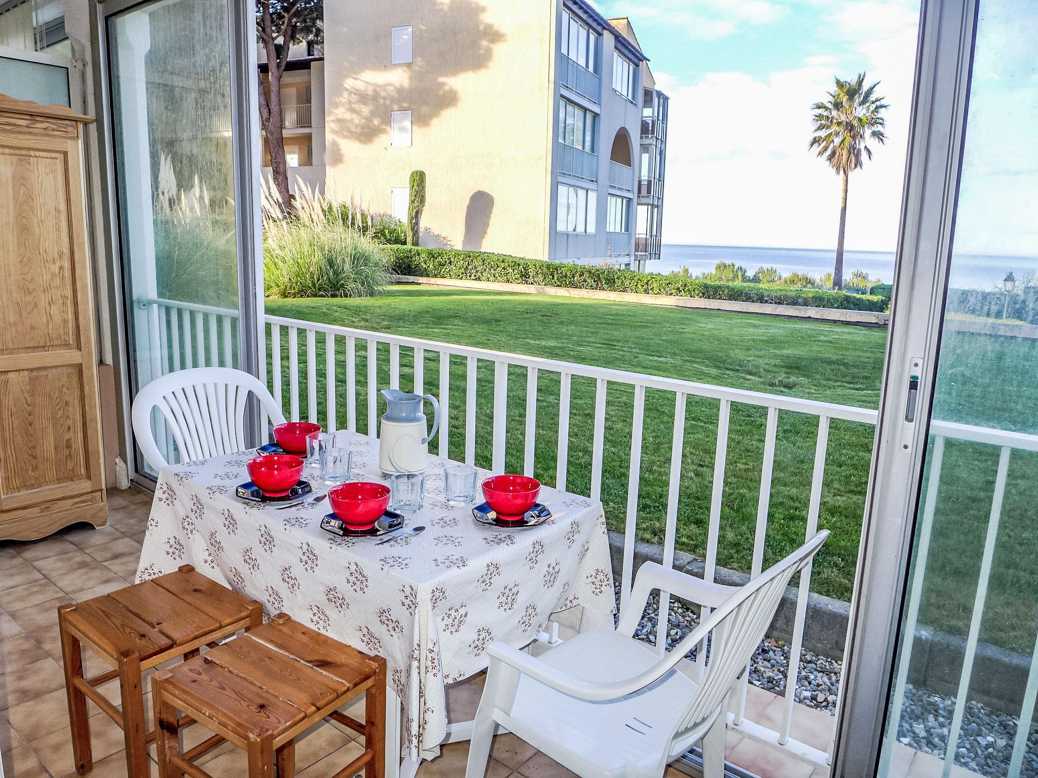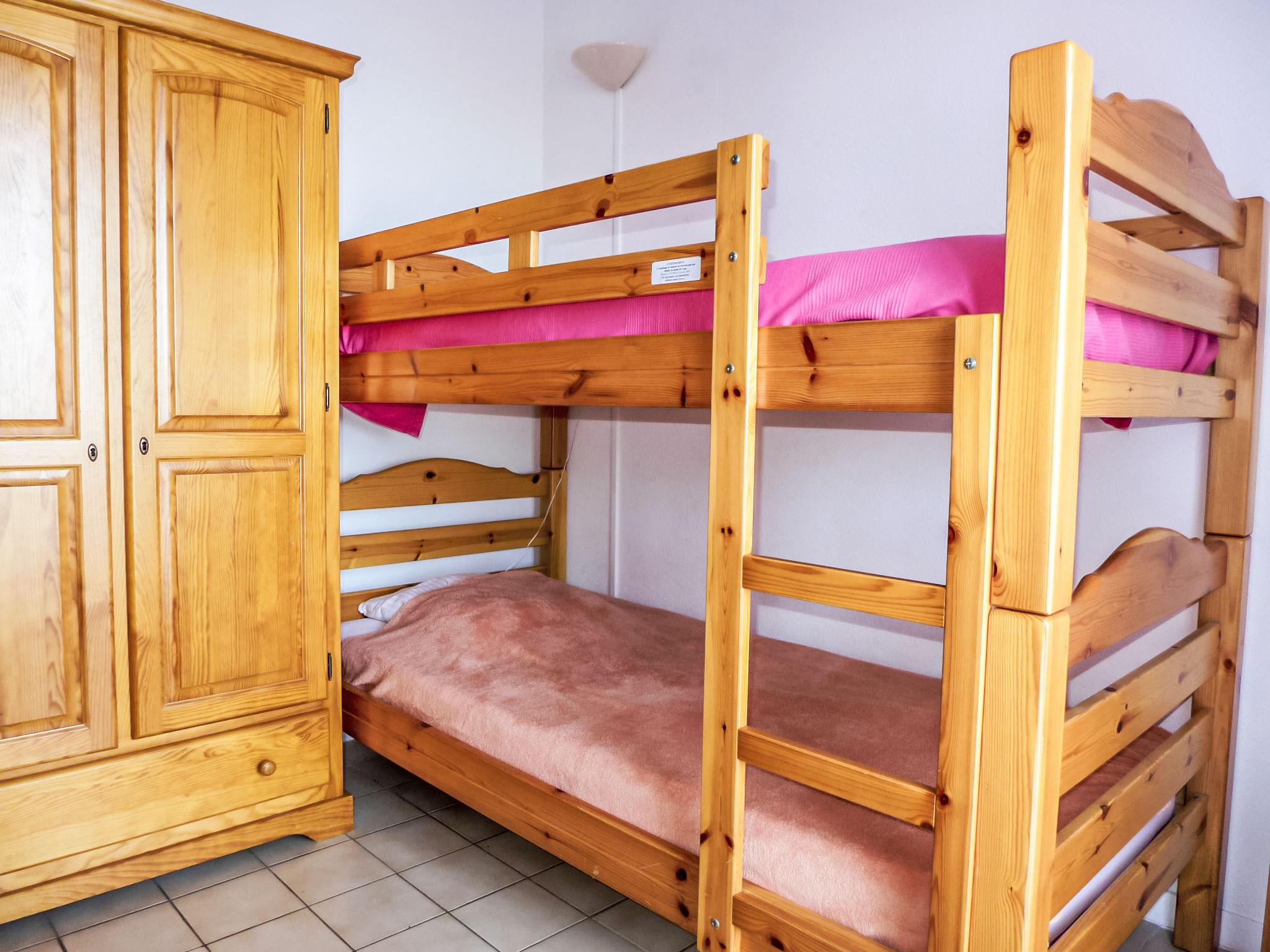 3-room apartment 32 m2, on the ground floor, south-west facing position. Comfortable and beautiful furnishings: living/dining room with TV, air conditioning and fan. Exit to the terrace. 1 room with 1 french bed (140 cm, length 190 cm). 1 open small room with curtain with 1 x 2 bunk beds (90 cm, length 190 cm). Exit to the terrace. Kitchenette (mini-oven, 2 ceramic glass hob hotplates, toaster, kettle, microwave, electric coffee machine). Shower, sep. WC. Electric heating. Terrace 7 m2, roofed. Terrace furniture. Beautiful view of the sea. Facilities: Internet (WiFi, extra). Parking space n 10. Please note: TV only FR. Smoke alarm. The terrace is in the form of a loggia.