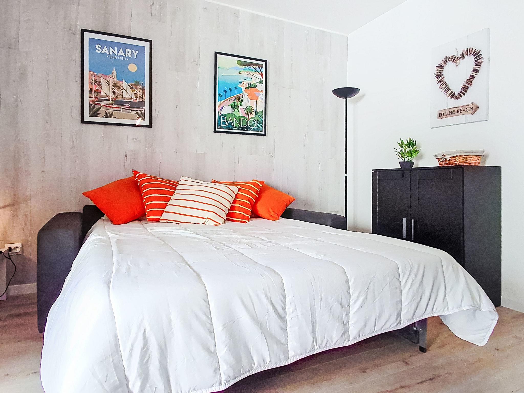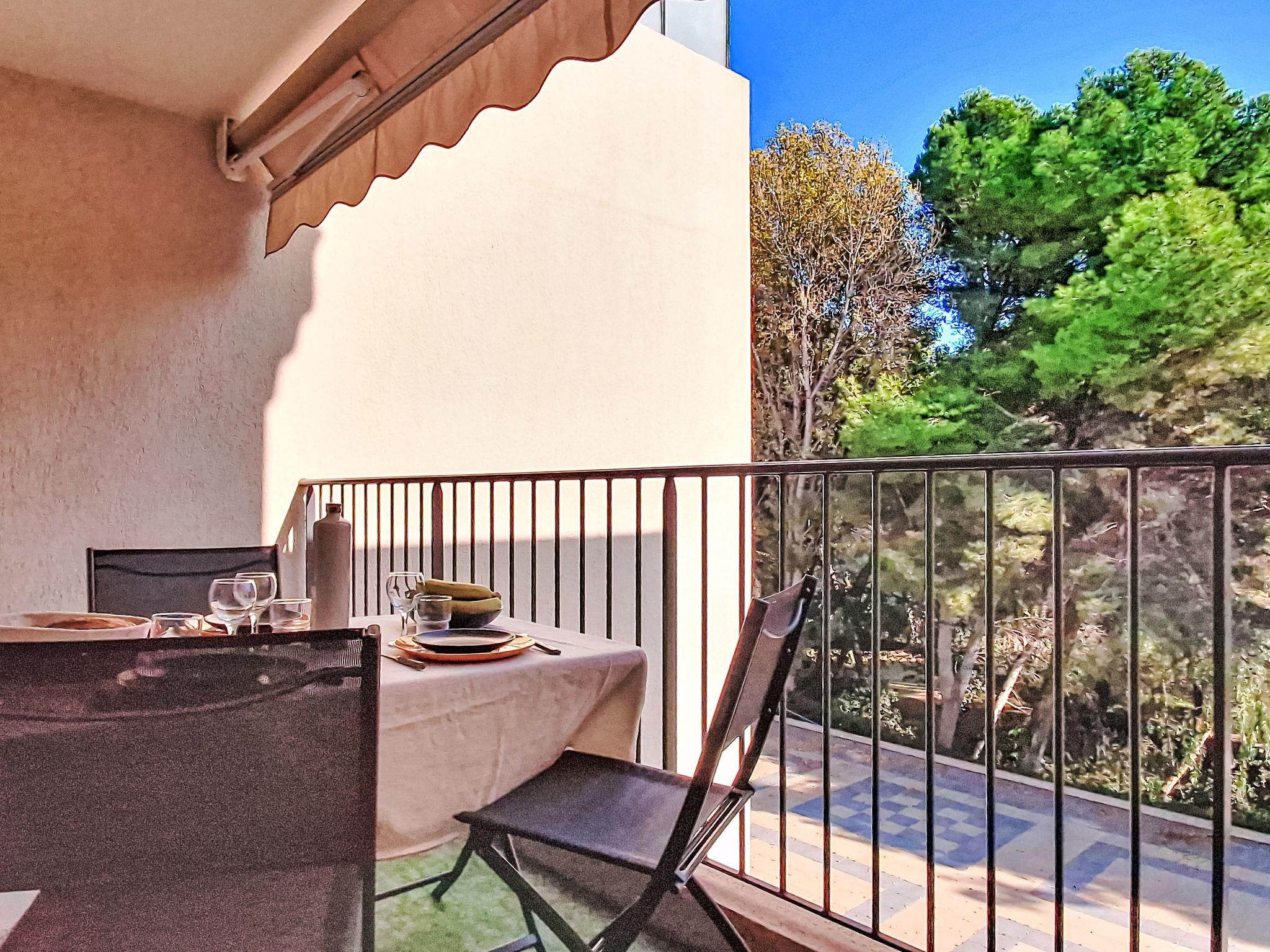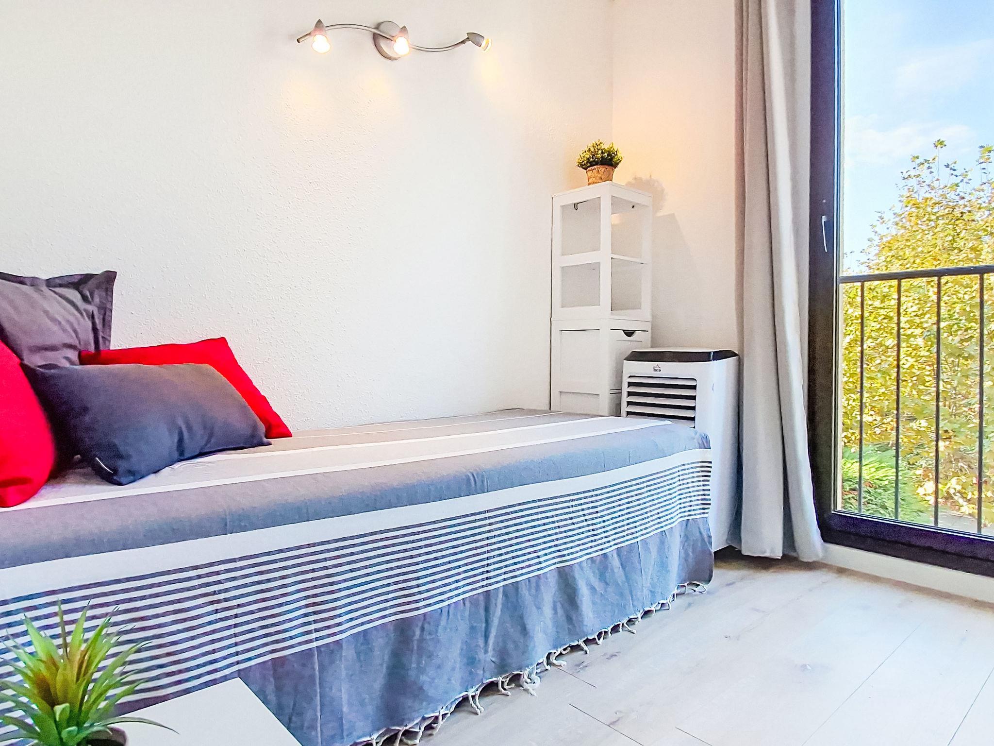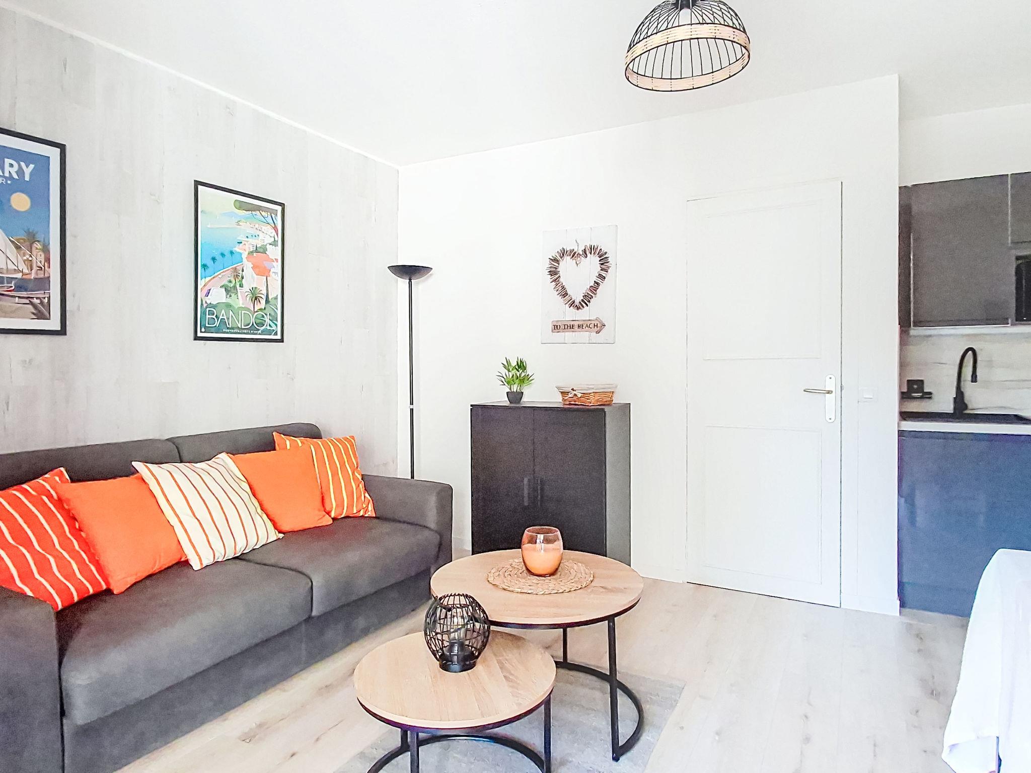 2-room apartment 30 m2 on 2nd floor. Living/dining room with 1 sofabed (140 cm, length 190 cm), TV (flat screen). Exit to the terrace. 1 small room 5 m2 with 1 bed (80 cm, length 190 cm). Kitchenette (2 ceramic glass hob hotplates, toaster, kettle, microwave, electric coffee machine). Shower, sep. WC. Electric heating. Terrace 8 m2, roofed, east facing position. Terrace furniture. View of the garden. Facilities: Internet (WiFi, free). Parking space n 52. Please note: TV only FR. Smoke alarm. Offer by a private individual according to Art. 155, IV of CGI.
